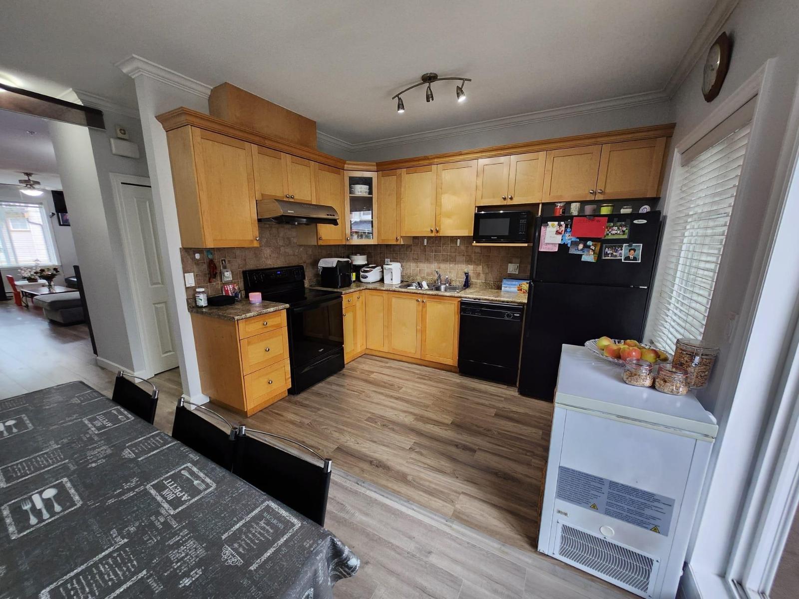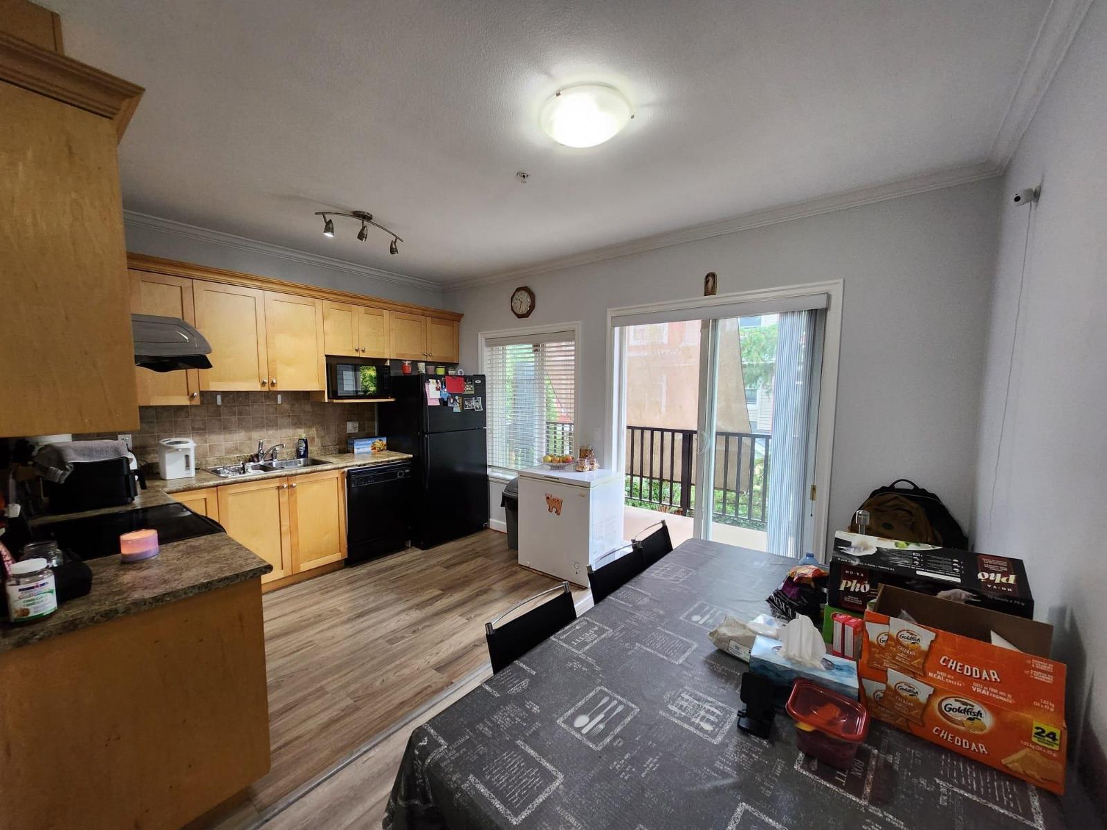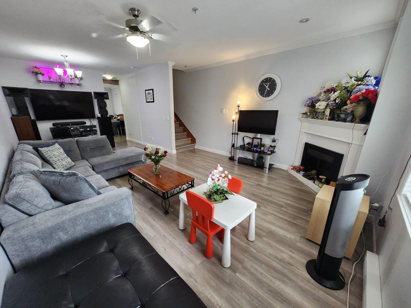 $326.44 MonthlyWelcome to Fleetwood, just off Fraser Highway. Bright, south facing, spacious 1677sqft townhouse in Fleetwood Rose Garden, offers 3 bedrooms, 2 and 1/2 bathrooms. Possibility to make 4th bedroom in the basement. Quiet inside unit. This unit was show room, more fine finishing than other units, 8'11" ceiling, cozy fire place, rich laminate floor and crown moulding throughout main warm carpet on bedrooms; maple cabinets, Sakura hood fan, balcony off kitchen; fenced yard, and security system installed. Close to shopping mall, Recreation centre, community centre, library, , Starbucks, restaurants, park, bus and easily access to Skytrain. Frost Road Elementary and North Surrey Secondary at walking distance. (id:52823)
