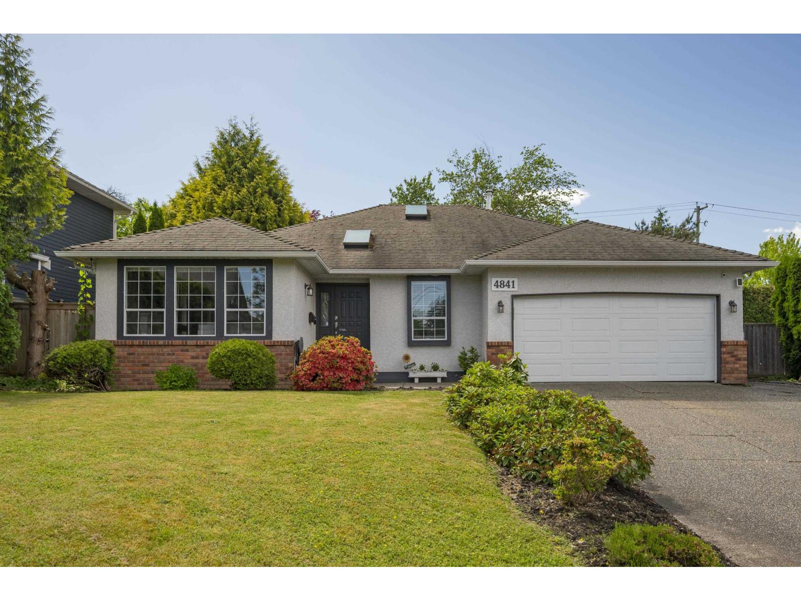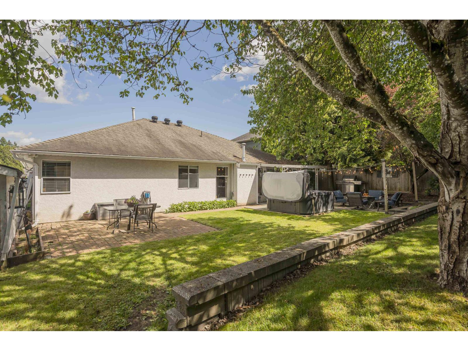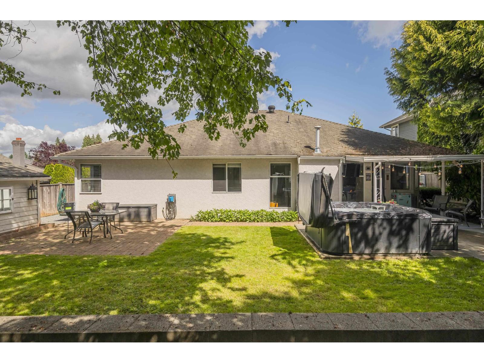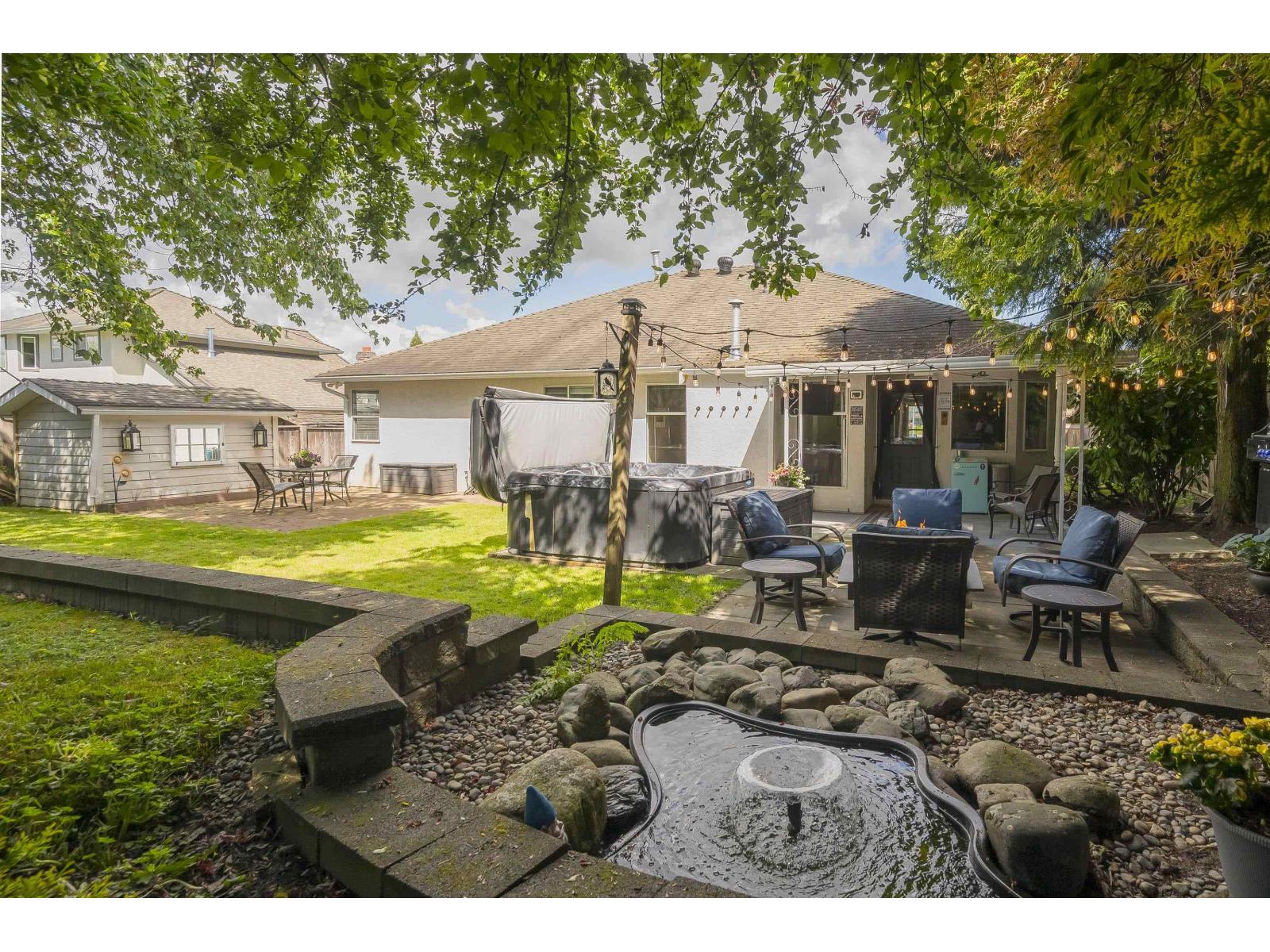 Beautiful 1546sf rancher on a large flat 8188sf lot in a cds location. Great layout featuring your living room/dining room then head to your kitchen w/eating area and family room. Large primary w/walk in closet and 4 piece ensuite. 2 more bedrooms + another 4 piece bathroom (cheater ensuite), big laundry room. Lots of storage. Hot water tank 2019, 2 skylights 2021, gutters 2020, kitchen fully updated in 2011 w/granite countertops and breakfast bar, roof 2015. Access to your fully fenced backyard oasis! Covered deck with mature trees, hot tub, beautiful pond, shed, great landscaping. Double garage + apron parking, RV parking. Room for all your toys! Close to great schools, transit, Newlands Golf Course, shopping, nature trails and more amenities. Quick possession available! (id:52823)