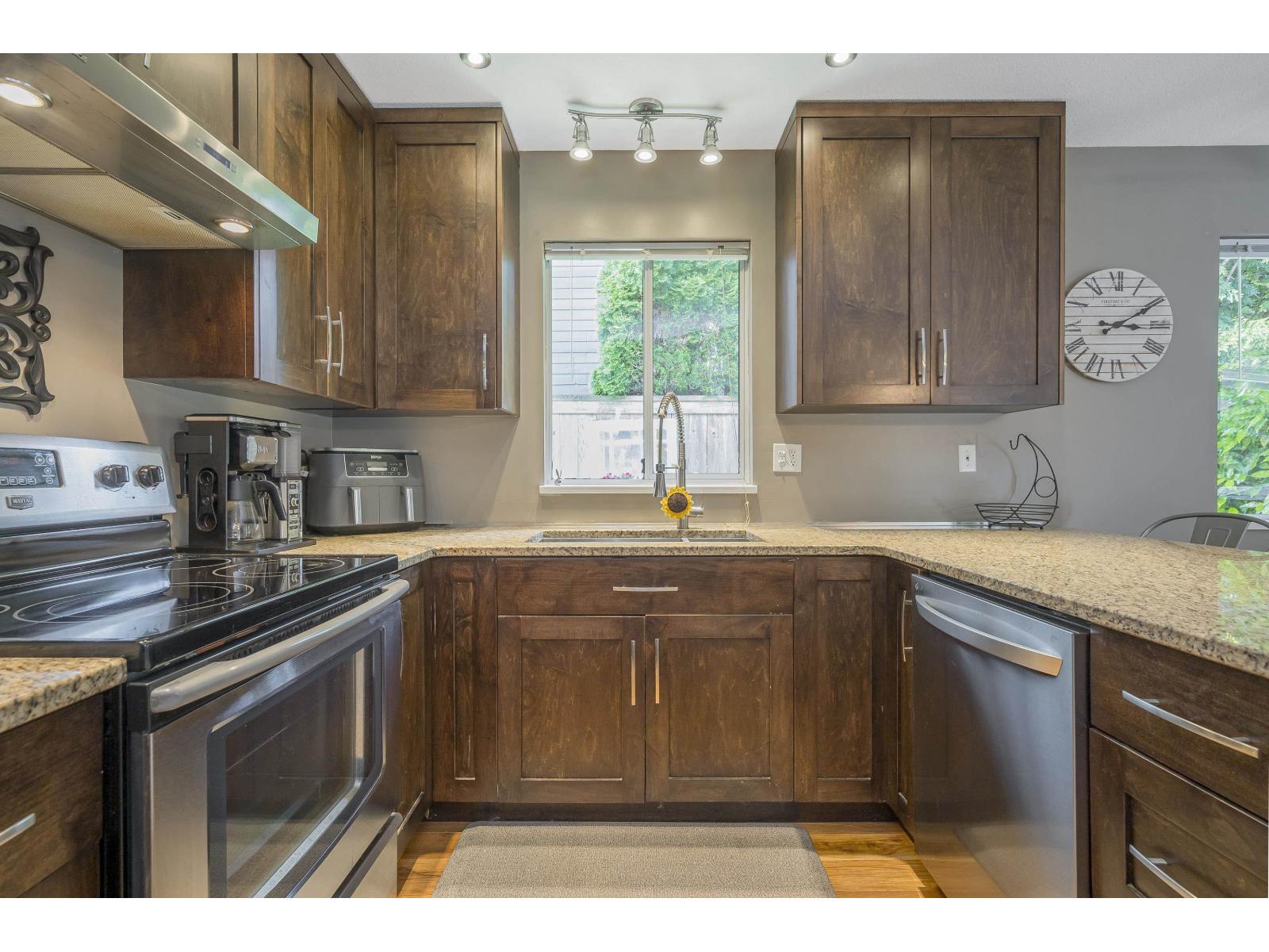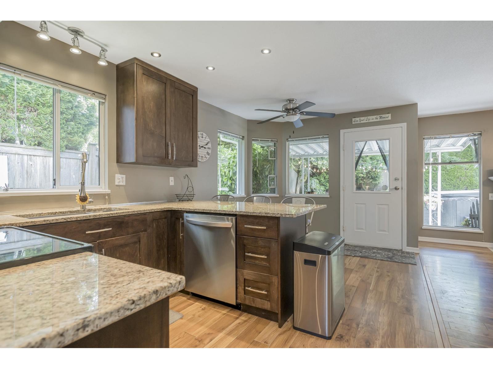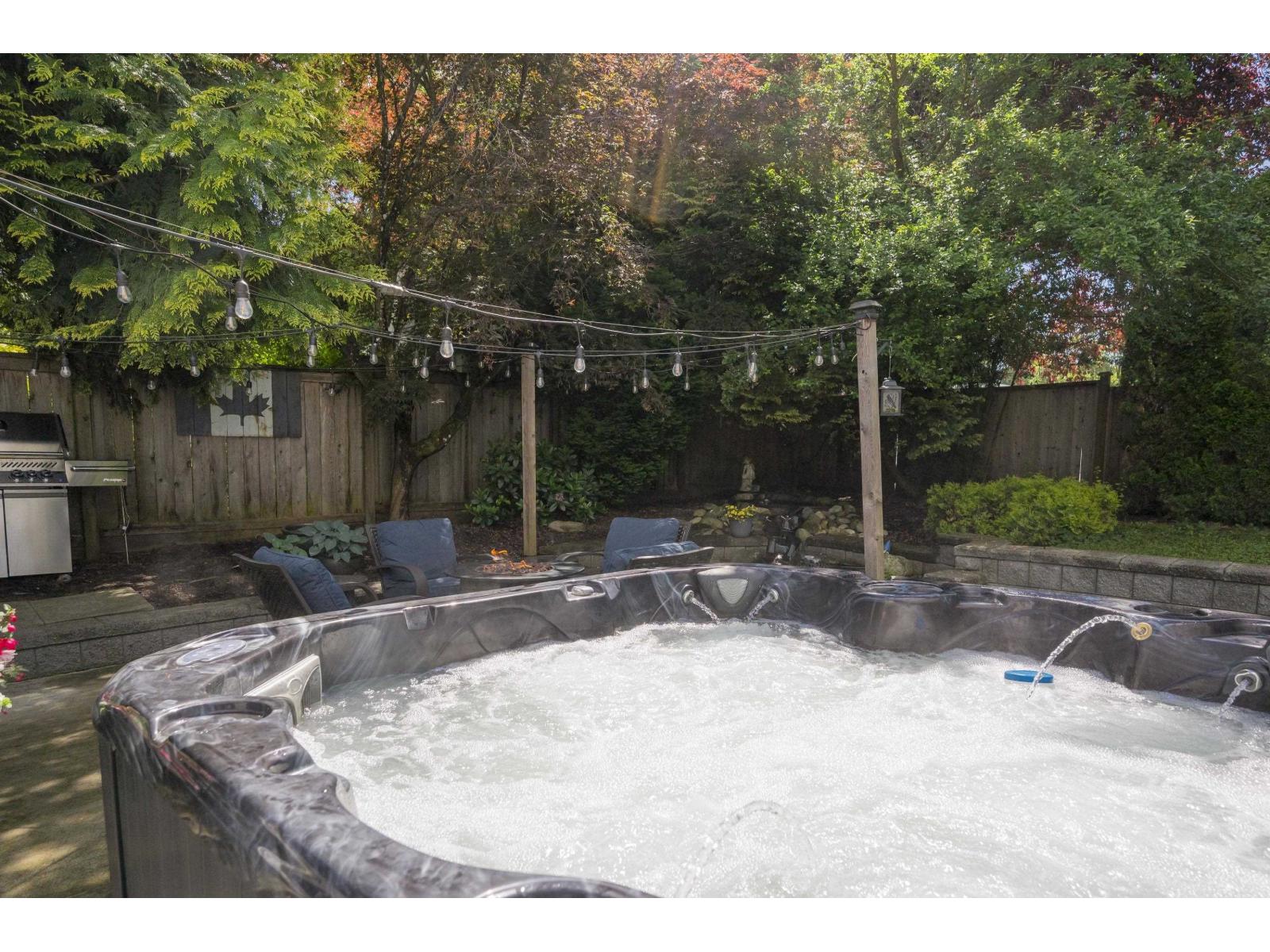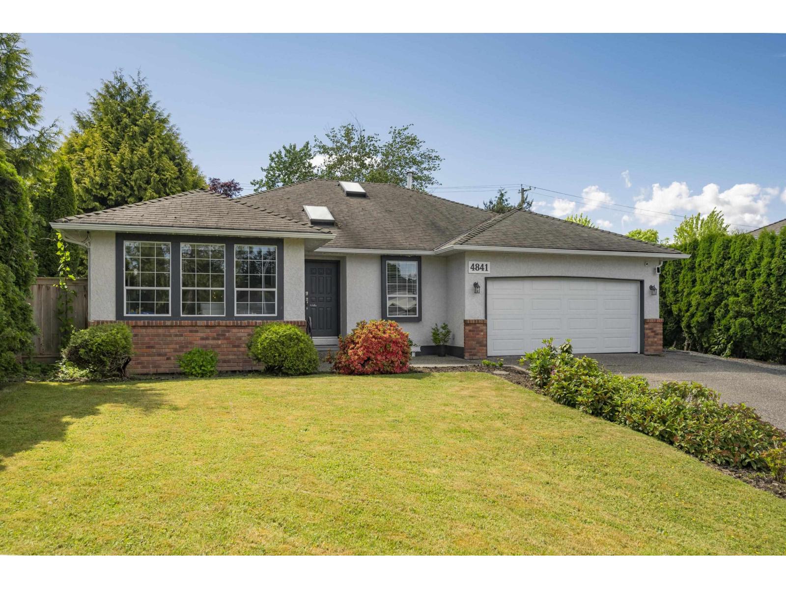 Beautiful 1546sf rancher on a large flat 8188sf lot in a cds location. Great layout featuring your living room/dining room then head to your kitchen w/eating area and family room. Large primary w/walk in closet and 4 piece ensuite. 2 more bedrooms + another 4 piece bathroom (cheater ensuite), big laundry room. Lots of storage. Hot water tank 2019, 2 skylights 2021, gutters 2020, kitchen fully updated in 2011 w/granite countertops and breakfast bar, roof 2015. Access to your fully fenced backyard oasis! Covered deck with mature trees, hot tub, beautiful pond, shed, great landscaping. Double garage + apron parking, RV parking. Room for all your toys! Close to great schools, transit, Newlands Golf Course, shopping, nature trails and more amenities. Quick possession available! (id:52823)