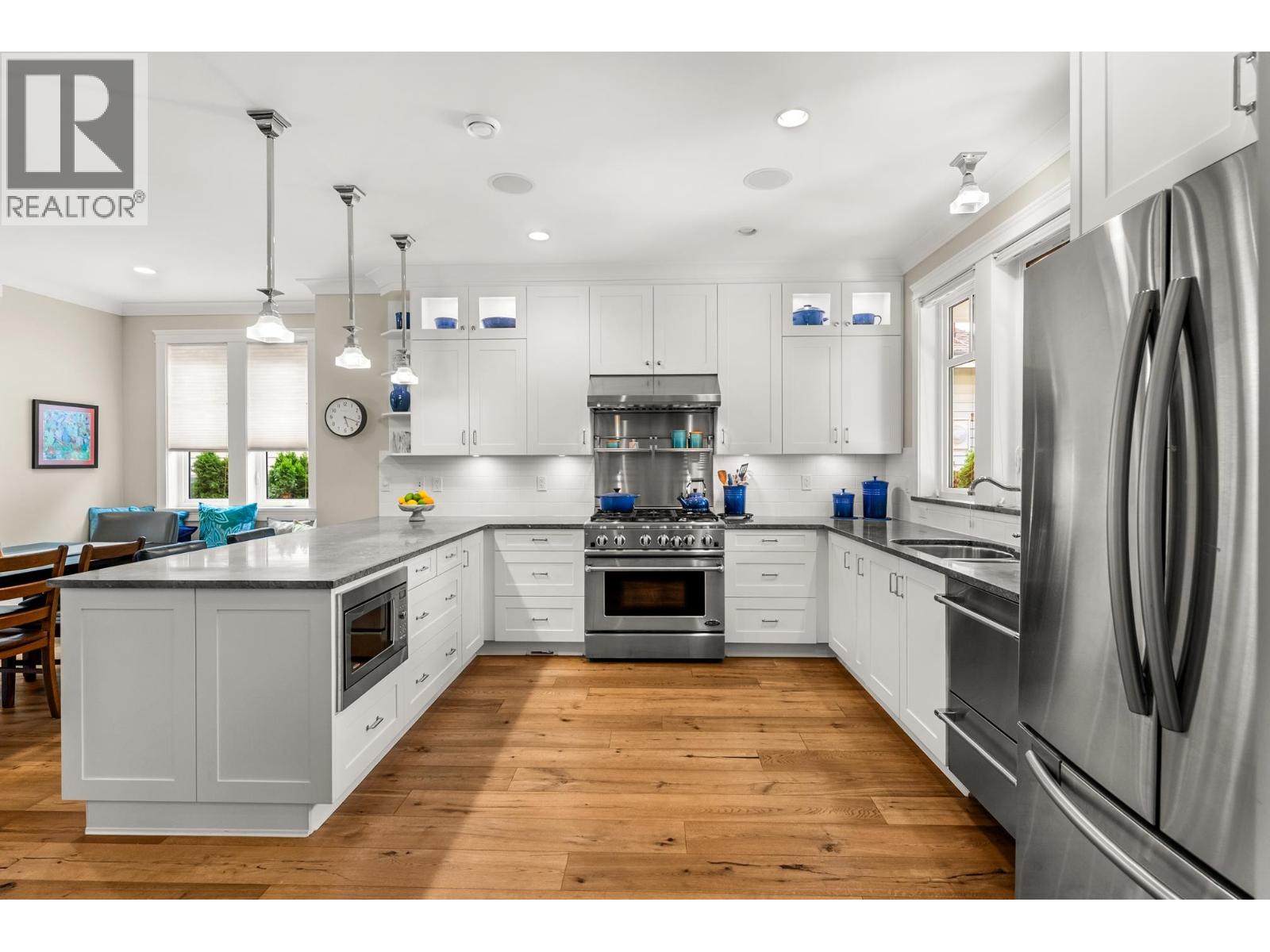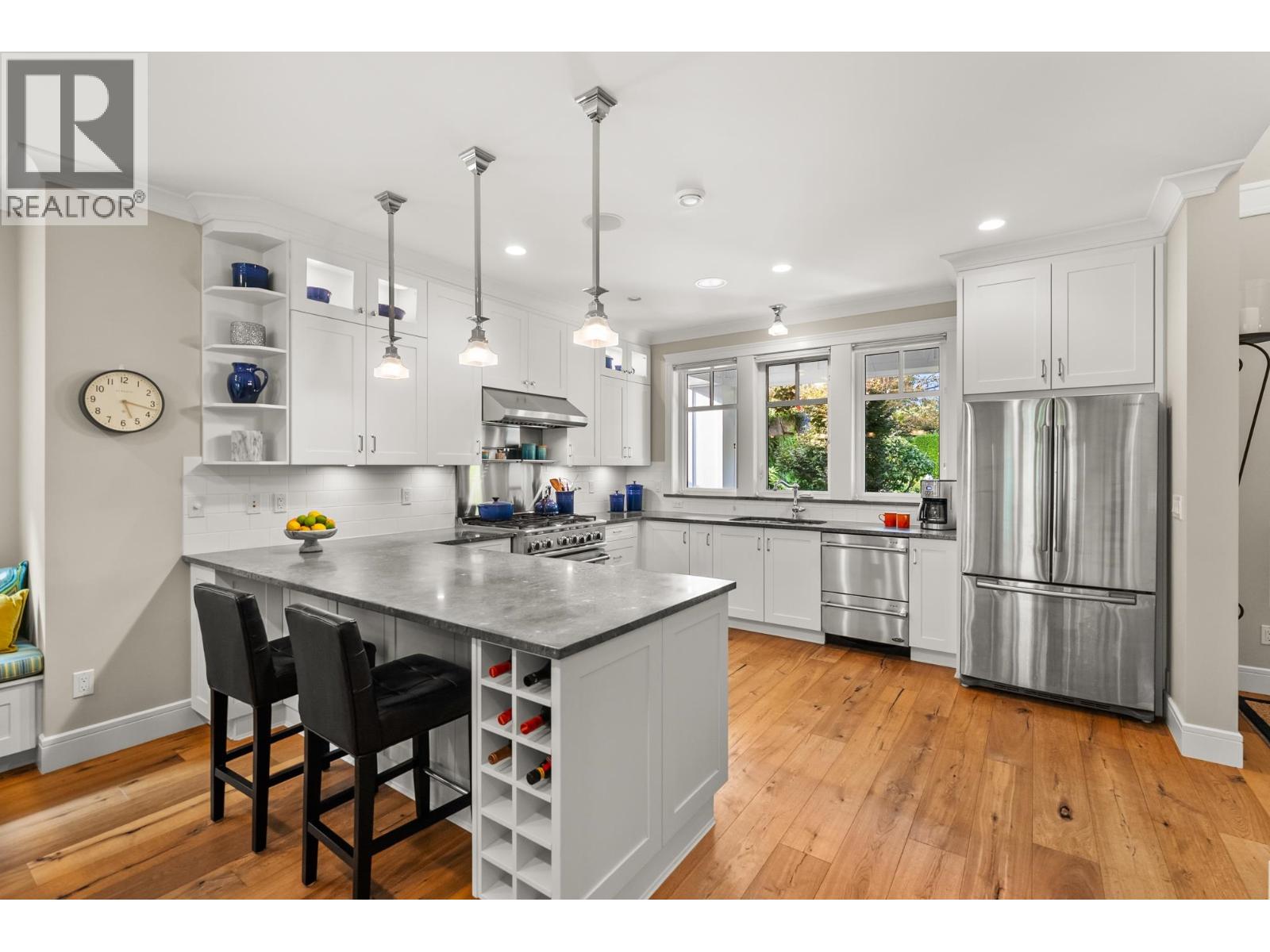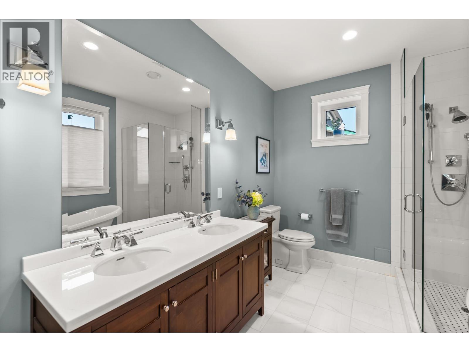 Step into timeless elegance with this custom built home, where luxury details meet everyday comfort. The beautifully landscaped front gardens set the tone while the private south-facing backyard offers a breathtaking retreat. Inside, the open-concept design is filled with natural light, featuring 10ft ceilings, Duchateau engineered hardwood, and Rejuvenation lighting fixtures. The chef's kitchen is a true showstopper with marble counters, shaker cabinetry, and DCS appliances including a 6-burner gas range. The primary bedroom on the main is your sanctuary, complete with his & her closets and a spa-like ensuite featuring marble finishes and a deep soaker tub. Euroline windows, exquisite millwork, solar panels and meticulous care throughout make this home as efficient as it is beautiful! (id:52823)