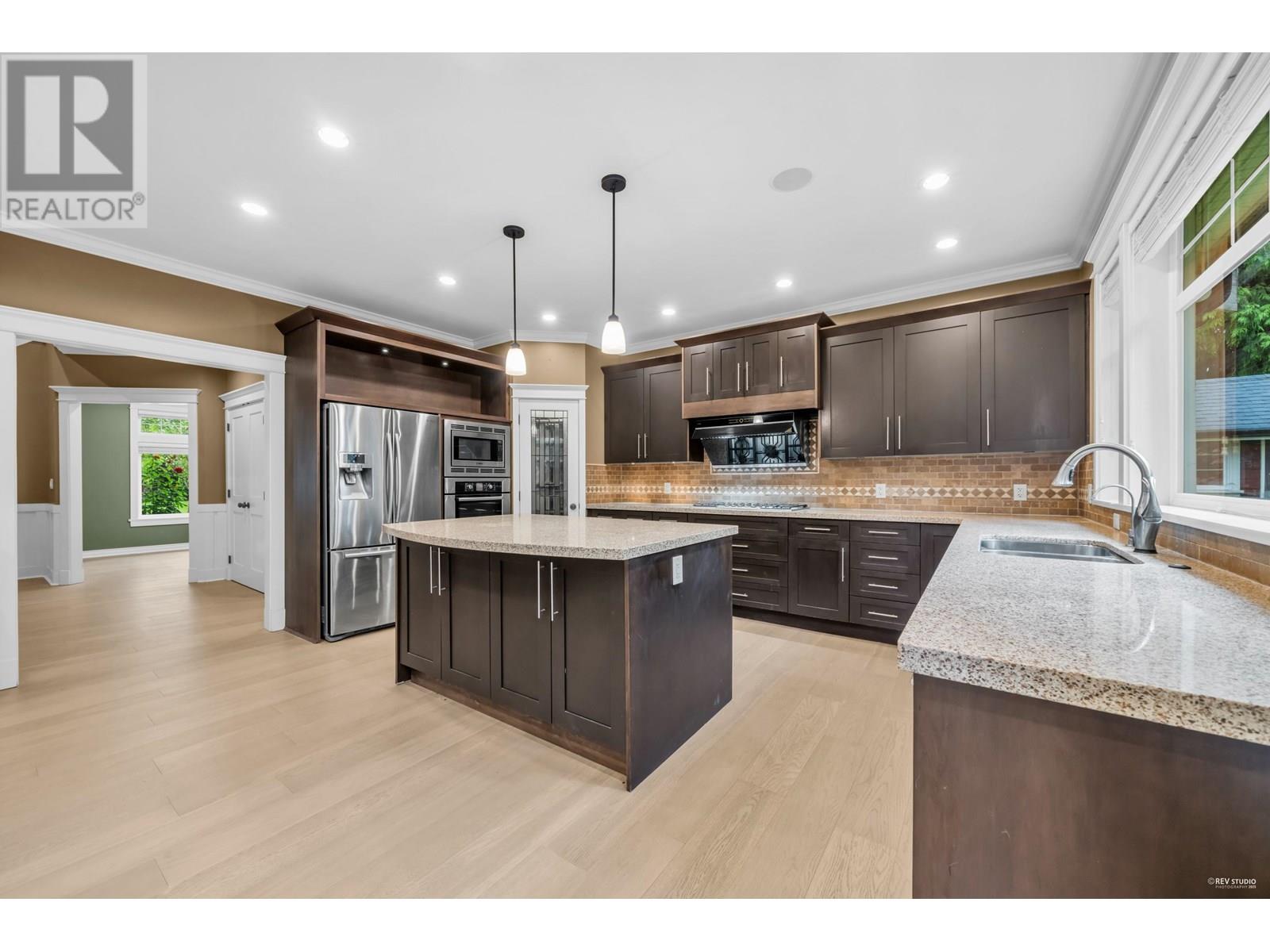 This custom-built home offers 2,802 square ft of living space, featuring 4 bedrooms, a den, and a 3-car garage with a convenient drive-through to the backyard. It also boasts an open floor plan with spacious rooms designed for entertaining. The oversized kitchen and dining area provide a great view of the private, hedge-lined backyard. The property is beautifully landscaped front and back, includes a detached workshop/shed with power. Set on a large 7,481 square ft lot with 80 feet of frontage, this home boasts excellent curb appeal in the neighborhood surrounded by mature trees. A warm and inviting home, perfectly suited for the whole family. (id:52823)