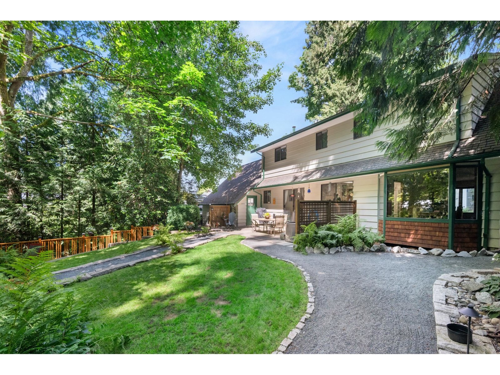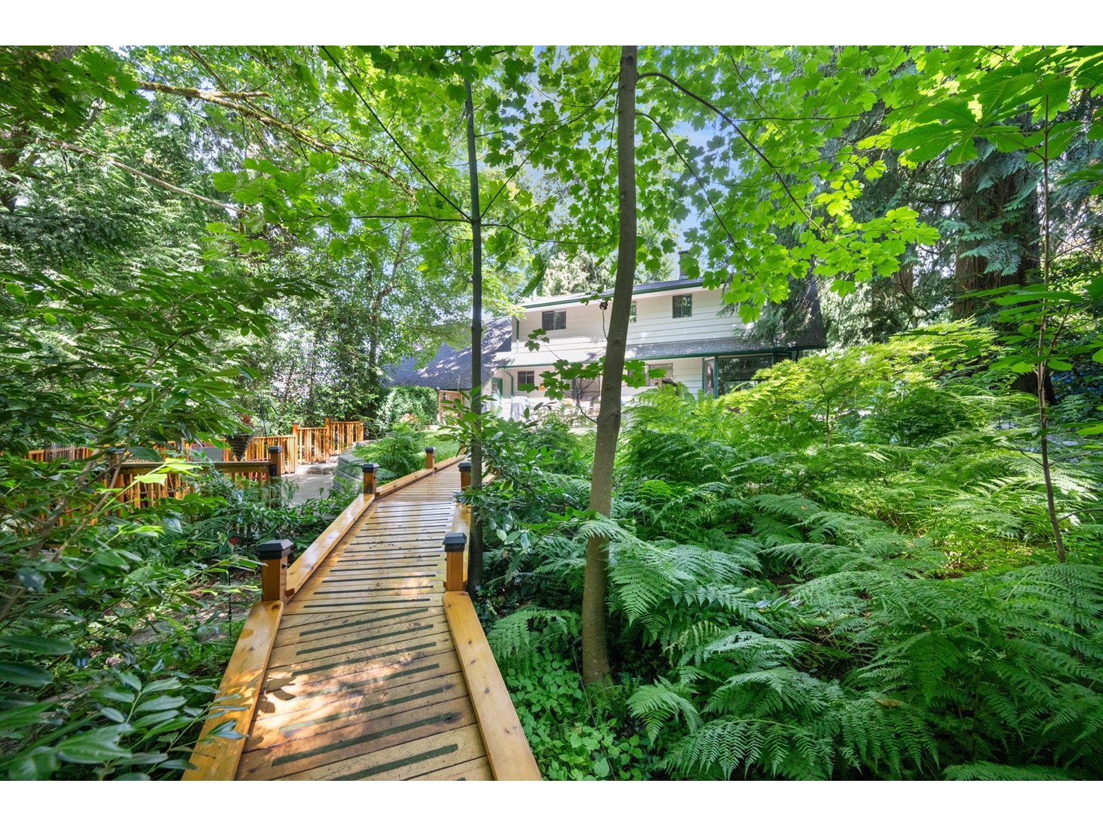 This is a rare opportunity to have your own private oasis right in the heart of Langley City. Welcome to this 5-bed/ 3-bath Cape Cod nestled at the end of a quiet cul-de-sac. Backing directly onto beautiful Sendall Gardens, this property offers a rare blend of privacy, nature, & potential. Featuring a spacious, traditional layout with charm and character, as well as four-zone hot water heating. A bedroom/flexroom on main. Step outside to the truly magical backyard, a serene, treed oasis with uplighting, a gas firepit, & complete privacy that feels like a world all of its own. It's the perfect setting for entertaining or peaceful evenings under the stars by the cozy fire. Listen to the sound of running water and birdsong as you sip your morning coffee. Car enthusiasts and hobbyists will love the oversized heated garage, RV parking, & space for up to 8 vehicles. Perfect for growing families, multi-generational families, or nature lovers. Conveniently located in a walkable neighbourhood, this home has it all! (id:52823)