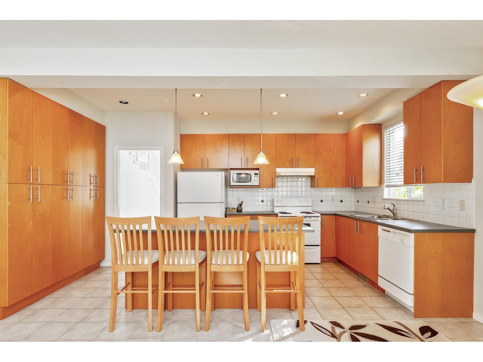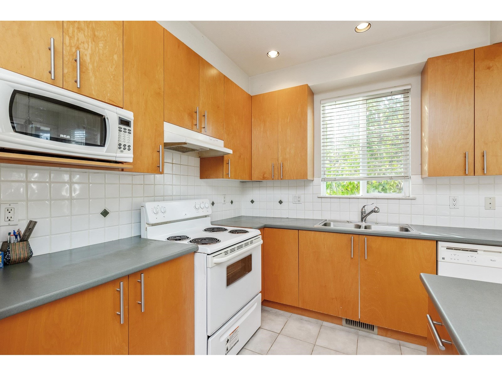 $790.77 MonthlyPRICED BELOW ASSESSED VALUE!!Beautiful 3 bedroom 2.5 bath, corner townhouse in sought after MONTROSE. Very rare, large townhouse with soaring 18ft vaulted ceilings in the living room/dining room. Extremely airy & bright floorplan with plenty of windows. Ample sized & well designed kitchen with large central island and plenty of storage. Family room & breakfast area facing privately fenced sizeable back yard. Master bedroom with luxury ensuite is on the main floor with 2 bedrooms upstairs plus bathroom. Plenty of potential in unfinished areas of the home. Huge 2 car side by side garage! Excellent location with future skytrain station extension, a short walk to the Community Center, Walnut Elementary/Fleetwood Secondary school, parks, library, shopping and transit. Open: Sunday October 5th 12:00-1:30 (id:52823)