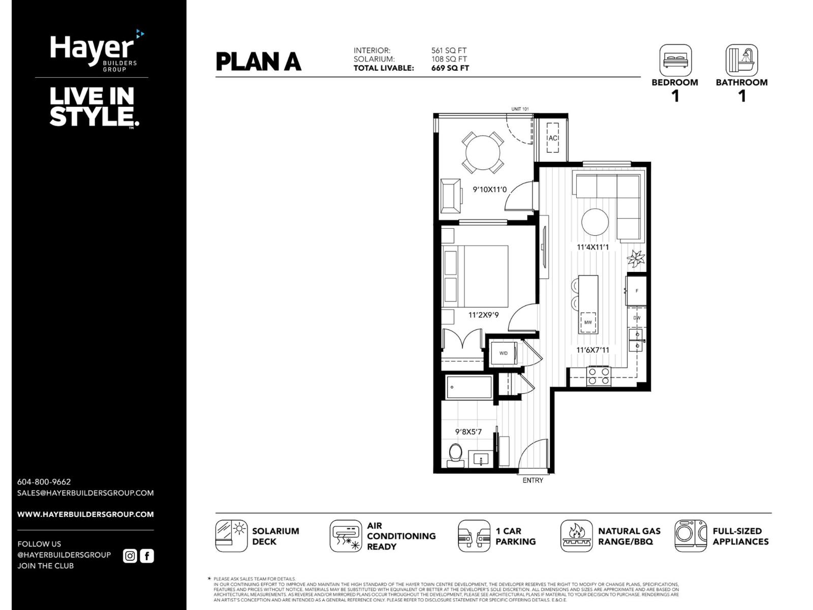 $340.27 MonthlyAssignment of Contract - Welcome to Hayer Town Centre - Plan A, a modern 1 bed, 1 bath condo offering 561 sq.ft. of interior living space plus a 108 sq.ft. solarium. The open-concept layout showcases premium finishes, including a Samsung stainless steel kitchen package with gas range, French-door fridge, microwave, and DW, complemented by quartz counters, soft-close cabinetry, and in-suite W/D. Upgrades include A/C and laminate flooring. Enjoy year-round outdoor living on your private solarium deck. Community amenities include a 0.25-acre urban green with dog run and fire pits, party and sports lounges, rooftop patios, EV parking, bike storage, concierge service.Peace of mind comes with full 2-5-10 new home warranty.Steps from shops, dining, parks, transit, and the Langley Events Centre. (id:52823)