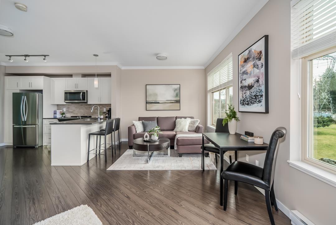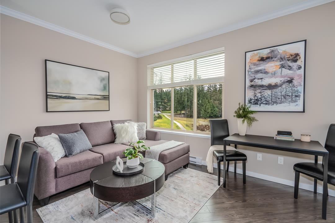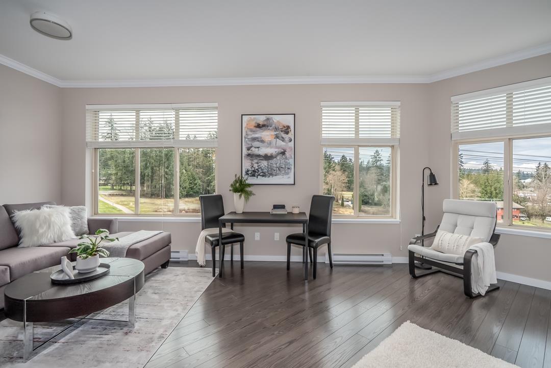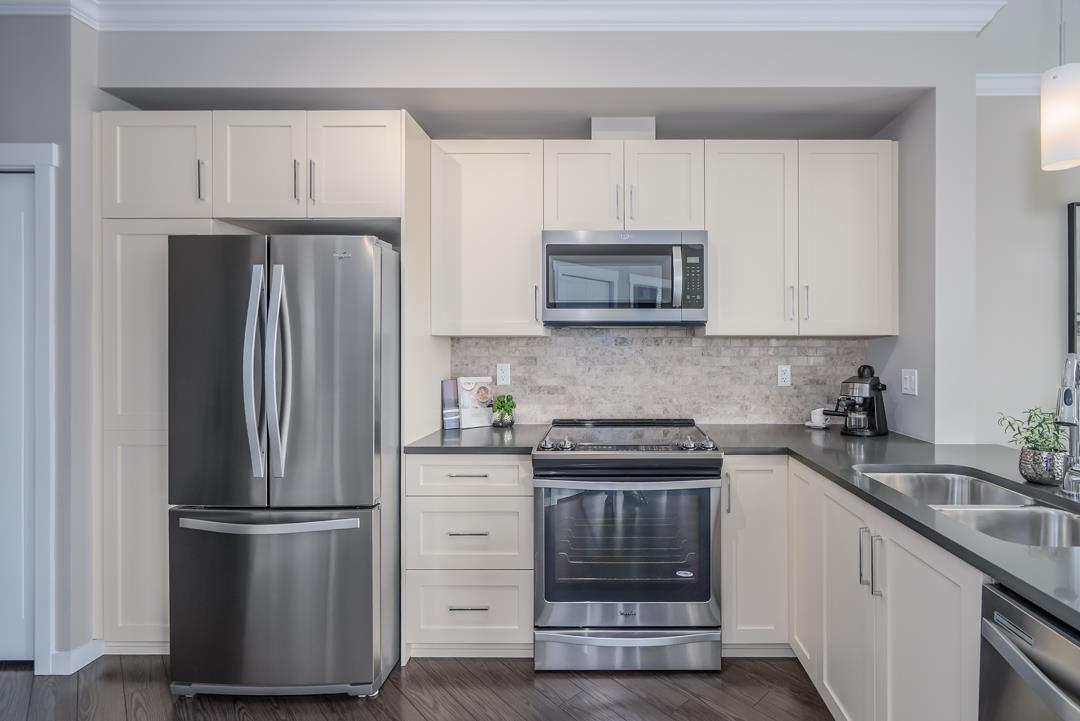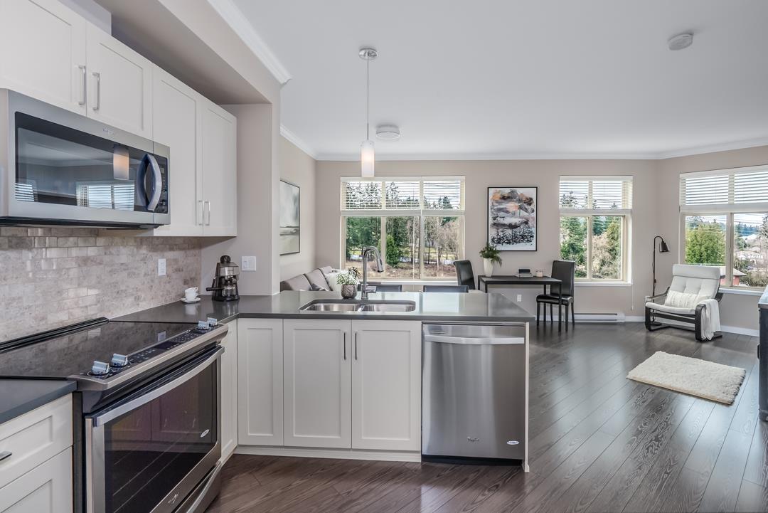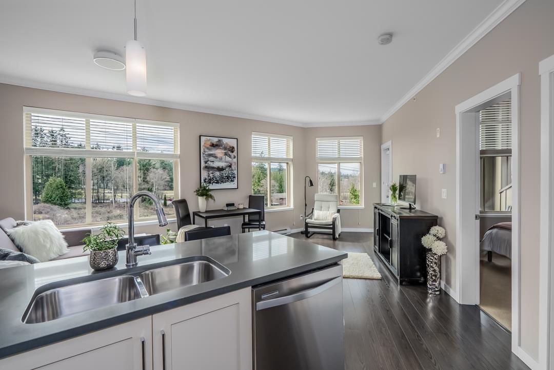$291.90 MonthlyThis Stunning Top-Floor corner unit in 'The Heights' offers breathtaking sunsets, and total privacy. Features include quartz countertops, stainless steel appliances, beautiful custom cabinetry, gleaming laminate floors, 12-foot ceiling with elegant crown moldings, and more. The oversized, energy-efficient windows allow natural light to flood the open floor plan, perfect for entertaining or relaxing. A large private Balcony/Deck with Mountain View provides a tranquil space to unwind, or enjoy the pathways through the beautiful large tree setting in the rear of the property. All this in a prime location, just steps away from the shops at Morgan Crossing and Grandview Corners, with easy access to Highway 99, White Rock beaches and the U.S. border. NOW AVAILABLE FOR IMMEDIATE POSSESSION. (id:52823)