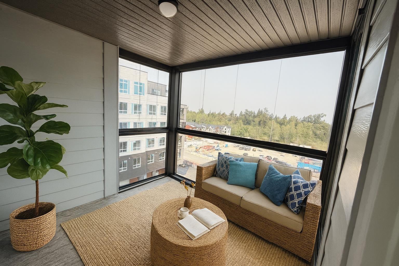 $30,000 CREDIT! Experience modern urban living at HAYER TOWN CENTRE in Langley. This 2 bed, 2 bath 'G' floor plan on the 5th floor of Building 4 offers a thoughtfully designed layout with high ceilings, premium finishes, and a retractable glass solarium deck for year-round enjoyment. Contemporary interiors feature quartz countertops, soft-close cabinetry, roller blinds, and a full Samsung appliance package. Residents enjoy exceptional amenities including a concierge, rooftop decks, games and party rooms, children's play areas, a dog park, and Langley's first vertical living garden. Steps to shops, services, parks, and future SkyTrain, this is an unbeatable location in a vibrant master-planned community. Comes with 1 Parking Stall, 1 Storage Locker, Airconditioning and premium upgrades. (id:52823)