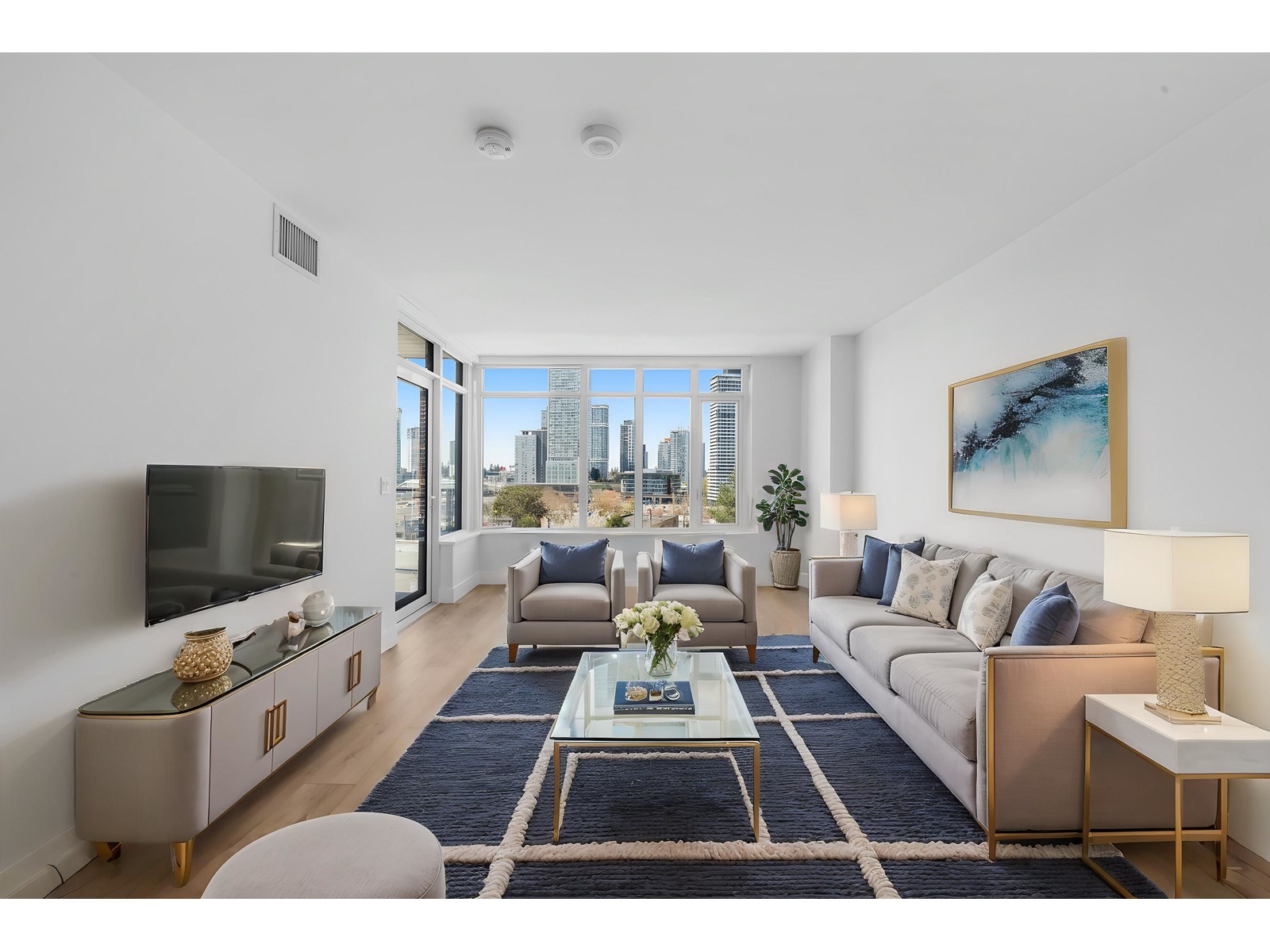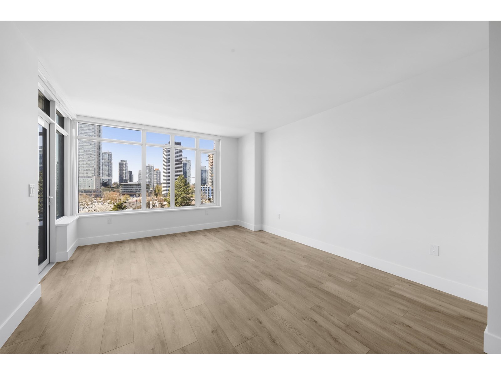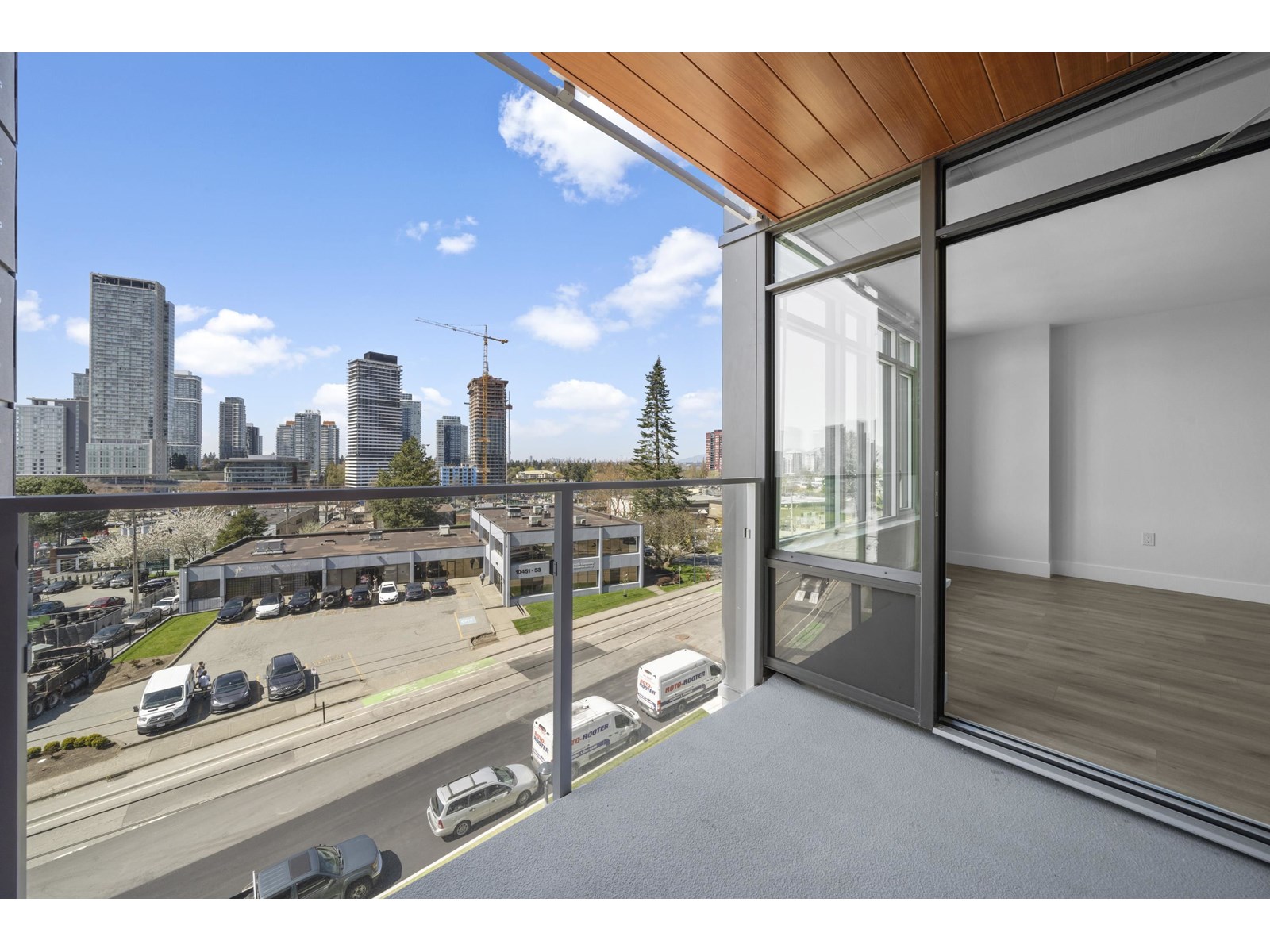 $427.91 MonthlyASCENT into Your Dream Home! by Maple Leaf Homes. The largest 1 bedroom & DEN (750SF) in a contemporary concrete hi-rise building with A/C & a city view. The DEN (8.9 X 10.8) could be used as a second bedroom/home office. Three elevators to serve this west facing unit plus concierge at front desk. FIRST CLASS amenities on 3 levels: [LIVE, WORK & PLAY] gym, dog run, social lounge, dining room, workspace, children's play area, outdoor space, roof top lounge, fireplace, & more. Central to Skytrain, Surrey Place Mall, SFU, KPU, UBC DC, many shops & Surrey's central business district. 1 parking & 1 bike locker. This home is not the typical small new build, it has the space you need - you don't need a car to get around but this one parking stall. Quartz Counters, Fulgor Milano appliances: integrated 22" fridge, SS 24" gas cooktop, electric wall oven, & dishwasher. Blomberg front load washer/dryer. Strata Fee includes heat, hot-water & gas. Be the first to live in this spacious home. (id:52823)