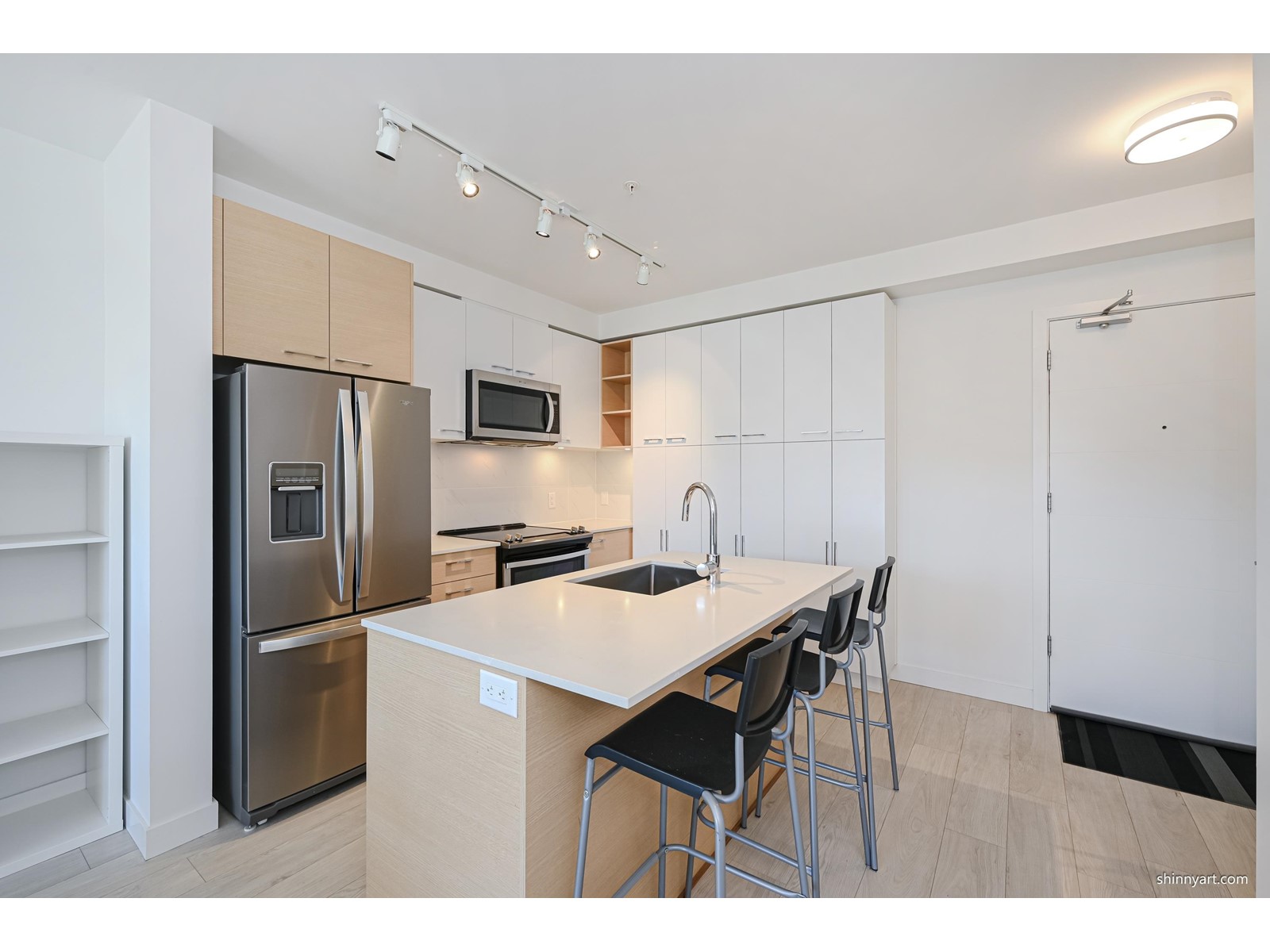 $309.10 MonthlyWelcome to HQ Dwell-developed by Porte, located in the heart of Surrey. Close to Skytrain, SFU Surrey Campus and Central Mall.This one bedroom unit boasts one of the most functional layouts in the building. The spacious unit features good size bedroom and a large walk-in closet. The east-facing unit overlooks a quiet inner courtyard, offering brightness and privacy. Equipped with a built-in home security system installed by the developer. The unit showcases higher ceilings and premium finishes, including wide-plank flooring, quartz countertops and stainless steel appliance. Meticulously maintained by the owner, like original condition. Amenities include a gym, lounge, and an outdoor BBQ area. Adjacent to Forsyth Park, with kids playground and dog park. Open House, July 26, 2-4 pm (id:52823)