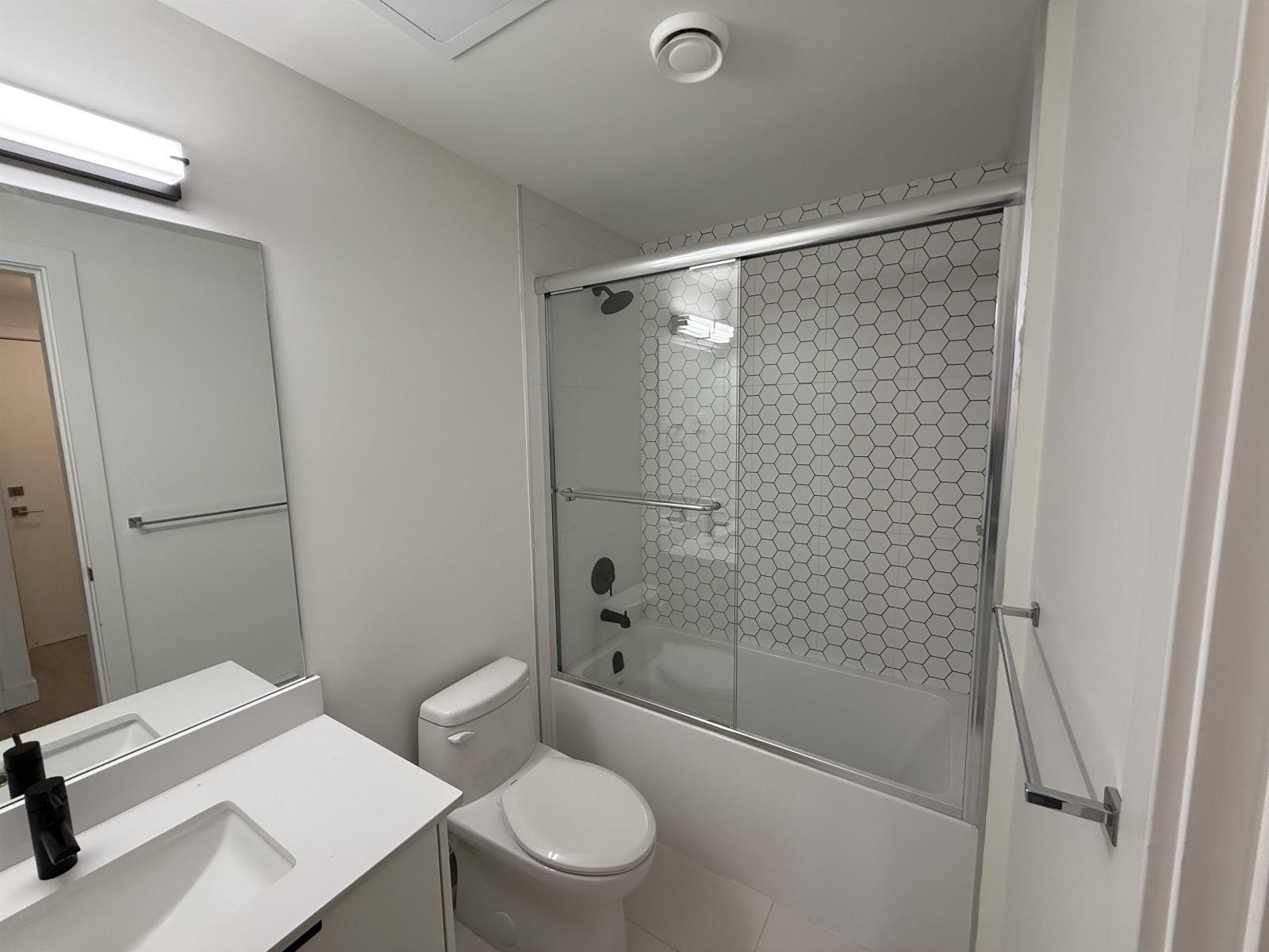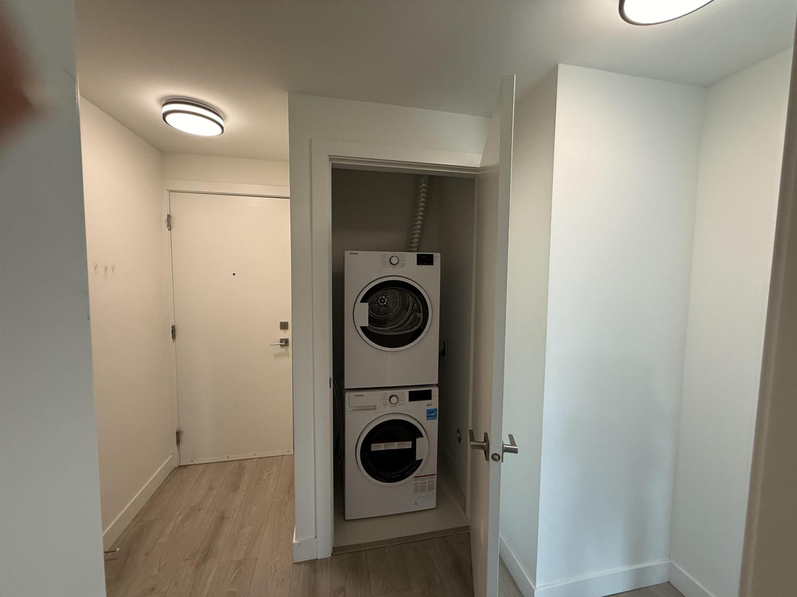 $417.32 MonthlyPenthouse corner unit with 2 side by side PARKING SPOTS, first owner, located in a very convenient location of Downtown Surrey. Walking distance to Surrey Central Mall and both Gateway and Surrey Central Skytrain Station. This lovely home is designed with highly functional interiors and boasts plenty of natural light through its well-lit, large windows. The kitchen features quartz countertops and top-notch S/S appliances, complete with a built-in microwave. Facing East toward the quiet side and morning sunrise. Current vacant and ready for quick possession. OPEN HOUSE: 1:00 PM - 4:00 PM on October 11, 2025. (id:52823)