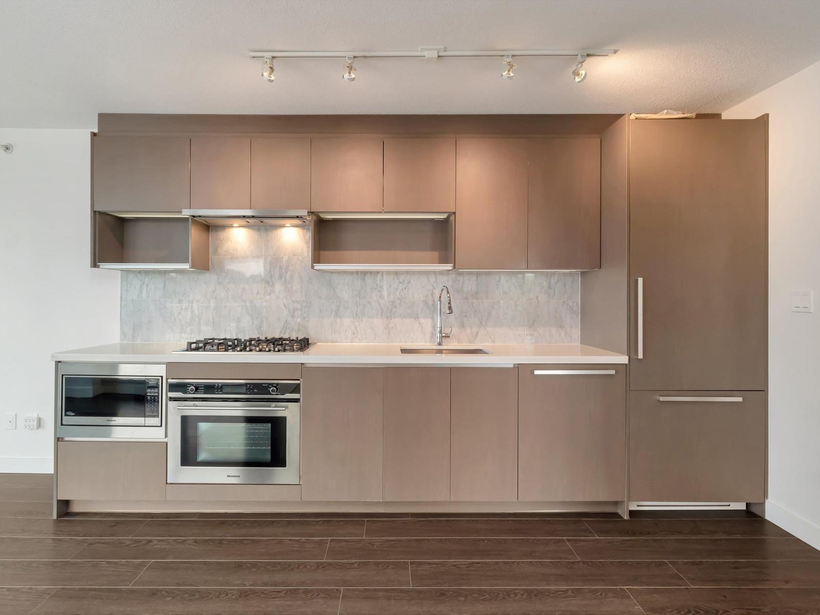 $435.52 MonthlyChic 2-bedroom, 1-bathroom condo by Concord Pacific. Offering contemporary design, this unit features a spacious, open-concept living and dining area, enhanced by elegant laminate flooring and large windows that fill the space with an abundance of natural light. The gourmet kitchen is equipped with modern, built-in appliances and a gas stove, perfect for those who love to cook. Residents can enjoy an array of premium amenities, including concierge services, a swimming pool, tennis court, sky lounge, party room, and playground, all designed for ultimate comfort and convenience. Ideally located, you're within walking distance of shopping, dining, SkyTrain access, and SFU. This condo also includes one parking and a storage locker . (id:52823)