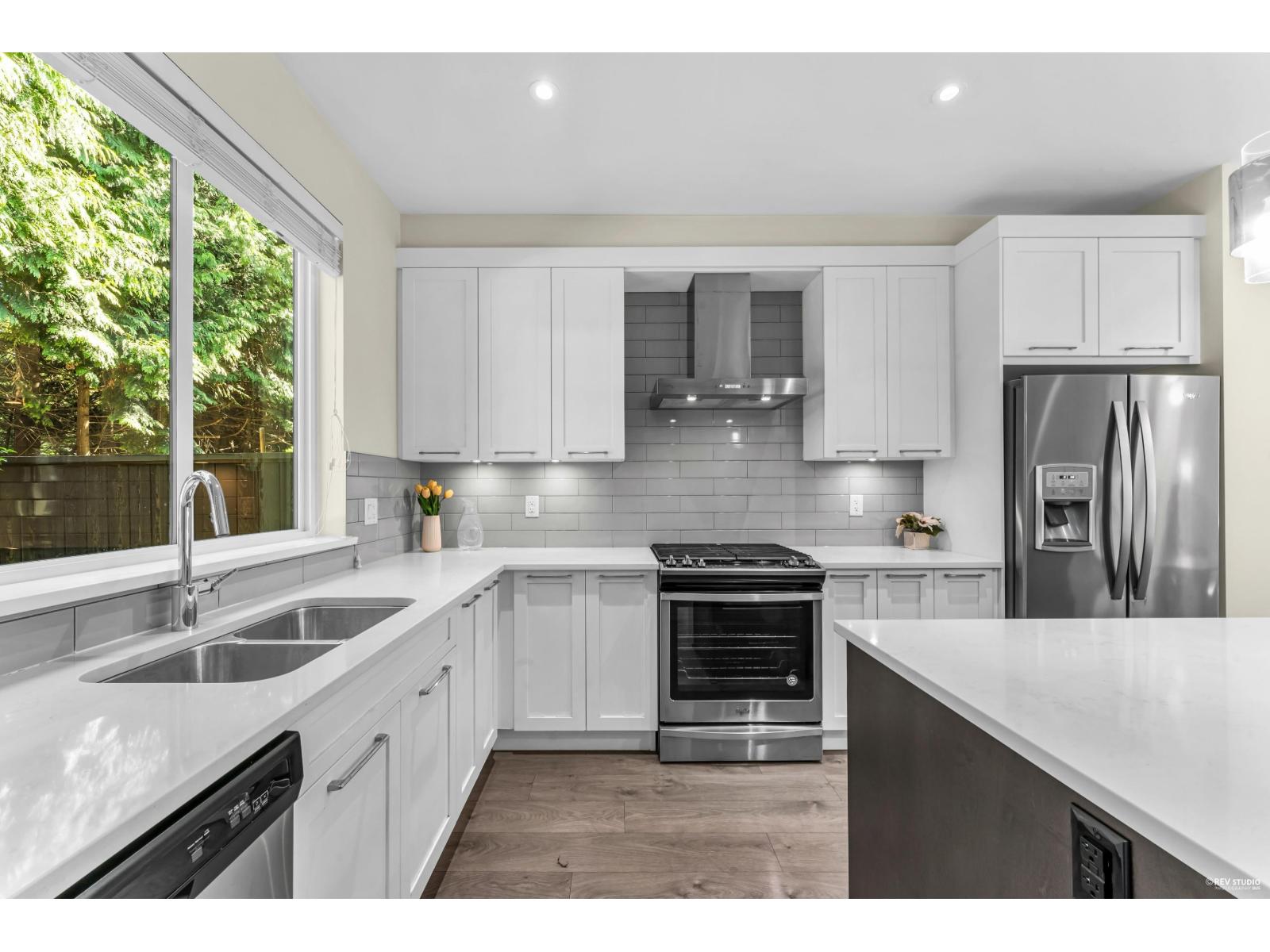 $442.85 MonthlyLocated just off the 18th green of the Guildford Golf Course, The Links Residences is an exclusive 55-home community of Tudor-inspired townhomes with timeless curb appeal, double side-by-side garages, and generous layouts. This home features a spacious primary bedroom with vaulted ceilings and a luxurious 5-piece ensuite, an L-shaped kitchen with an oversized island and window, soaring ceilings, bright open living areas, and high-quality finishes including stainless steel appliances and quartz countertops. Enjoy a large fenced backyard, many with direct views of protected greenspace or golf-course fairways, plus the comfort of air-conditioning throughout. The basement offers a versatile room that can be used as a recreation room, home office, or guest suite. Open House: Sept 21 (Sun) 1-3 pm. (id:52823)
