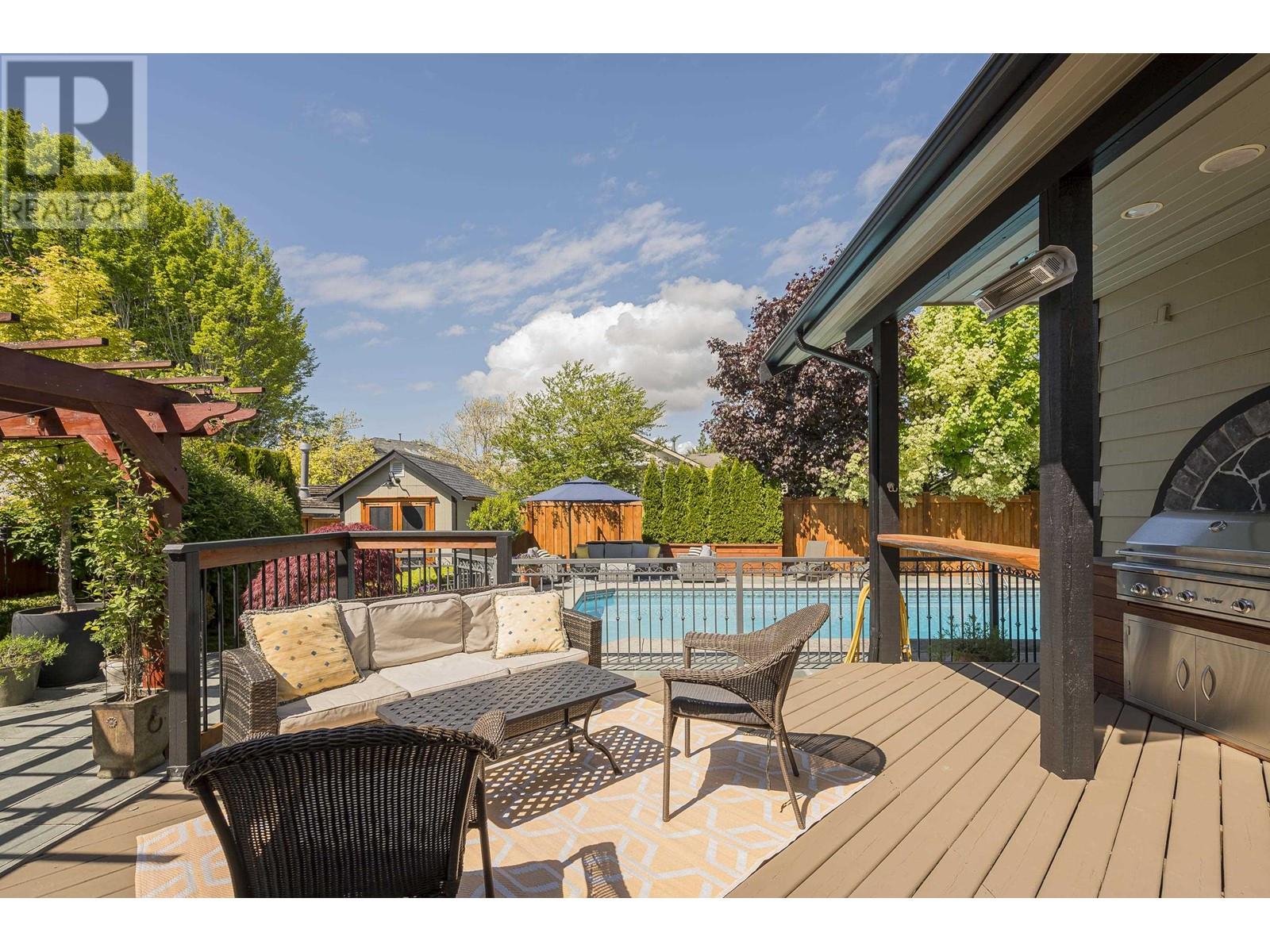 Stunning fully updated home in upper Tsawwassen built for entertaining! Every aspect of this home has been carefully designed-from the hardwood flooring, open concept kitchen/family room area to the spacious living room and dining area with a cozy fireplace. Three bedrooms on upper level, primary bedroom is oversize and features a fireplace and private balcony, fourth bedroom on lower level. A private oasis awaits outside via French doors-custom outdoor kitchen, dine under the pergola complete with chandelier-a little bit of Tuscany! Sprawling deck, fully fenced sundrenched pool, multiple sitting areas and low maintenance yard. Over $200k in renos (2019-2023)!! Total living space is 2752 sq.ft. located on a 7965 sq.ft. lot. Your dream property awaits! (id:52823)