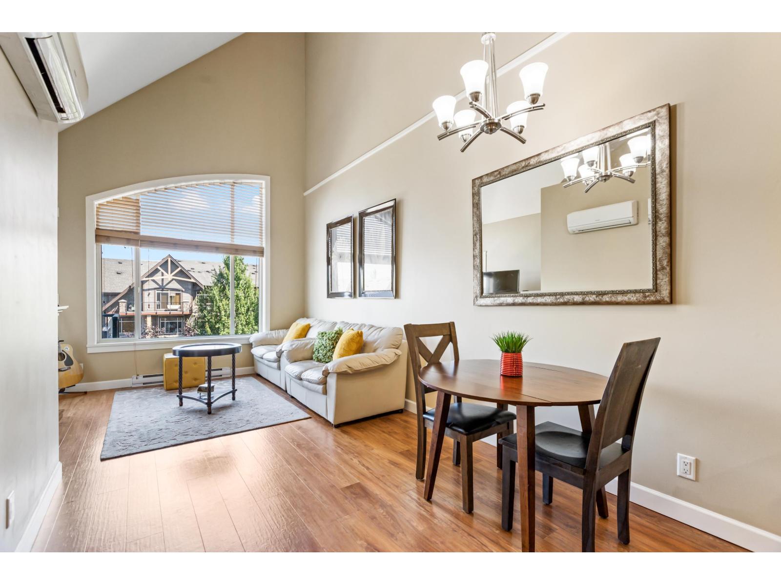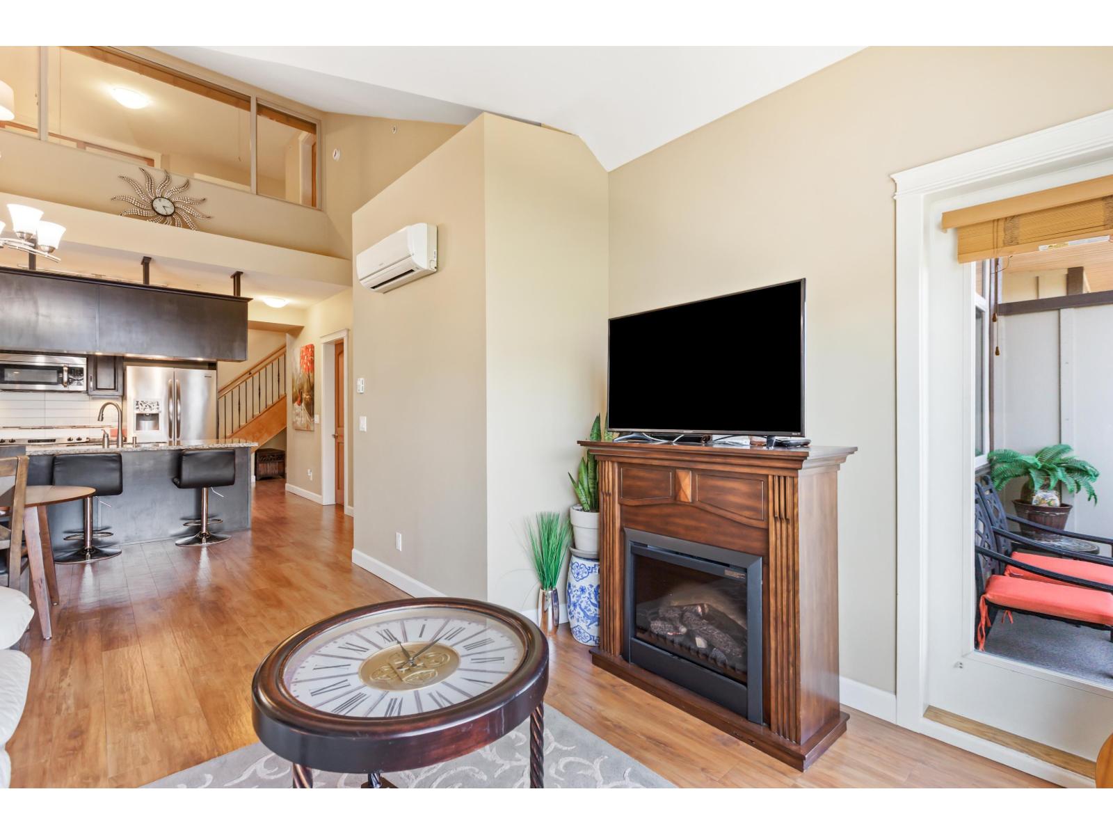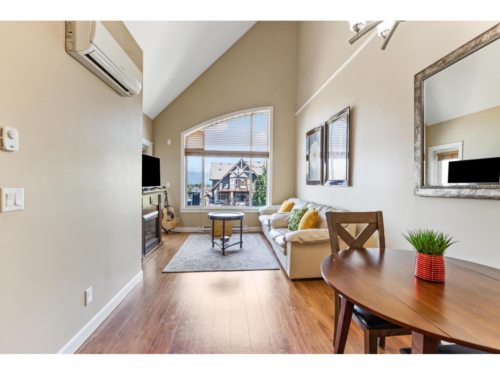 $398 MonthlyTop-floor living in Walnut Ridge at Yorkson Creek! Built by Quadra this two level 2 bed, 2 bath + flex area features vaulted ceilings, large windows, and an open layout filled with natural light. Take in the stunning mountain views from your patio on a sunny day. Enjoy a gourmet kitchen with granite counters, stainless steel appliances, and rich cabinetry. Additional features include A/C, heated bathroom floors, 2 side by side parking stalls, and 2 private roll up storage lockers. You can't beat this location located in the heart of Willoughby, close to schools, parks, shopping, and transit. Don't miss out on this rare top-floor opportunity! (id:52823)