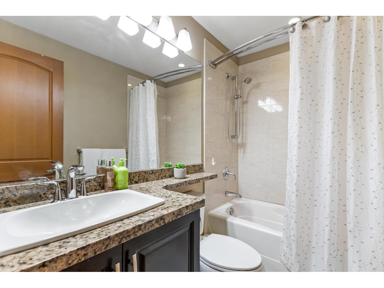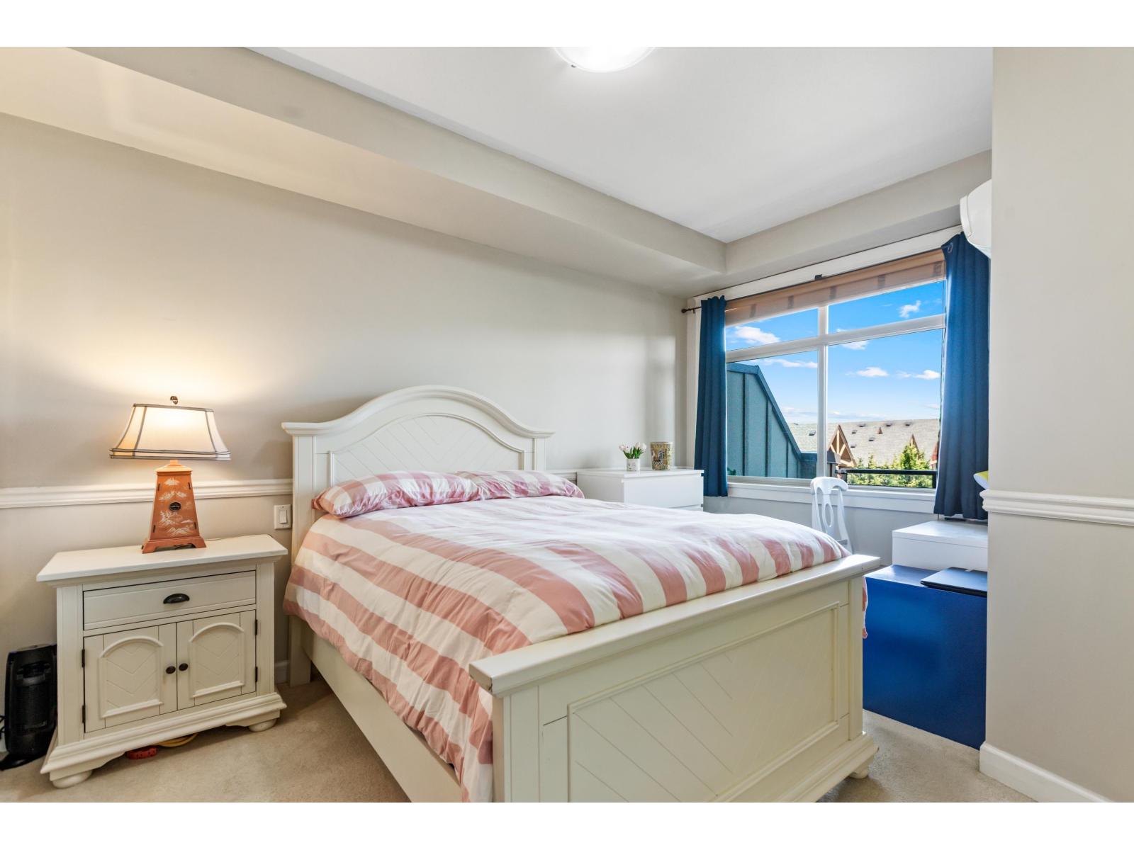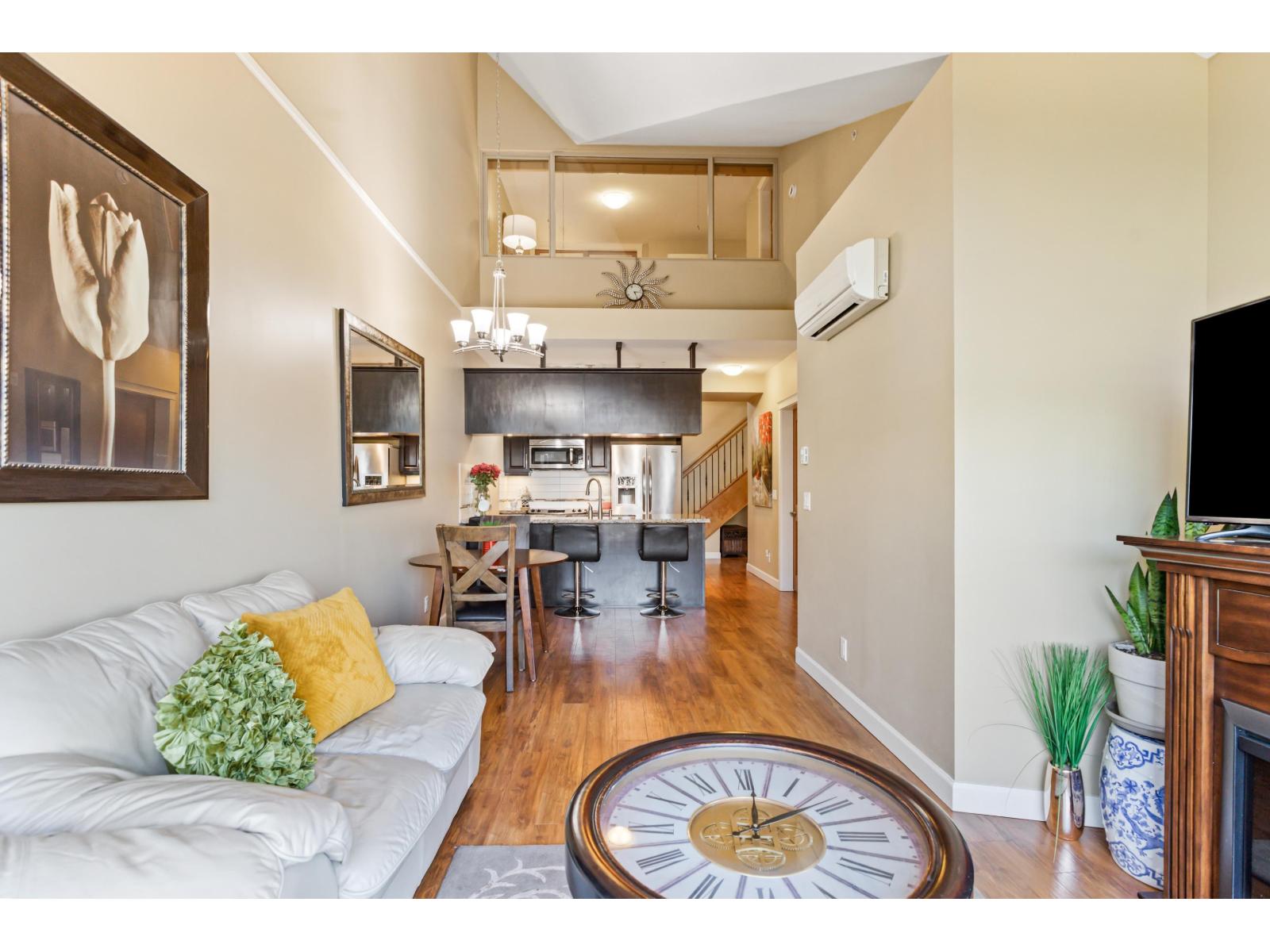$398 MonthlyTop-floor living in Walnut Ridge at Yorkson Creek! Built by Quadra this two level 2 bed, 2 bath + flex area features vaulted ceilings, large windows, and an open layout filled with natural light. Take in the stunning mountain views from your patio on a sunny day. Enjoy a gourmet kitchen with granite counters, stainless steel appliances, and rich cabinetry. Additional features include A/C, heated bathroom floors, 2 side by side parking stalls, and 2 private roll up storage lockers. You can't beat this location located in the heart of Willoughby, close to schools, parks, shopping, and transit. Don't miss out on this rare top-floor opportunity! (id:52823)