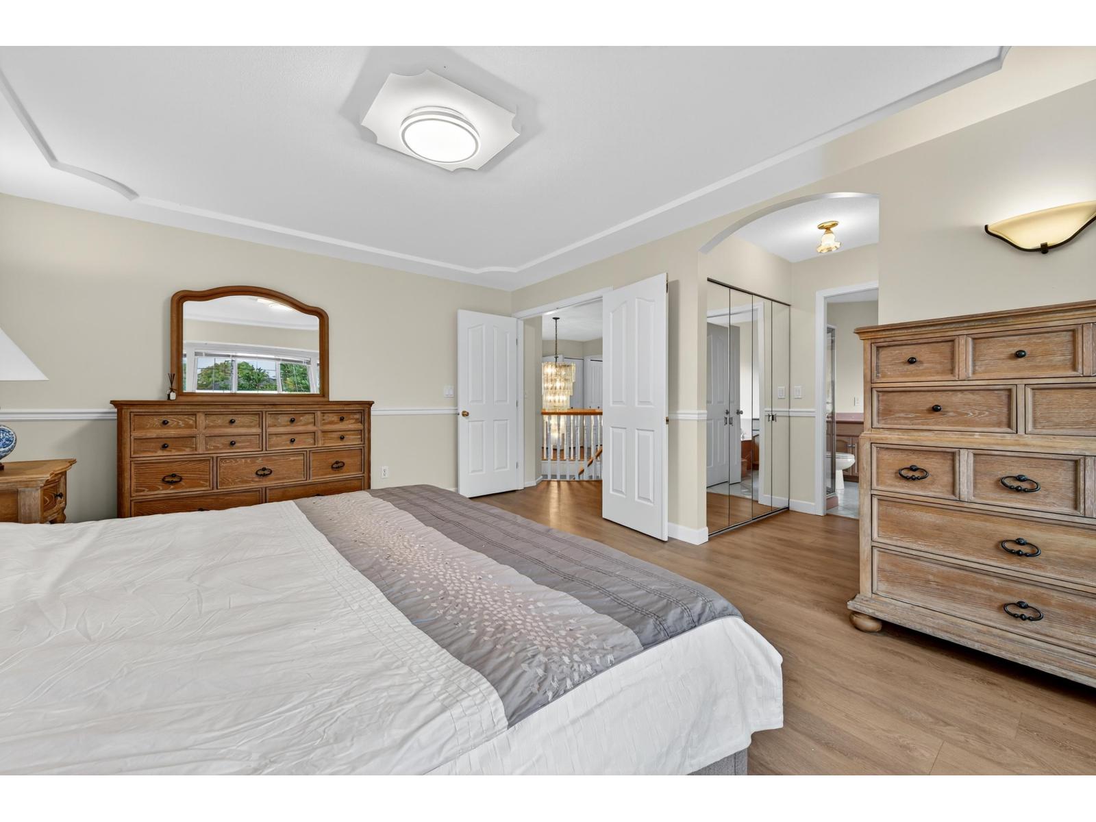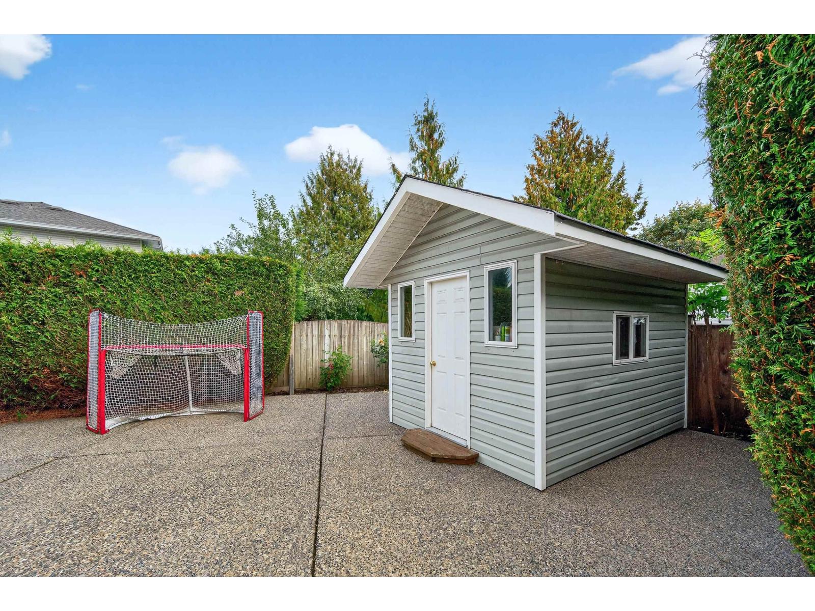 Welcome to this immaculate family home, perfectly situated on a quiet cul-de-sac with a sun-filled, south-facing backyard. This well-cared-for 2-level residence offers a bright, air conditioned and spacious layout featuring formal living and dining areas, a light oak kitchen with center island, gas cooktop, and wall oven, plus a cozy family room and versatile bedroom/den on the main floor. Upstairs boasts 3 large bedrooms, including a secondary bedroom with its own ensuite, and a spacious games room. Enjoy outdoor living with a beautifully landscaped private yard, an 8' x 12' powered shed and RV parking. Within walking distance to Diamond Private School, Cloverdale Traditional, École Martha Currie, Sunrise Elementary. Conveniently close to Willowbrook Mall, Hwy 17 & 10. (id:52823)