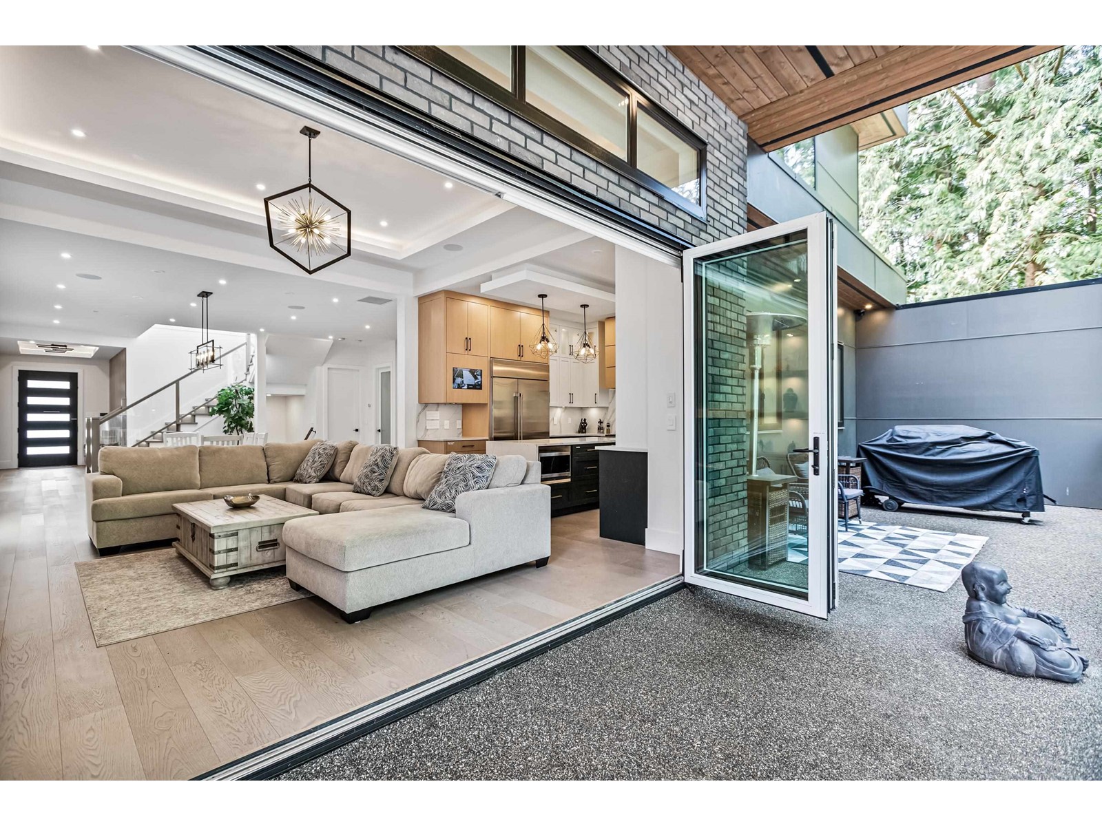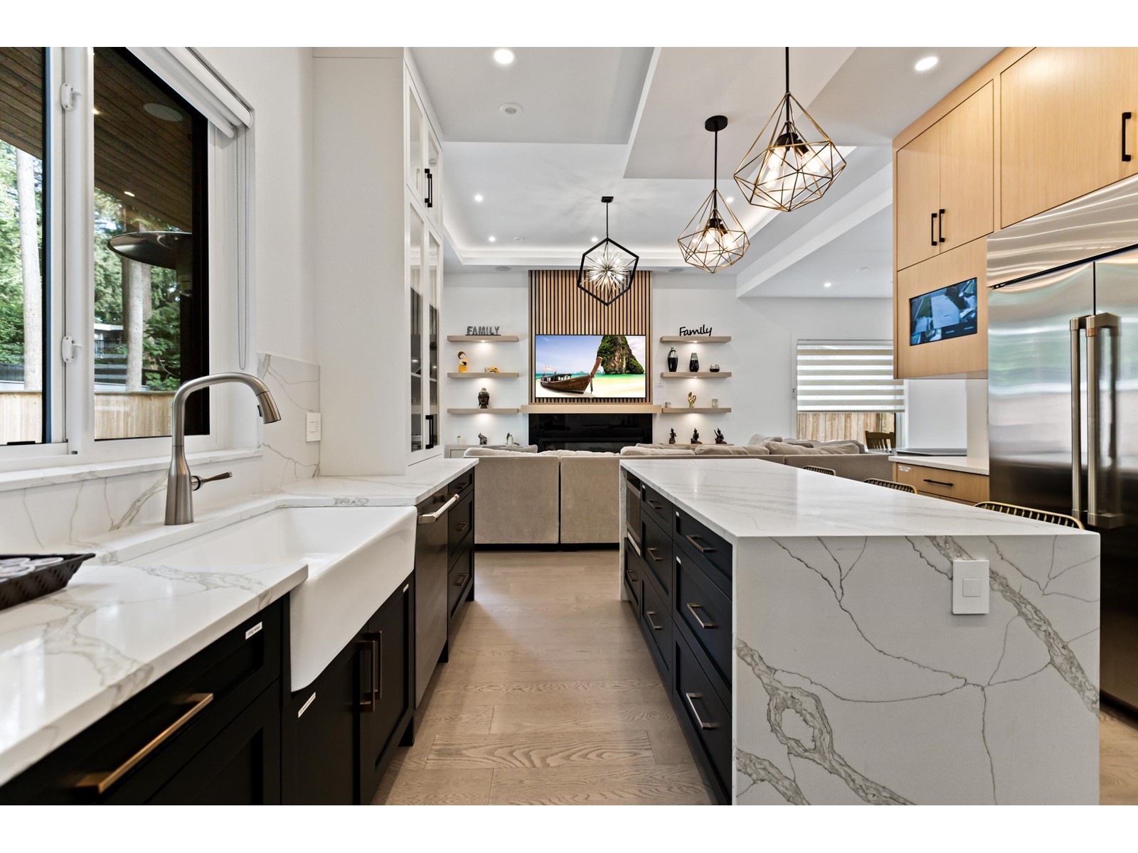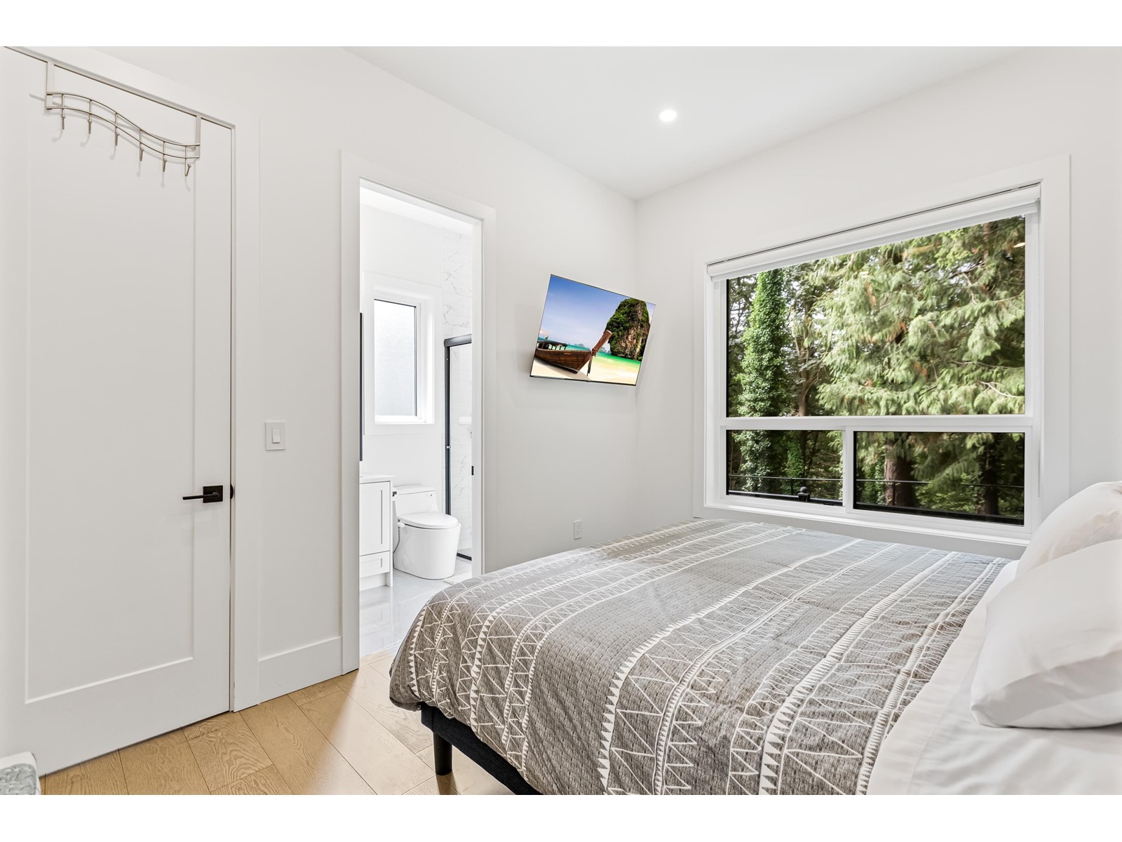 This expansive luxury residence offers over 4,600 sqft of elegant living space, ideally located on a peaceful street with the serenity of a lush forest as your backyard. Start each day surrounded by nature's beauty, while enjoying the convenience of nearby amenities just minutes away. The main level is thoughtfully designed with functionality and comfort in mind, featuring a spacious master bedroom with en-suite, a dedicated home office, and a fully-equipped work kitchen. Upstairs, the primary suite is a private retreat complete with a built-in vanity, a generous walk-in closet, and a spa-like en-suite bathroom that invites relaxation. The lower level is perfect for entertaining or unwinding, boasting a large recreation room with a wet bar and a dedicated theatre room. (id:52823)