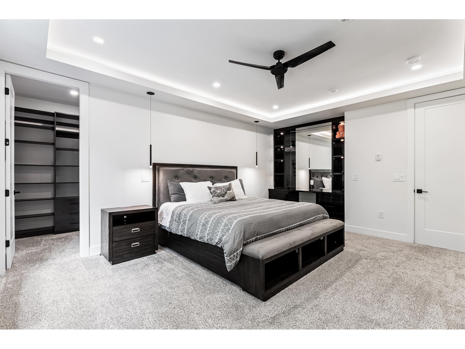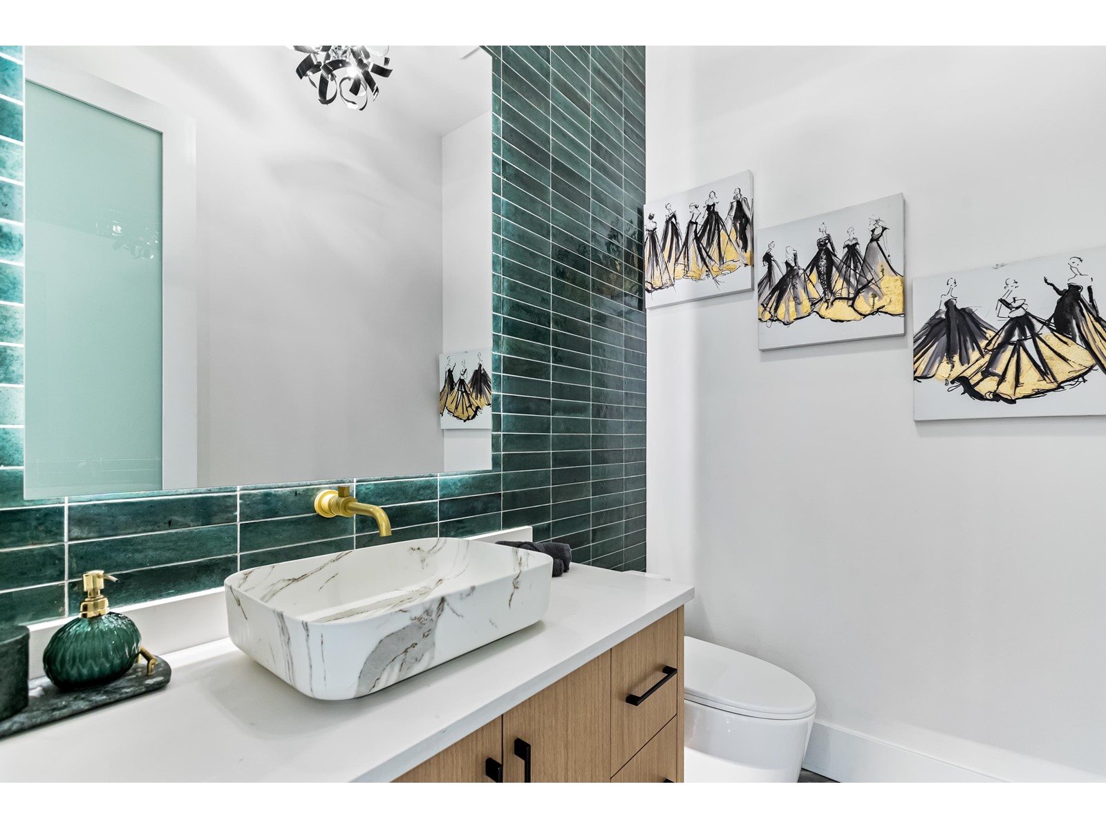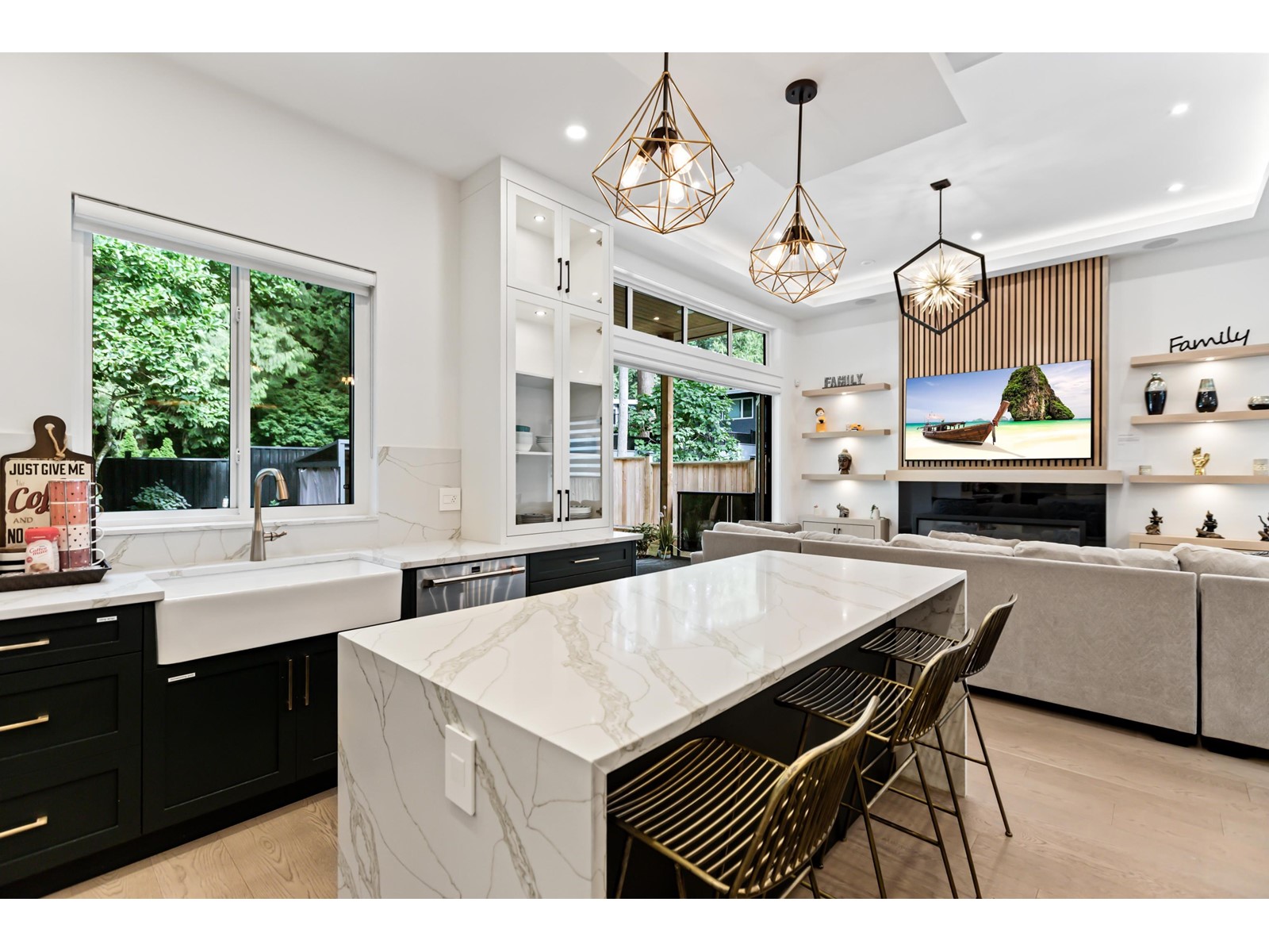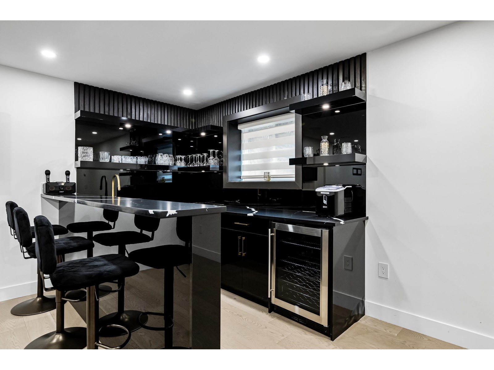 This expansive luxury residence offers over 4,600 sqft of elegant living space, ideally located on a peaceful street with the serenity of a lush forest as your backyard. Start each day surrounded by nature's beauty, while enjoying the convenience of nearby amenities just minutes away. The main level is thoughtfully designed with functionality and comfort in mind, featuring a spacious master bedroom with en-suite, a dedicated home office, and a fully-equipped work kitchen. Upstairs, the primary suite is a private retreat complete with a built-in vanity, a generous walk-in closet, and a spa-like en-suite bathroom that invites relaxation. The lower level is perfect for entertaining or unwinding, boasting a large recreation room with a wet bar and a dedicated theatre room. (id:52823)