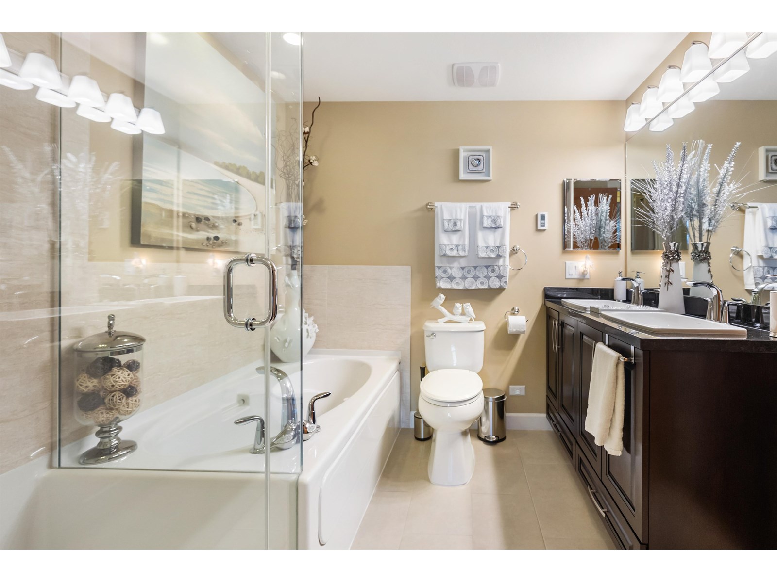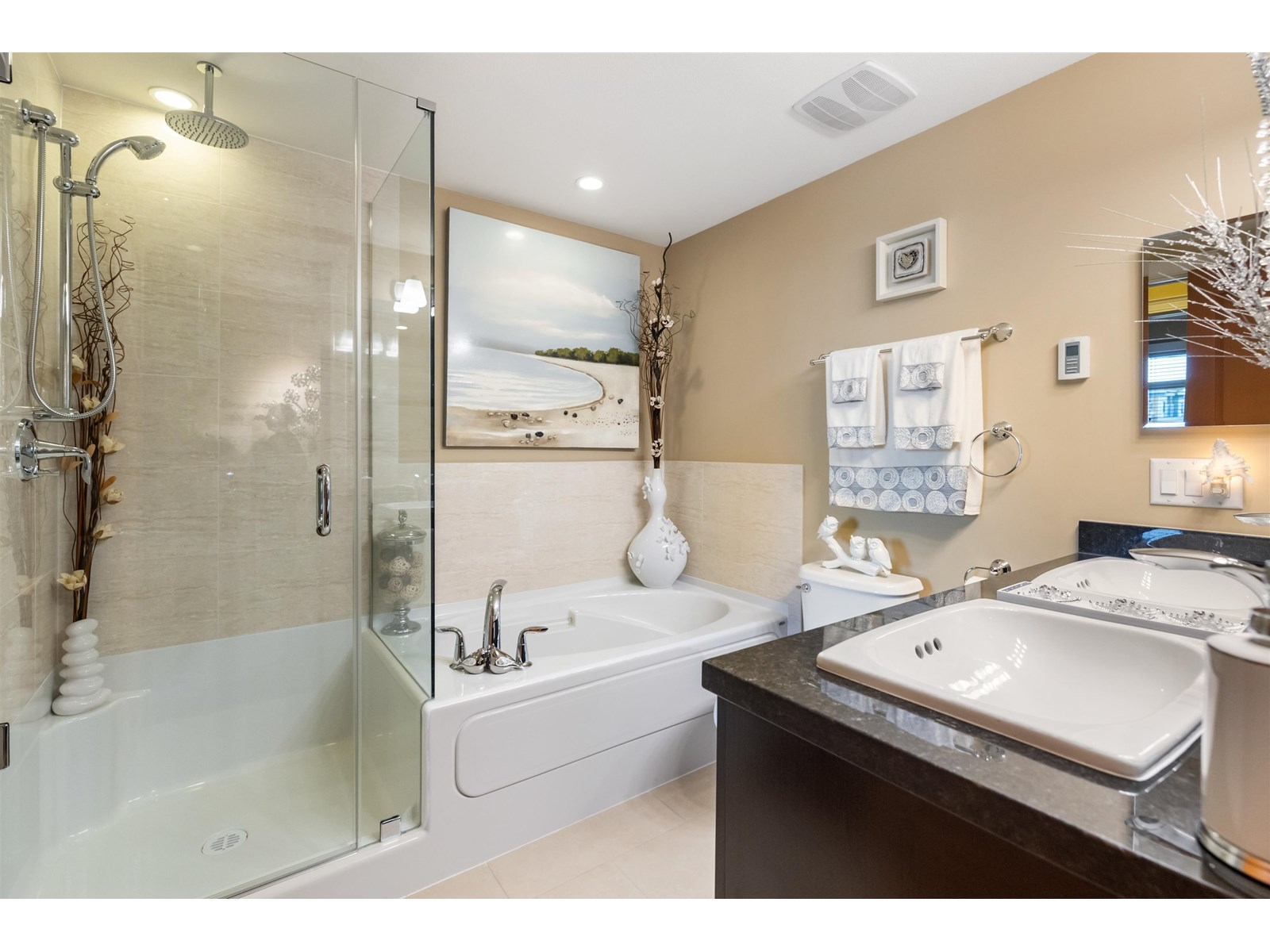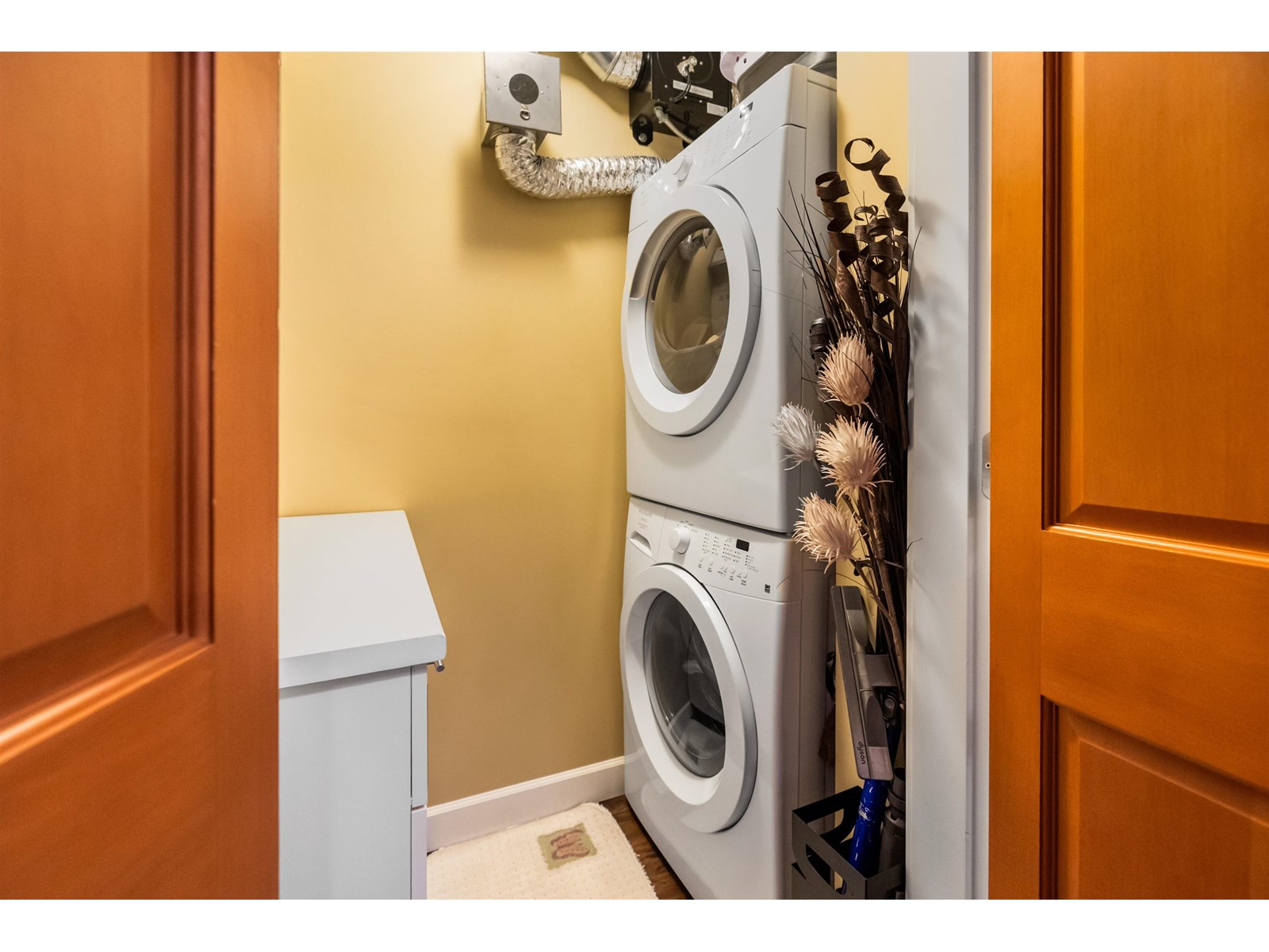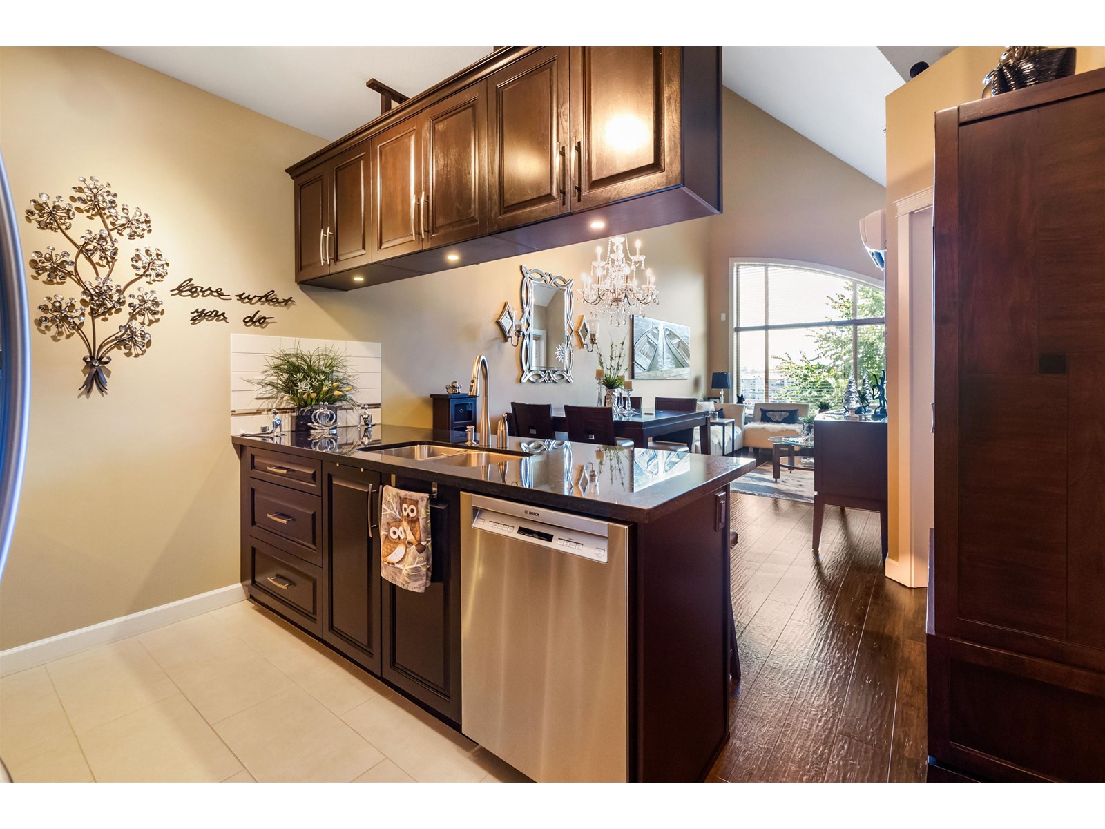 $458.55 MonthlyWALNUT RIDGE AT YORKSON CREEK - RARE PENTHOUSE LOFT UNIT WITH VAULTED CEILINGS AND TWO PRIMARY BEDROOMS. This immaculate unit stands out with Quadra quality interiors, featuring acoustic wood-grained plank laminate, electric fireplace, solid-core fir doors & closets with built-in shelves. Kitchen w/ ample cupboard space, granite tops, under-mount sink and S/S appliances. Heated tile bathroom floors, granite vanity tops and fog-free mirrors. Enjoy your east facing balcony and A/C is included. 2 primary suites to chose from, one on the main floor or one upstairs for privacy. Separate den plus laundry with room, lots of storage! No neighbours above you with this top floor unit. Amazing location - walk to schools, parks & shopping. 2 parking stalls right next to each other. Don't miss it! (id:52823)