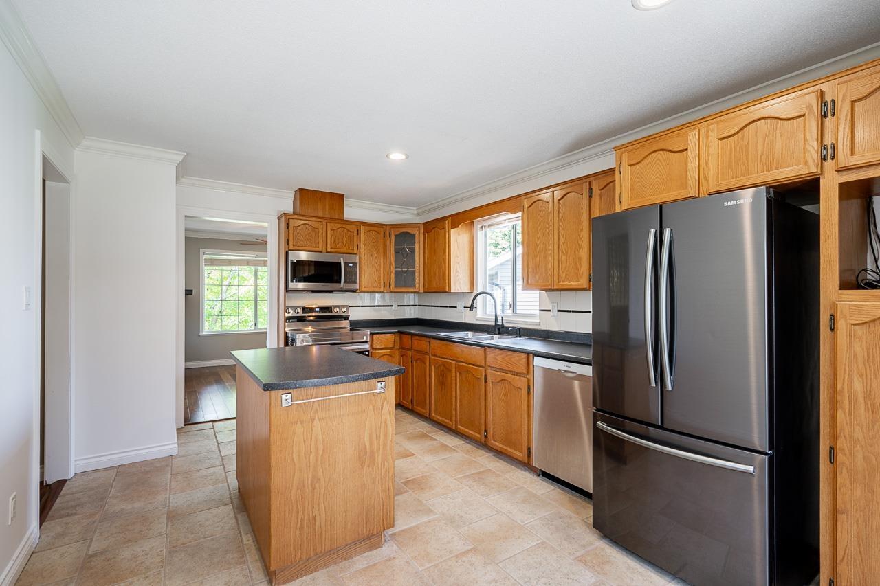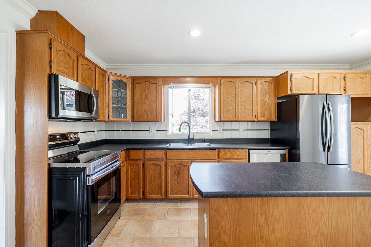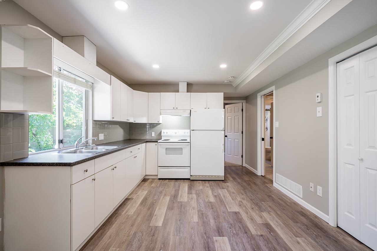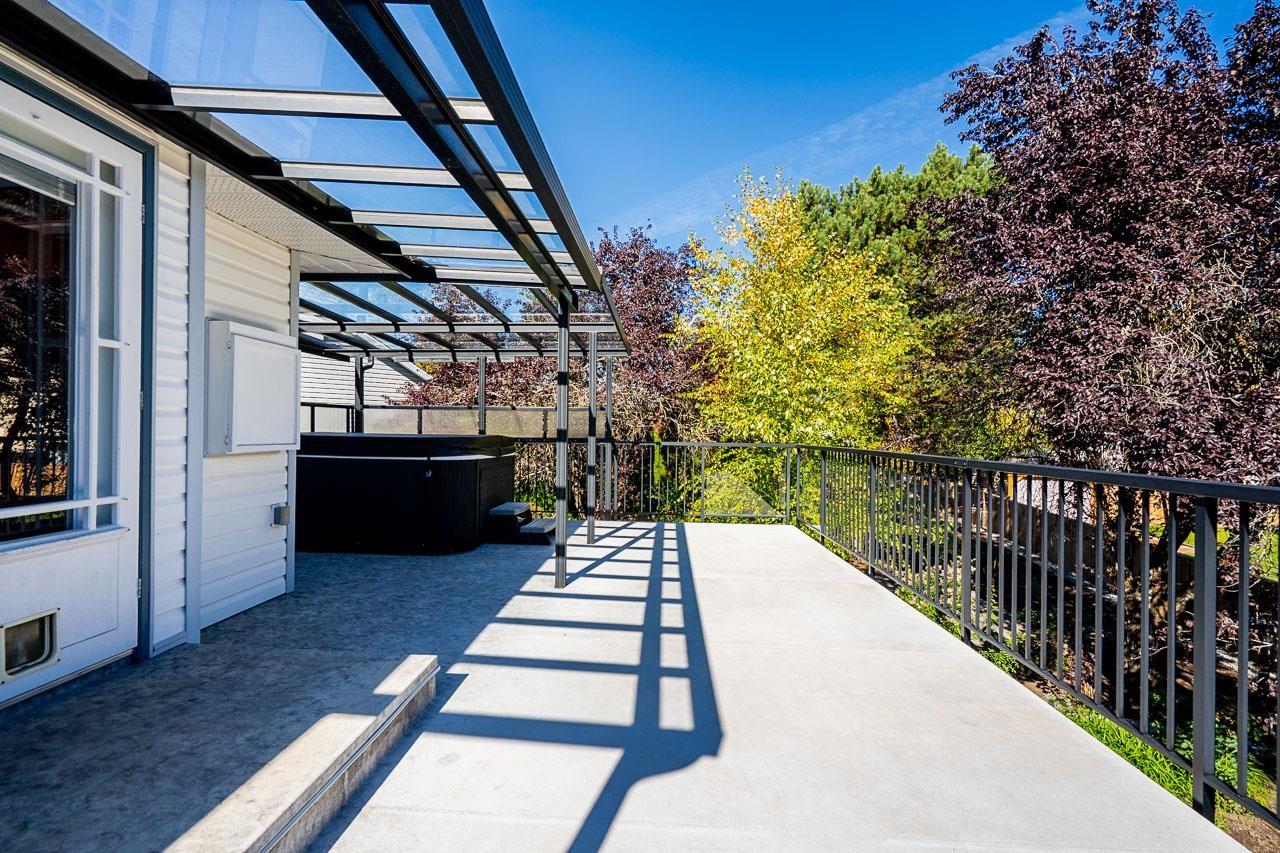 Beautiful basement-entry home in a quiet cul-de-sac with a private backyard! The large foyer welcomes you into this CLEAN, BRIGHT, AND MOVE IN READY home that's been freshly painted and well cared for. The open layout offers three spacious bedrooms upstairs, a bright living area, and an updated bathroom with heated flooring. The kitchen features ample counter and cupboard space, updated appliances, a center island, and a cozy eating area-perfect for everyday living or entertaining. Step outside to enjoy the covered deck with a sunroof and relaxing hot tub area overlooking the landscaped garden with irrigation. Downstairs includes a great 1 BEDROOM SUITE with a separate entrance and its own laundry, plus a den and laundry area for the main home. A well-built garden shed adds extra storage. (id:52823)