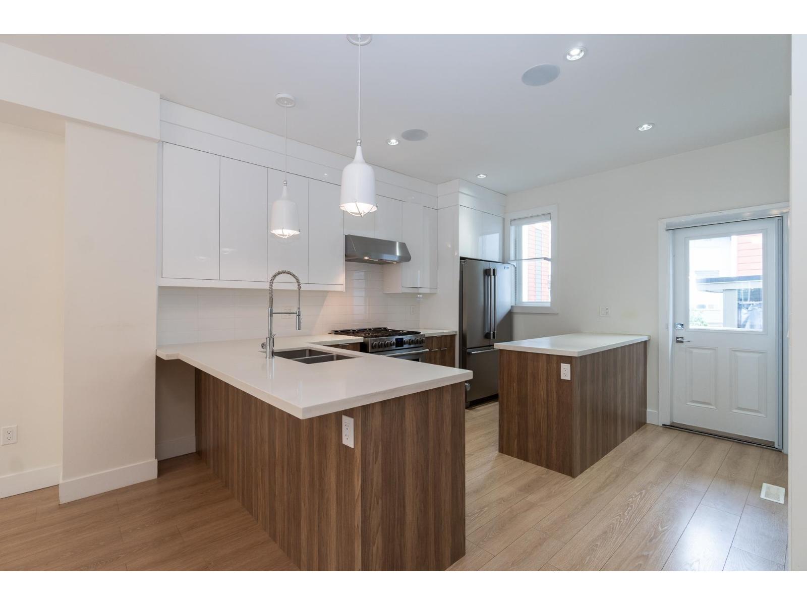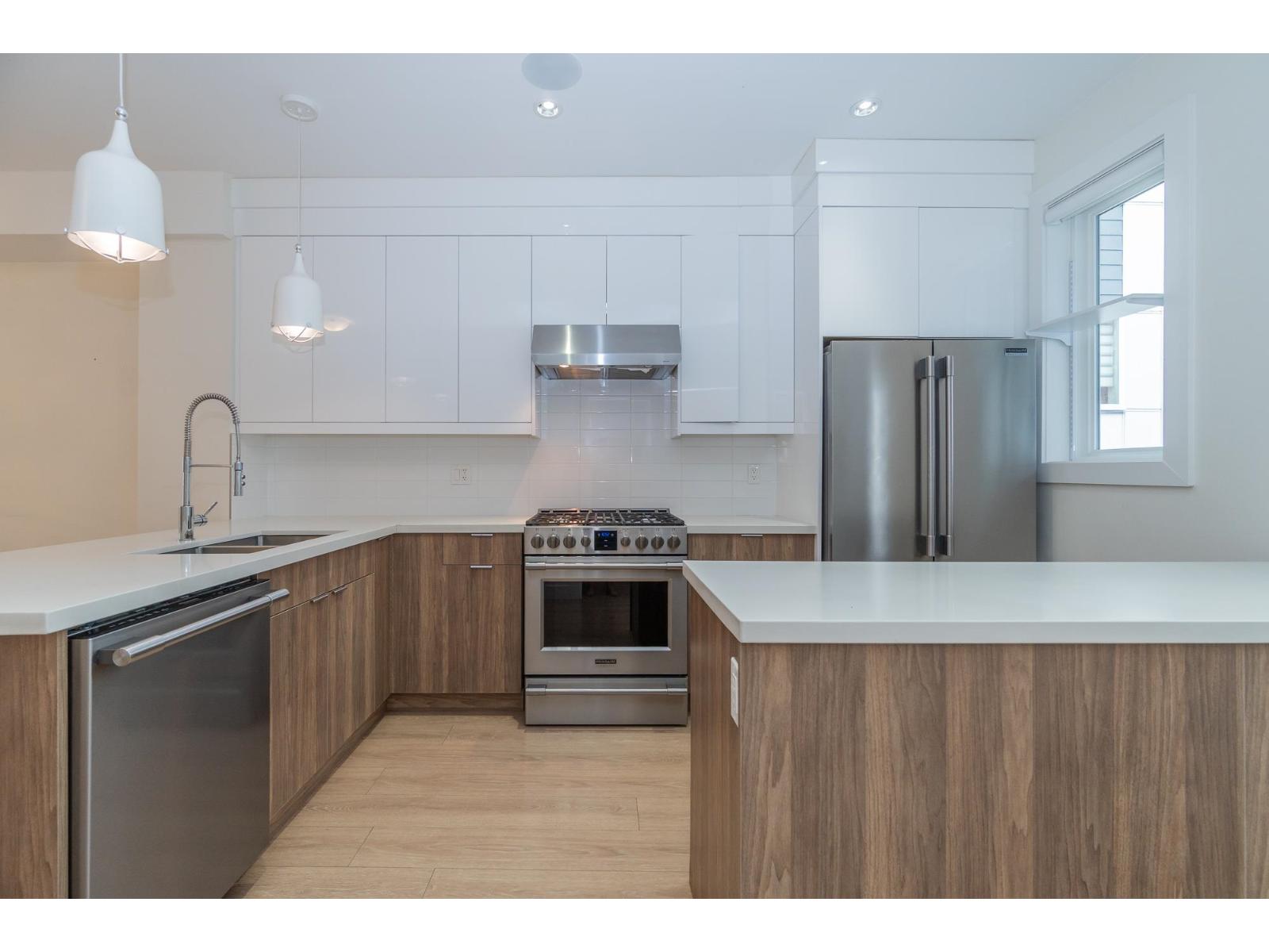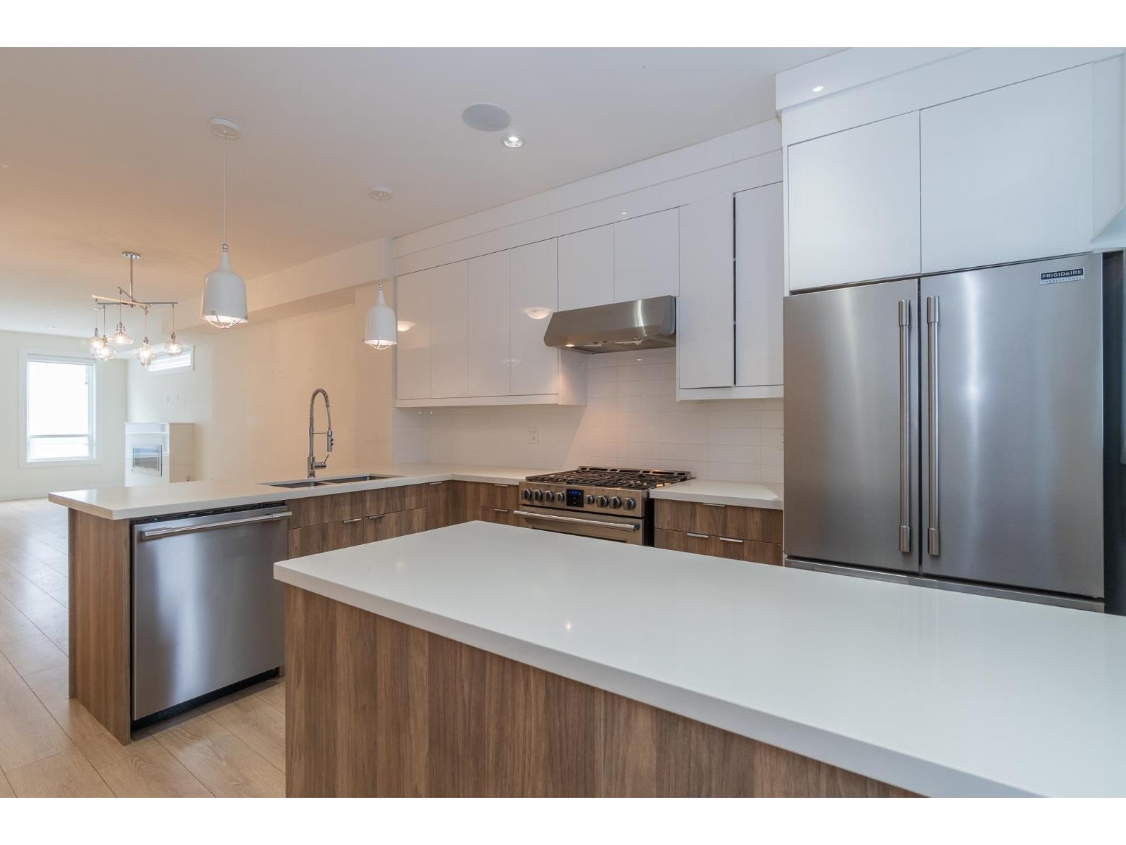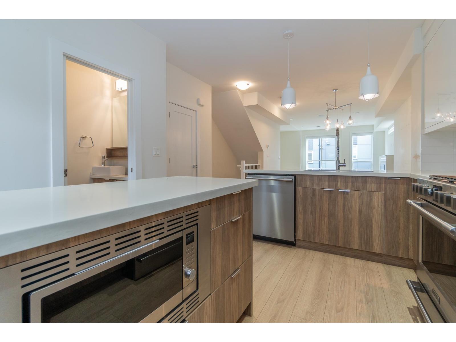 $332.69 Monthly3 Bedroom Corner Unit in ISOLA! Situated in a prime location near the highway and beach and downtown White Rock, This beautifully maintained 3-level home offers 3 bedrooms with timeless design and a bright, open layout. Enjoy 9-foot ceilings, a contemporary kitchen, This unit showcases contemporary upgrades throughout. Features include quartz countertops, stainless steel appliances, a gas range with outdoor hookup, sleek fireplace media unit, and wide-plank laminate flooring. Integrated smart home technology enhances the inviting atmosphere, with comfort features such as A/C and a Control4 speaker system. Equipped for security system installation and central vacuum, this home blends modern style with ultimate convenience. close to South Meridian Elementary and Earl Marriott Secondary (id:52823)