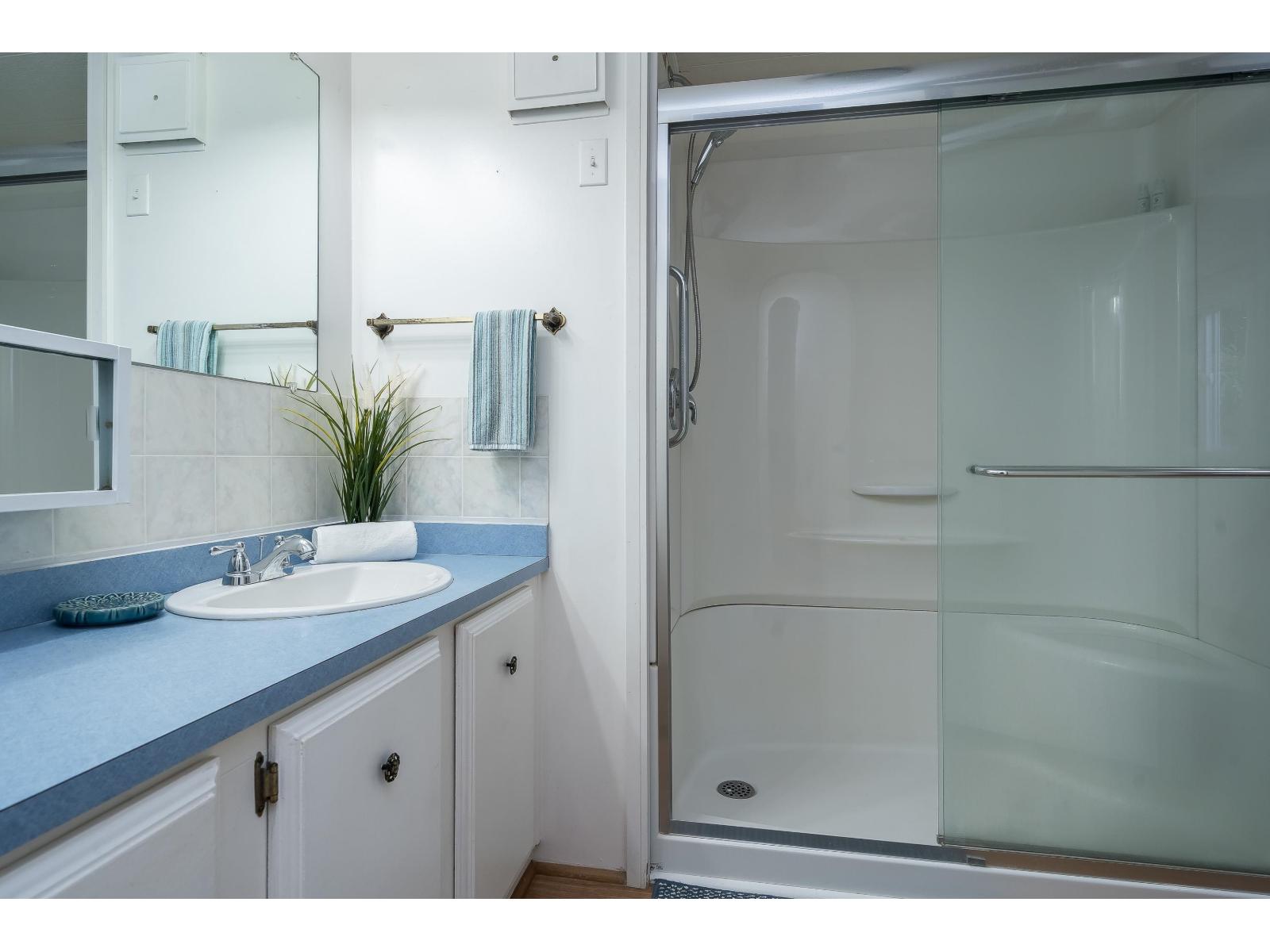 Welcome to Pineridge, Langley's favorite 55+ mobile home park! This well-maintained single-wide with addition is truly move-in ready, featuring updated furnace, windows, roof, kitchen, flooring, and a spacious walk-in shower. With two bedrooms and an open den, there's plenty of space for guests, hobbies, or a home office. The home is bright, inviting, and has a wonderfully comfortable feel throughout. Enjoy the covered sundeck and private yard-perfect for gardening, relaxing, or entertaining. Plus, you'll appreciate the convenience of three parking spots and an on-site storage shed. Come see why Pineridge is such a sought-after community! (id:52823)