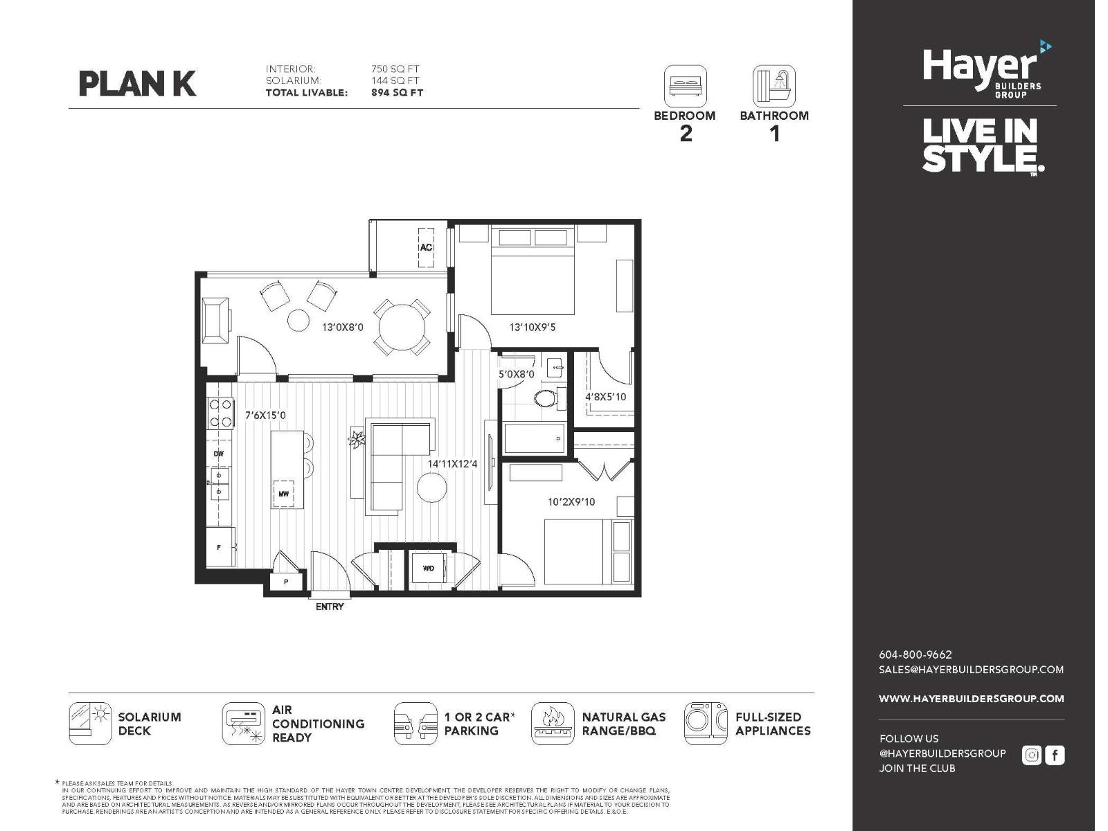 $310.60 MonthlyAssignment of contract - Top floor 2 bed 1 bath home at Hayer Town Centre completing Oct/Nov 2025. 750 sqft interior + 144 sqft solarium = 894 sqft total. Features expansive windows, open concept living, gourmet kitchen with quartz counters & premium appliances, two spacious bedrooms, full bath & a versatile solarium that can open like a balcony or enclosed for year round use. Includes 2 parking stalls & storage. Located in Langley's most anticipated master-planned community with future retail, dining & amenities at your doorsteps. (id:52823)
