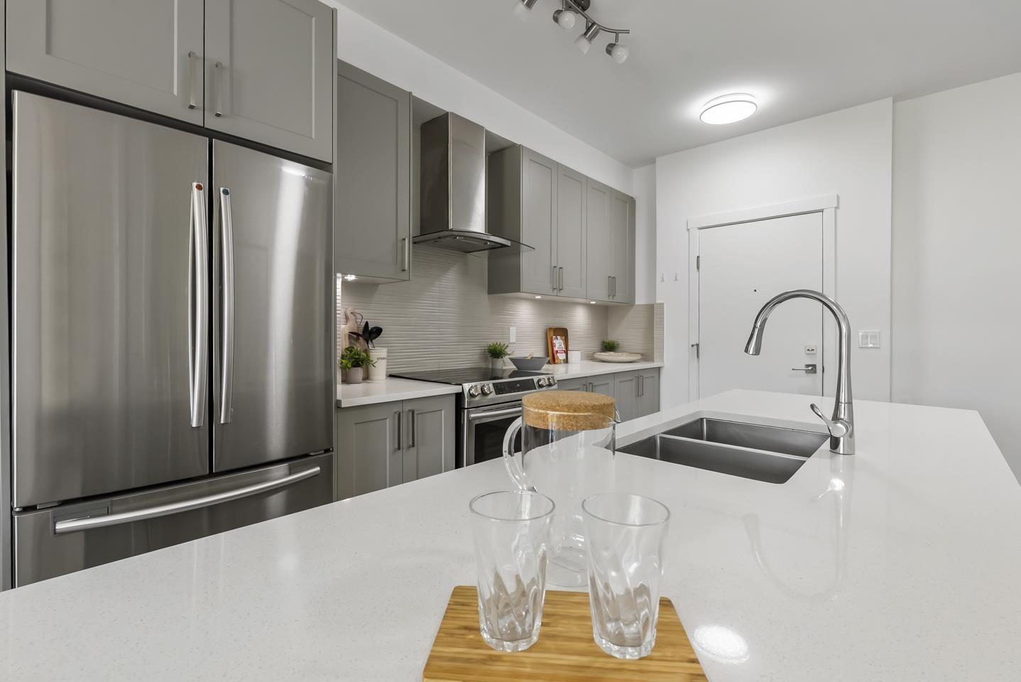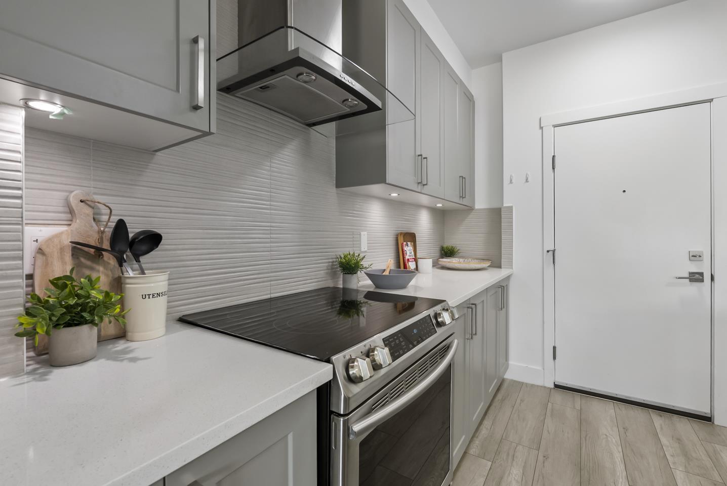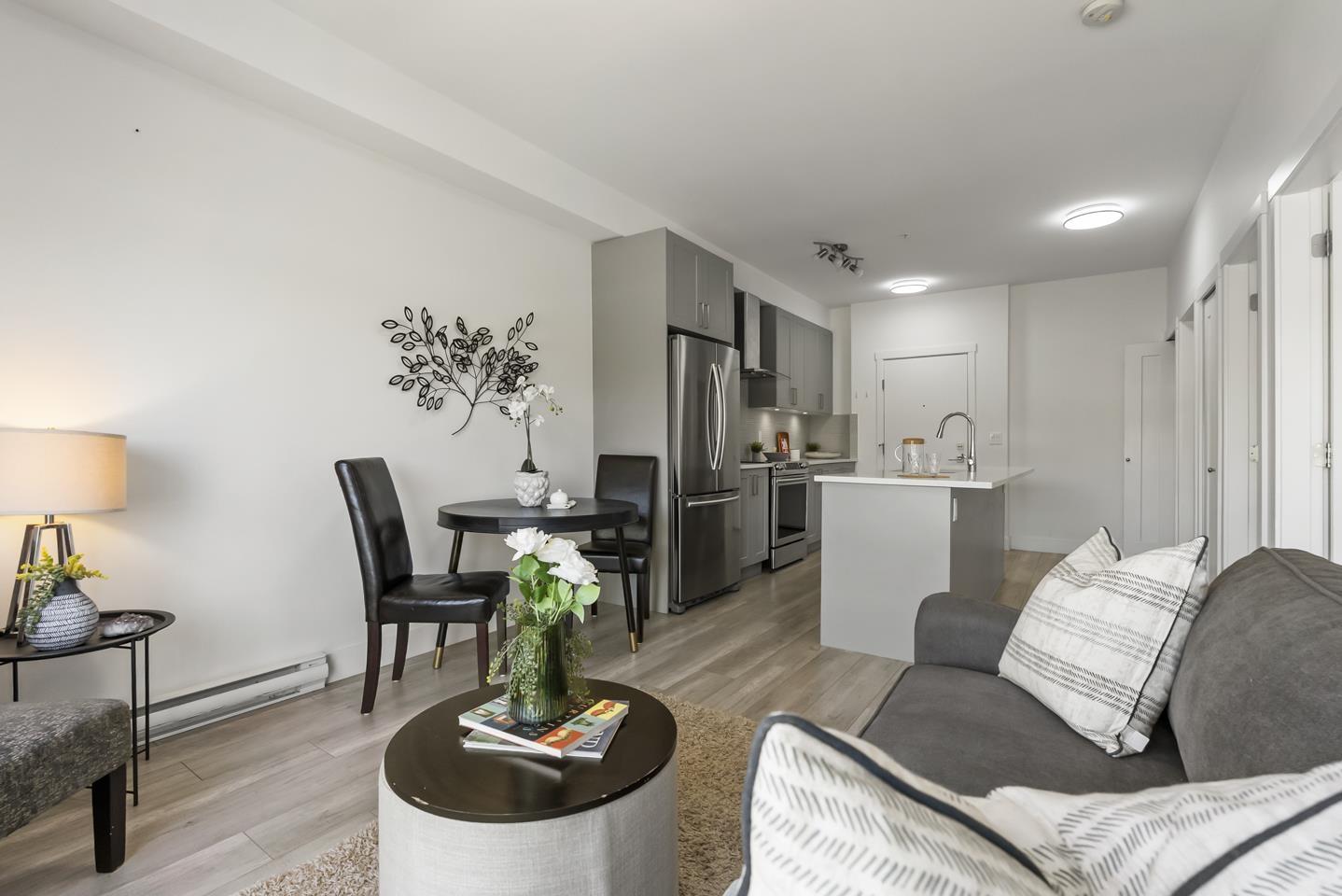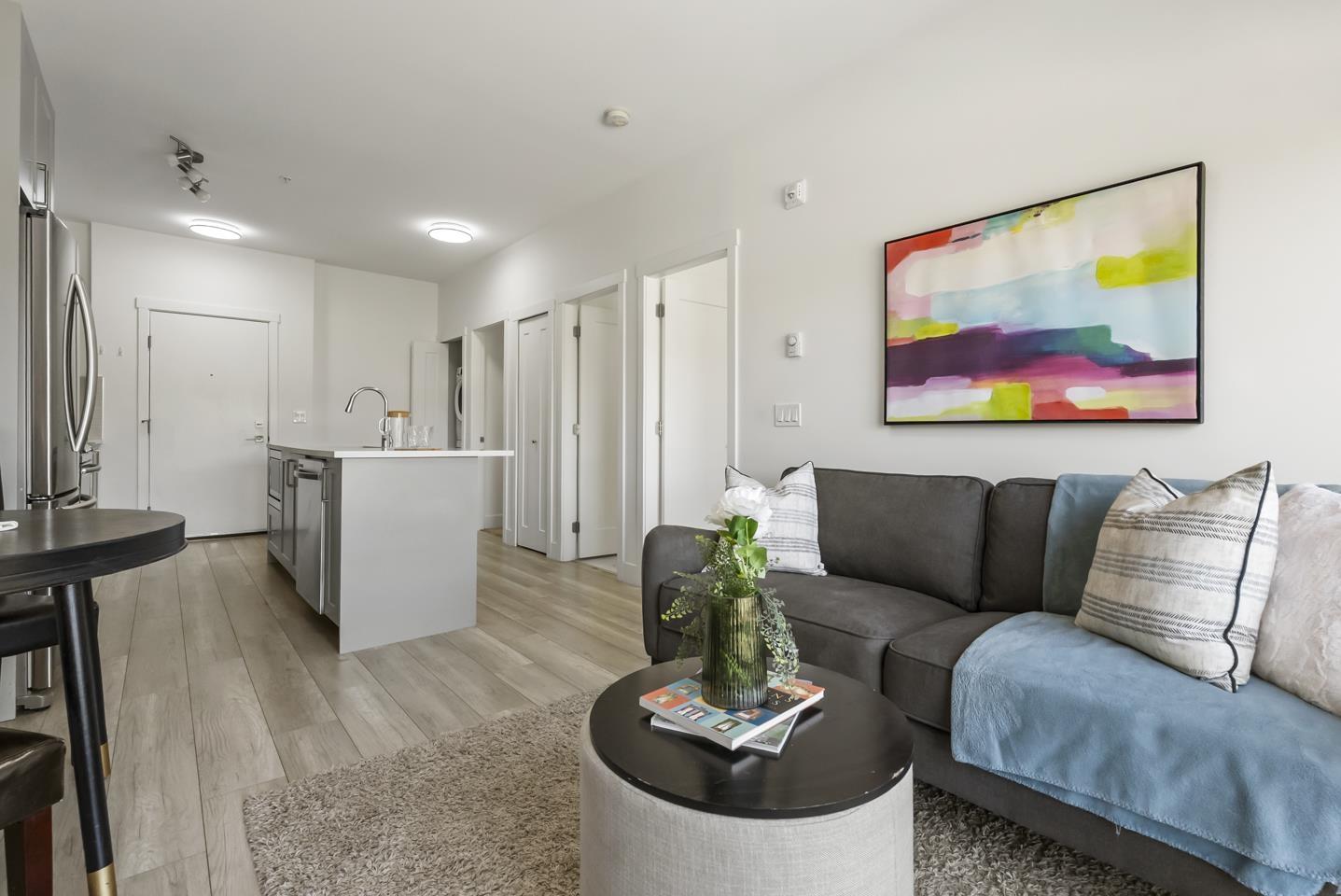 $360.33 MonthlyWelcome to Fraser Landmark! This modern 1 bed + junior bedroom condo unit offers 620 SF of bright, functional living just 1 minute from the future SkyTrain. It features an open layout with light-toned wood-look flooring, a sleek kitchen with quartz countertops, stainless steel appliances, and a large island. The spacious 130 SF primary bedroom has built-in closets, while the marble-inspired bath includes a glass-enclosed tub/shower. Large windows flood the space with natural light and urban views. Enjoy the outdoors on your private balcony. Bonus: 2 parking spots included! Located near shopping, dining, transit, and parks-urban living meets unbeatable convenience. (id:52823)