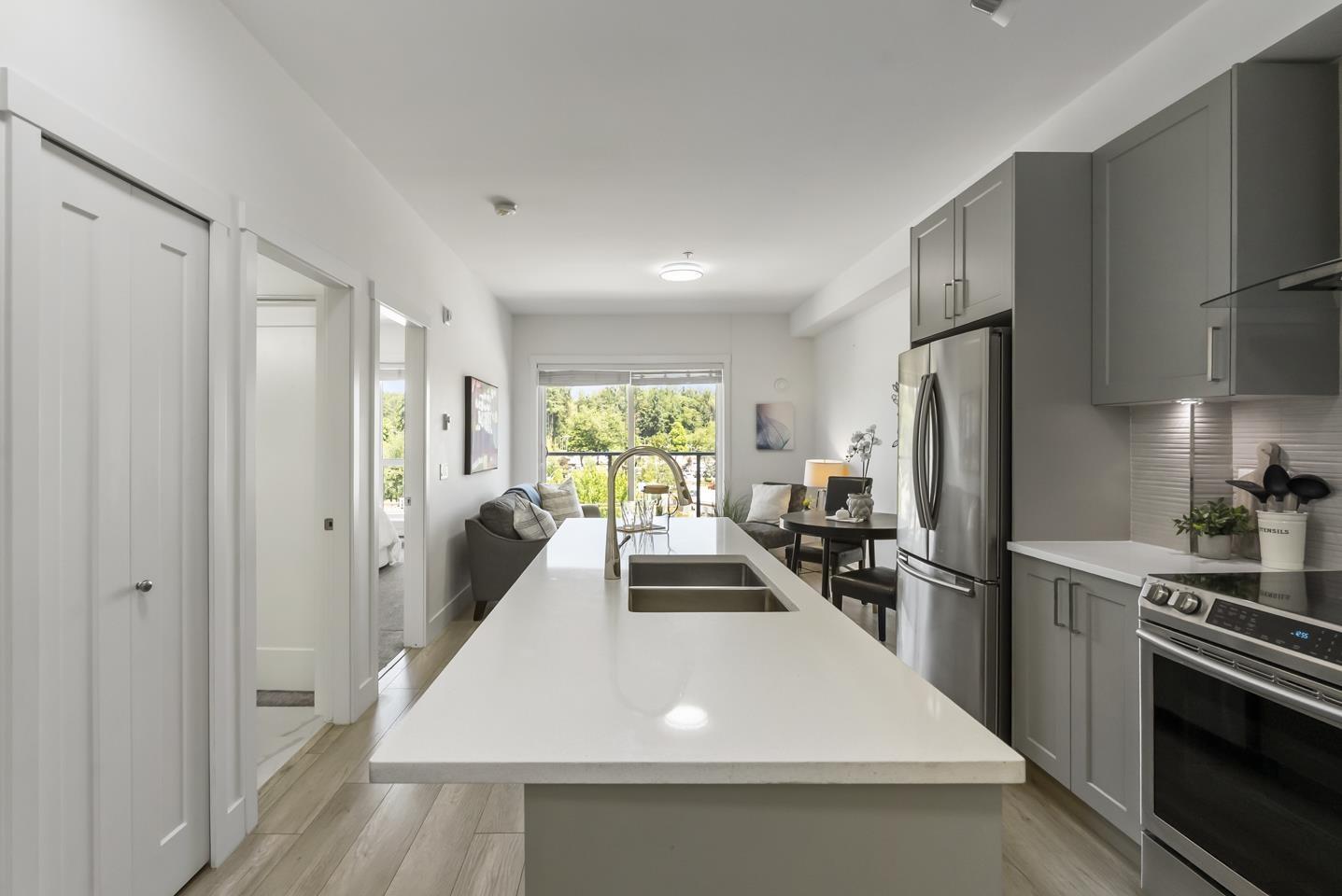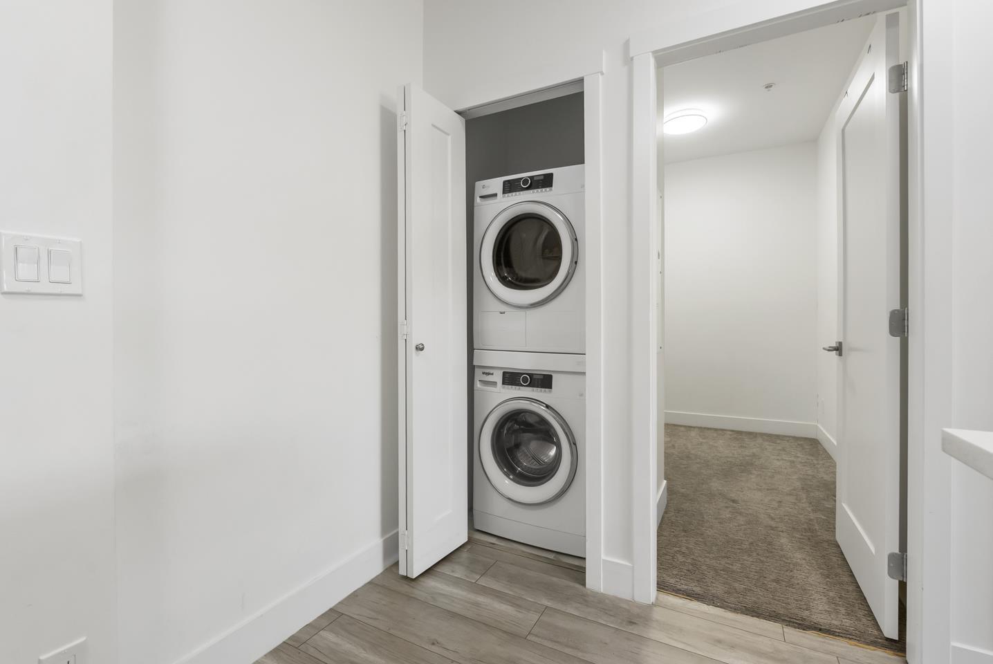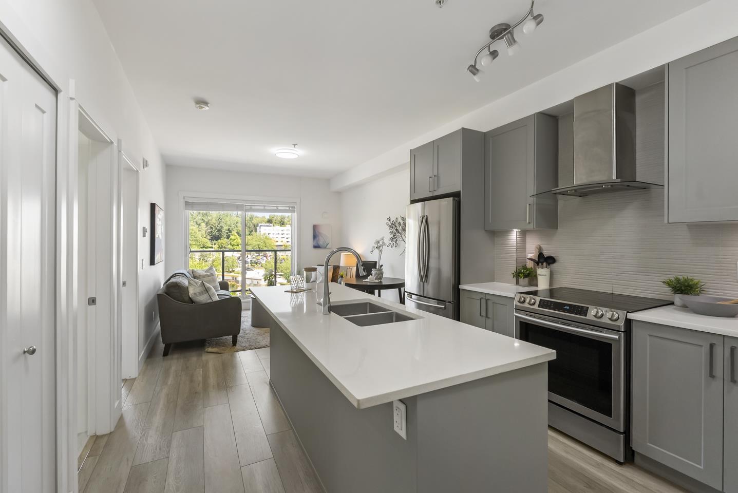 $360.33 MonthlyWelcome to Fraser Landmark! This modern 1 bed + junior bedroom condo unit offers 620 SF of bright, functional living just 1 minute from the future SkyTrain. It features an open layout with light-toned wood-look flooring, a sleek kitchen with quartz countertops, stainless steel appliances, and a large island. The spacious 130 SF primary bedroom has built-in closets, while the marble-inspired bath includes a glass-enclosed tub/shower. Large windows flood the space with natural light and urban views. Enjoy the outdoors on your private balcony. Bonus: 2 parking spots included! Located near shopping, dining, transit, and parks-urban living meets unbeatable convenience. (id:52823)