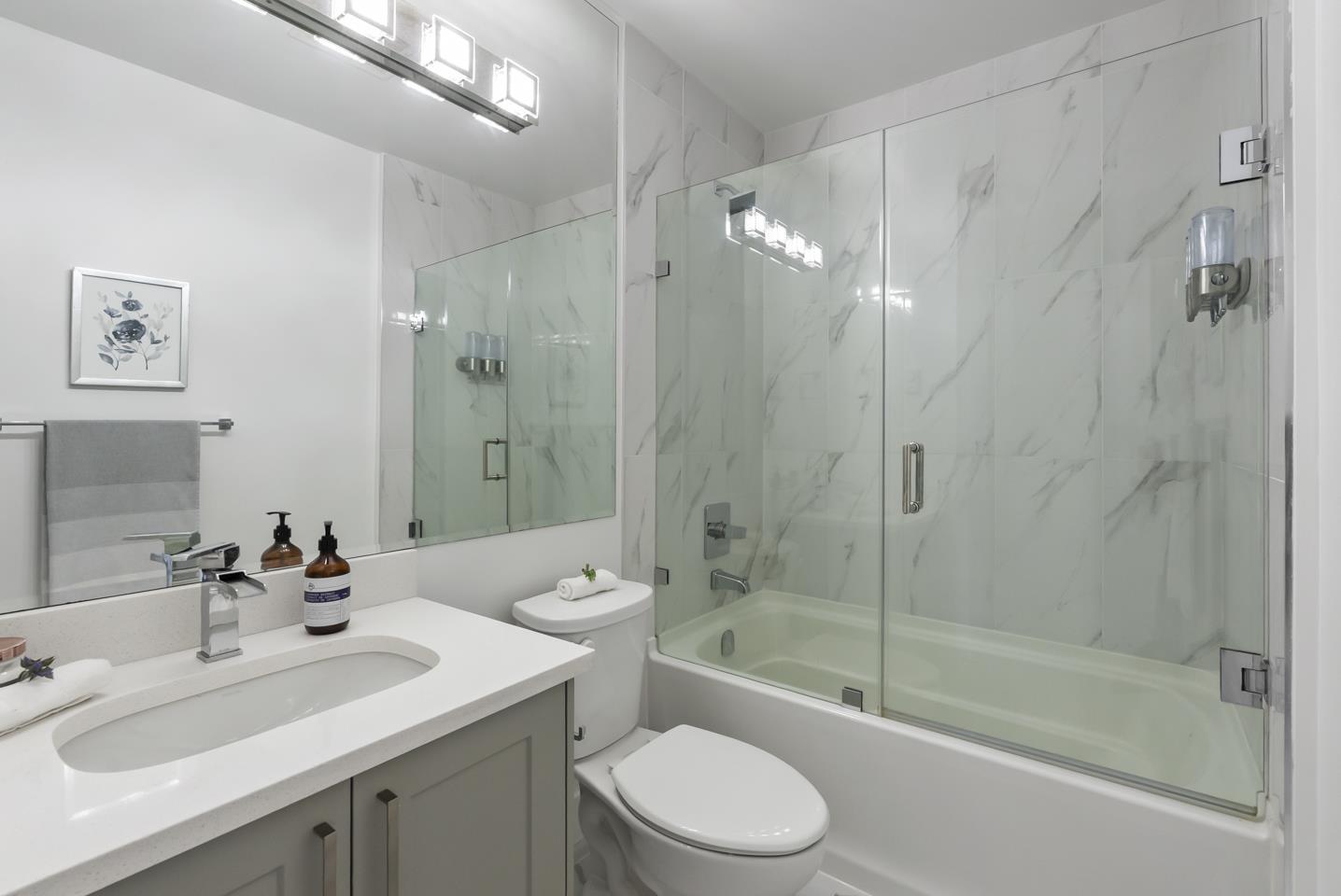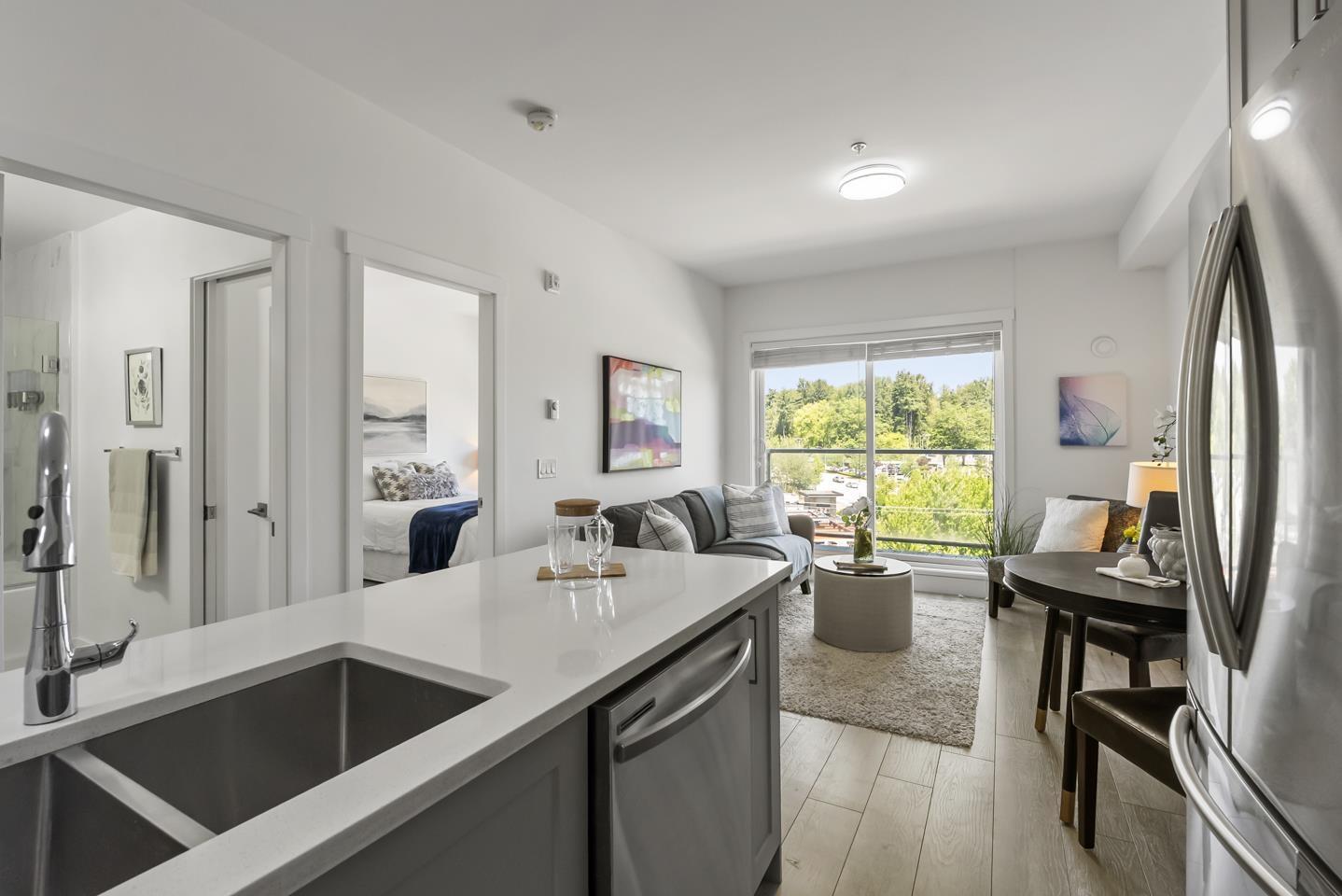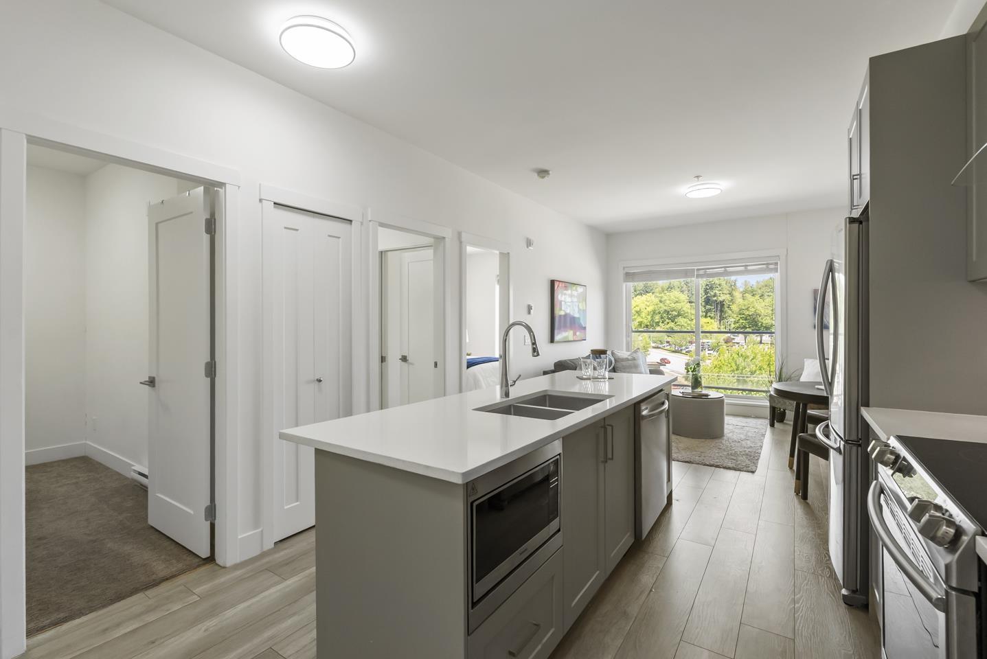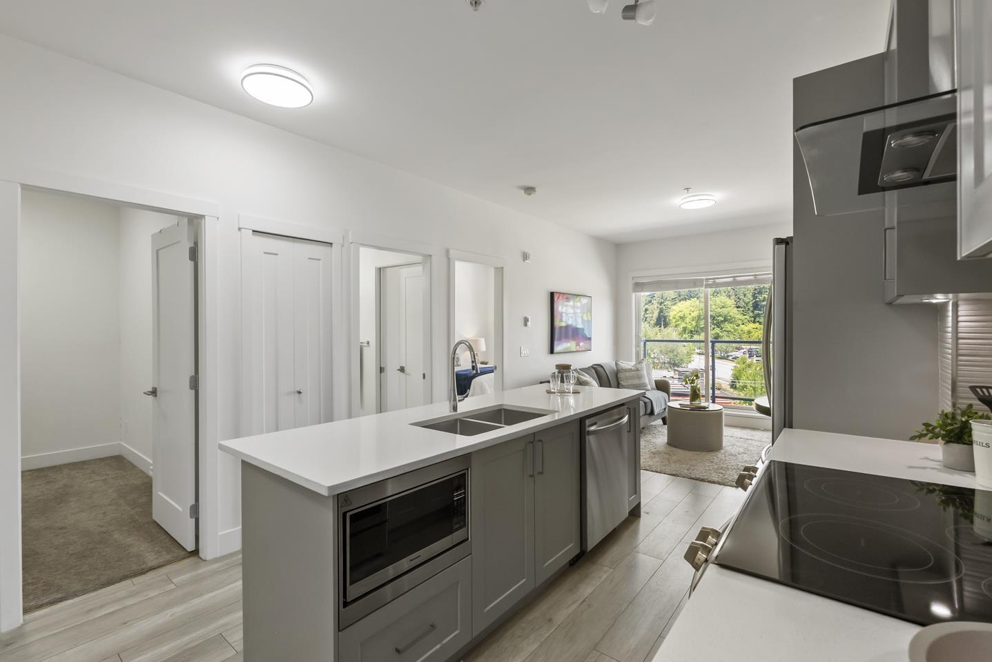 $360.33 MonthlyWelcome to Fraser Landmark! This modern 1 bed + junior bedroom condo unit offers 620 SF of bright, functional living just 1 minute from the future SkyTrain. It features an open layout with light-toned wood-look flooring, a sleek kitchen with quartz countertops, stainless steel appliances, and a large island. The spacious 130 SF primary bedroom has built-in closets, while the marble-inspired bath includes a glass-enclosed tub/shower. Large windows flood the space with natural light and urban views. Enjoy the outdoors on your private balcony. Bonus: 2 parking spots included! Located near shopping, dining, transit, and parks-urban living meets unbeatable convenience. (id:52823)