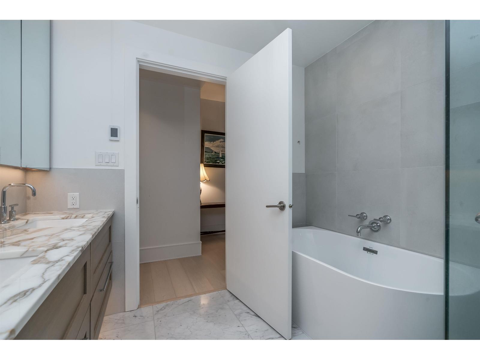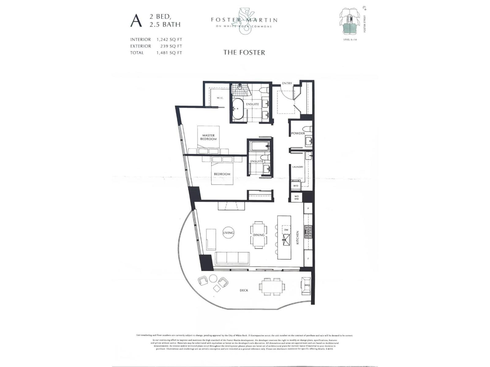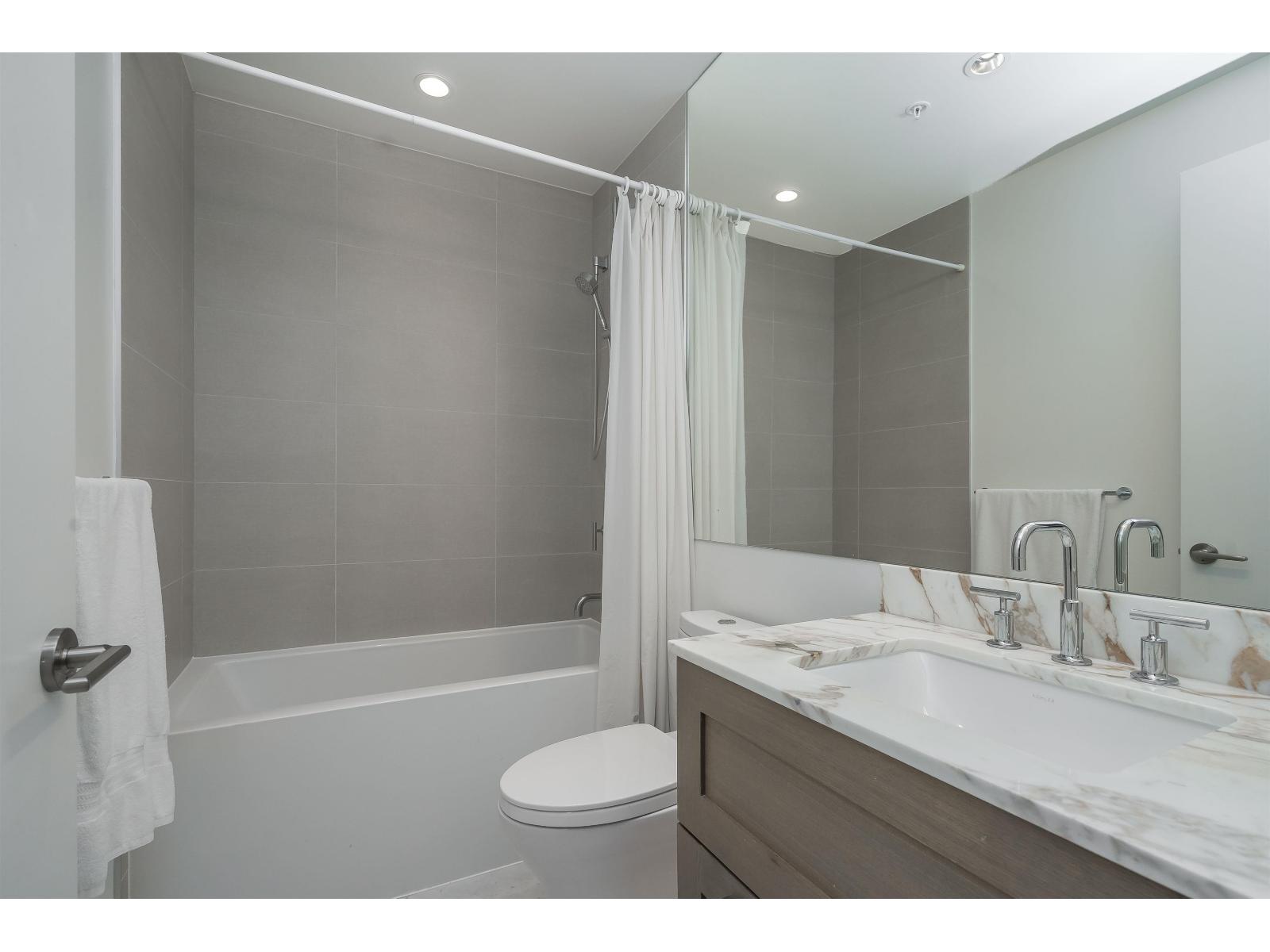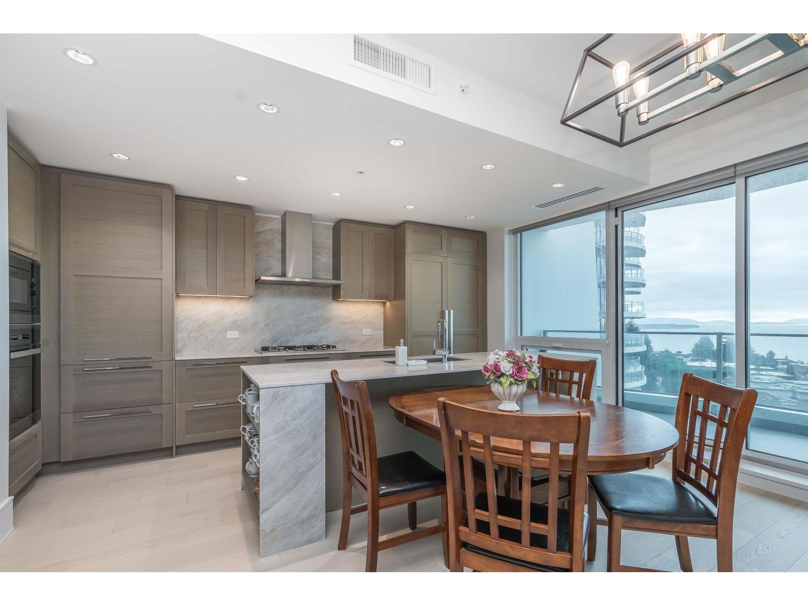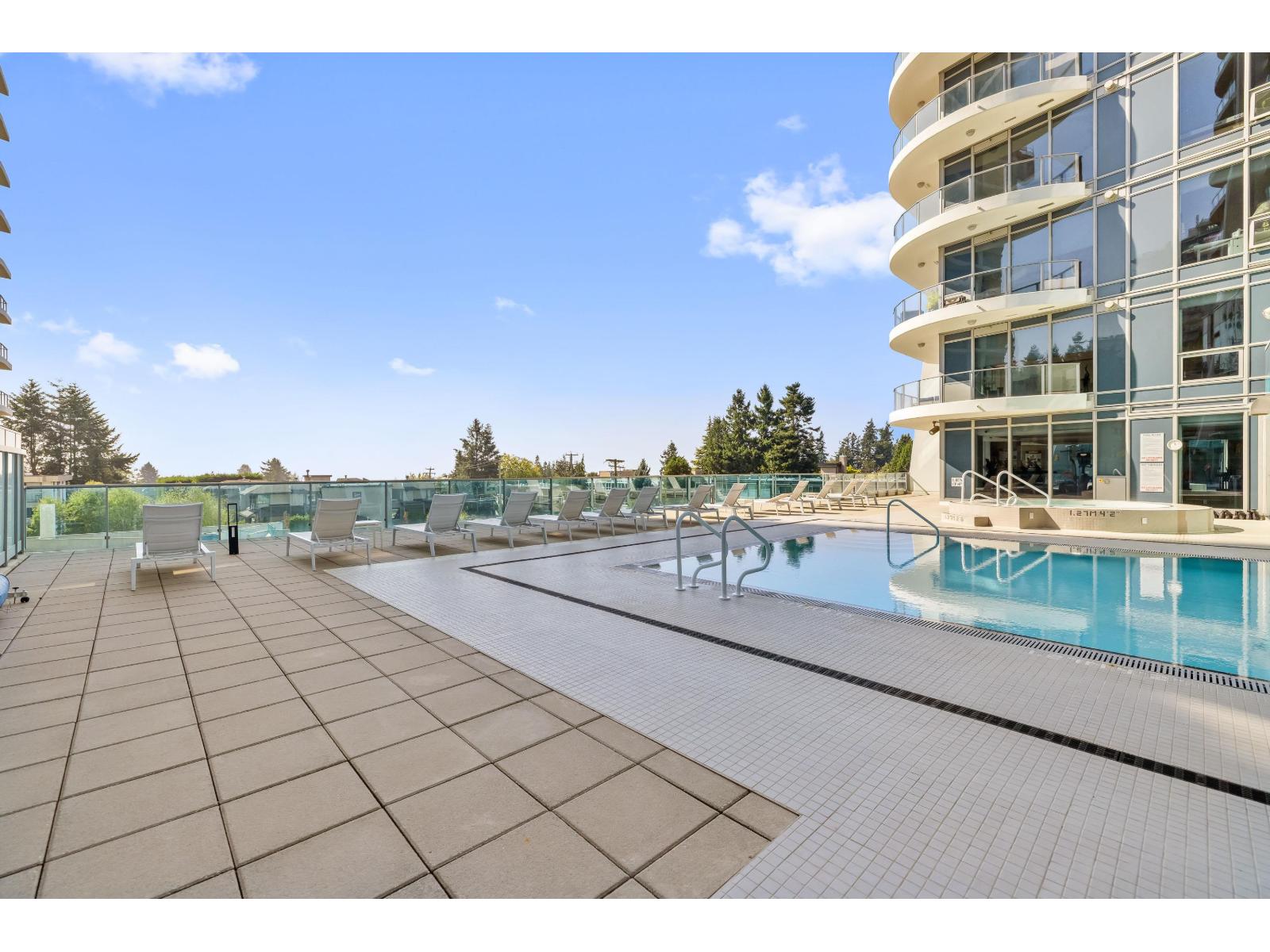 $793.42 MonthlyMarvel at the panoramic southwest OCEAN VIEWS and stunning sunsets from this 1242sf luxury condominium at Foster Martin on White Rock Commons. Enjoy the building's best directional view from the large wrap-around balcony! Both bedrooms include private ensuites, while the primary suite offers double-vanity and walk-in closet. Thoughtfully designed chef's kitchen features premium Miele appliance package. Foyer, powder room, plus laundry room with rare folding counter and sink. Enjoy concierge service and exclusive access to the 10,000sf Health & Wellness Centre, including indoor AND outdoor pools, sauna, fitness centre and more. Comes with storage unit and TWO parking stalls. Unbeatable location, steps from the shops at Semiahmoo Mall. White Rock Elementary & Semiahmoo Secondary catchments. (id:52823)