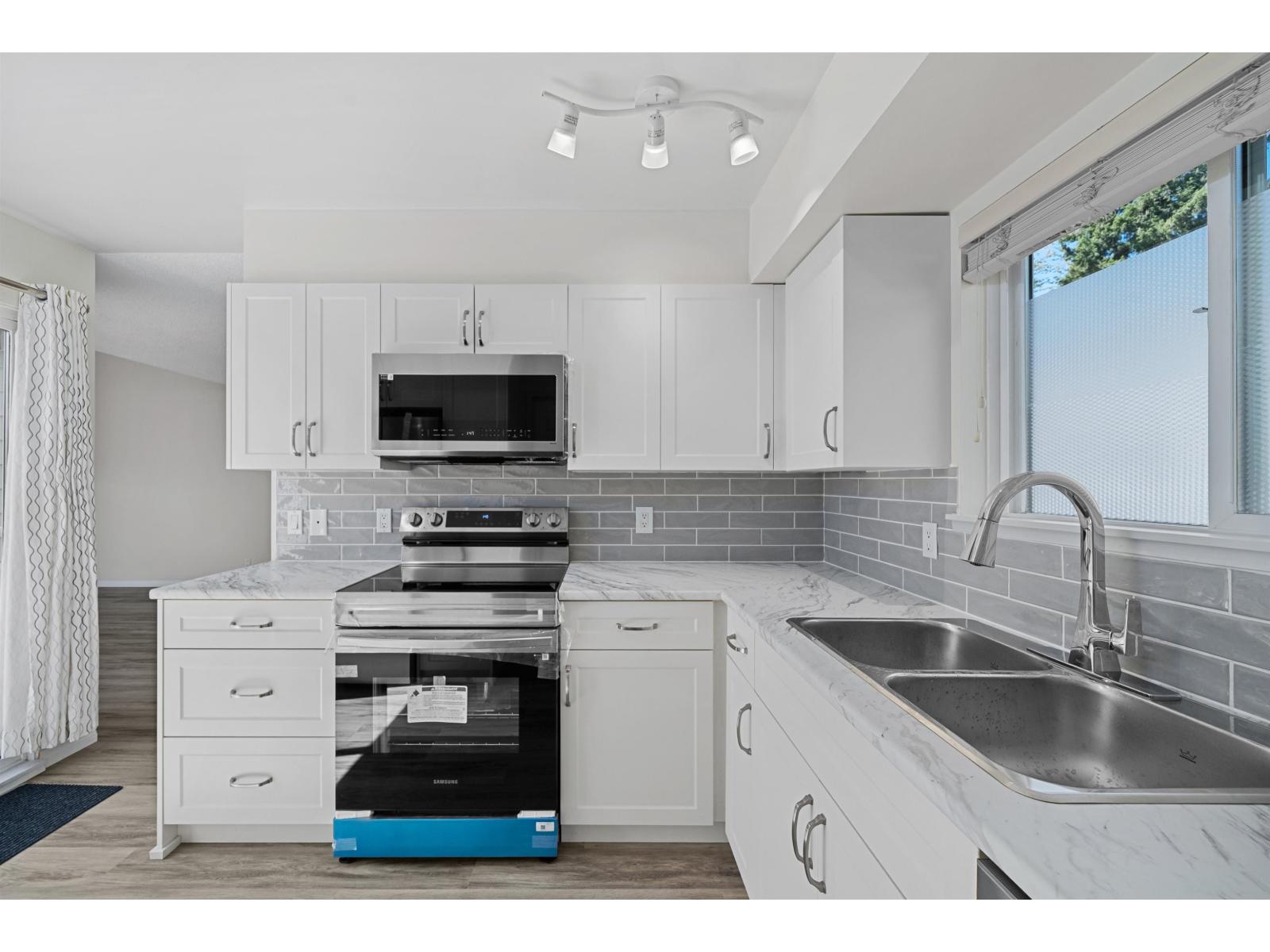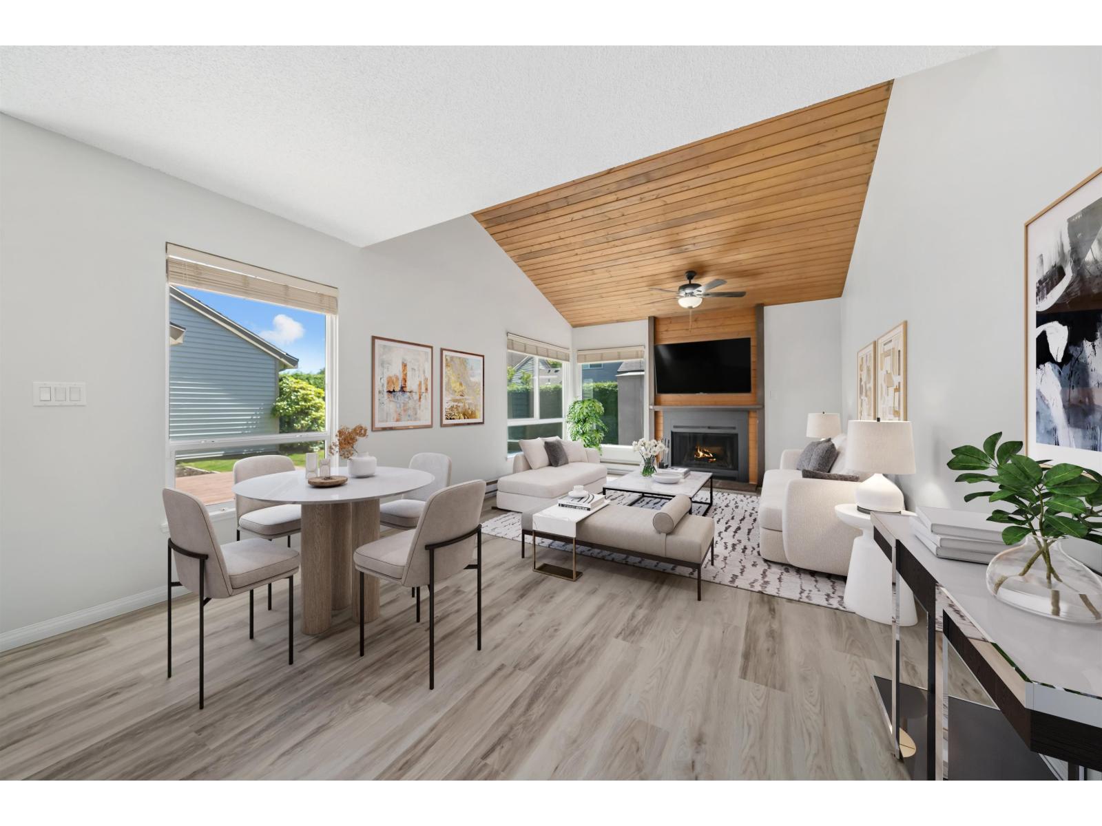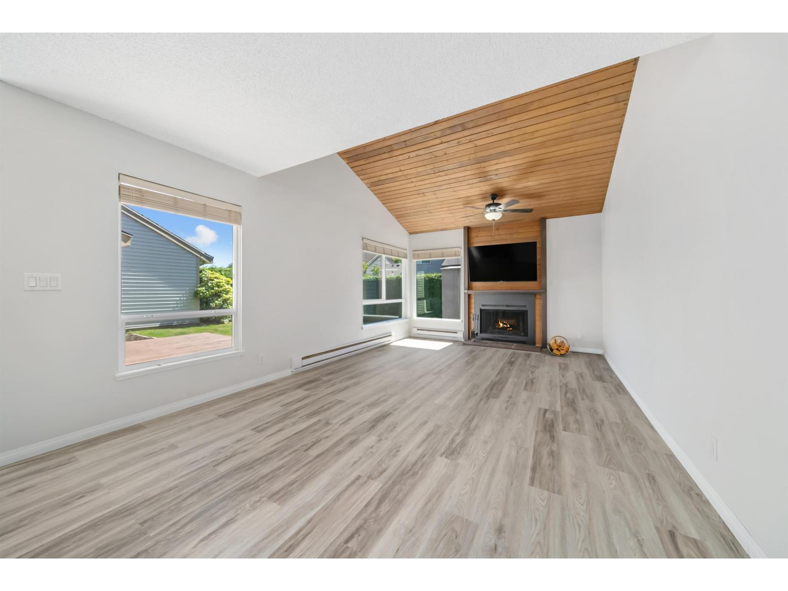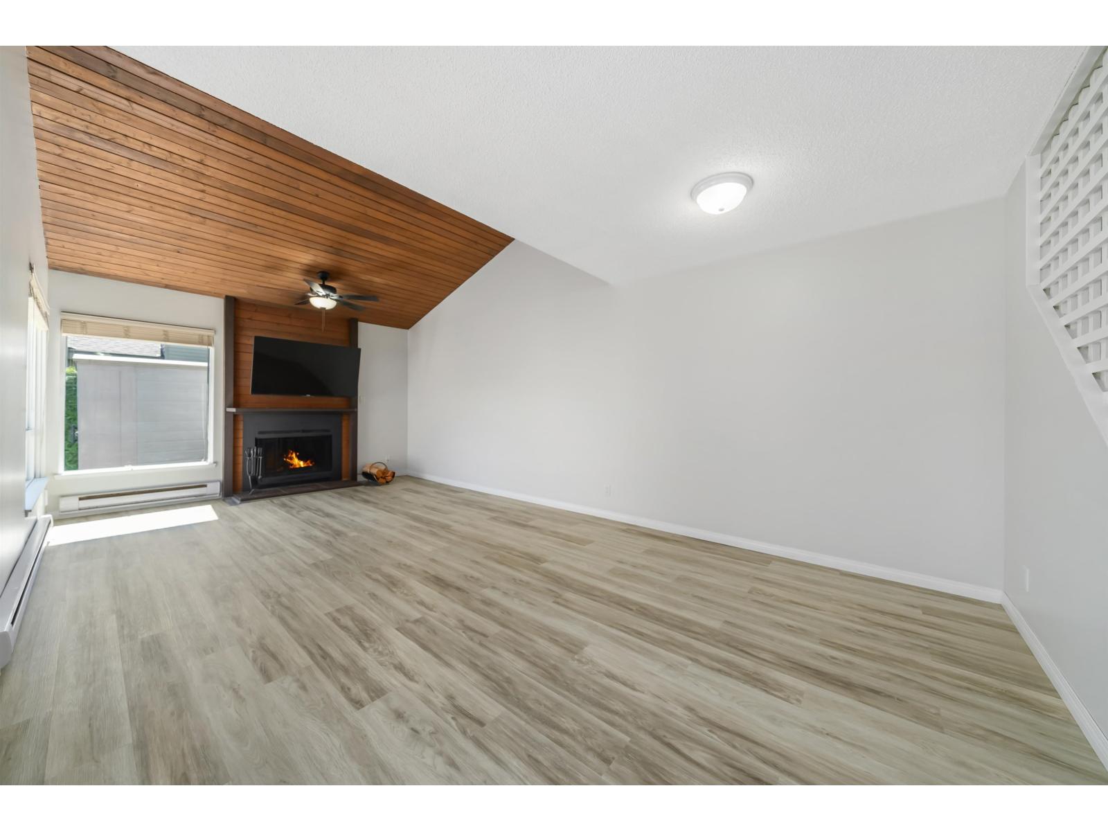 $383 MonthlyStep inside this GORGEOUSLY updated 2 bed 1 bath 1,005sqft townhome w/MASSIVE backyard located in the desirable GREENSIDE ESTATES! Vaulted ceilings in the open concept living / dining room let the natural light pour in while the WOOD burning fireplace gives you the homey, cozy feeling. Updated kitchen w/TONS of storage, countertop space & Brand New Appliances! Newly installed laminate flooring, fresh paint throughout, Outdoor living is a 10/10 Huge Private yard & over 200 sq/ft of deck space, generous sized rooms, WIC in main bed,4 piece bath, new hot water tank(3 years)& recently renovated clubhouse W/GYM, pool & Basketball Court! Great amenities but still low strata fee of $383/month! Click "VIRTUAL TOUR" link for more info, photos, videos & 3D floorplan! OPEN HOUSE SAT OCT 4th 1pm-3pm (id:52823)