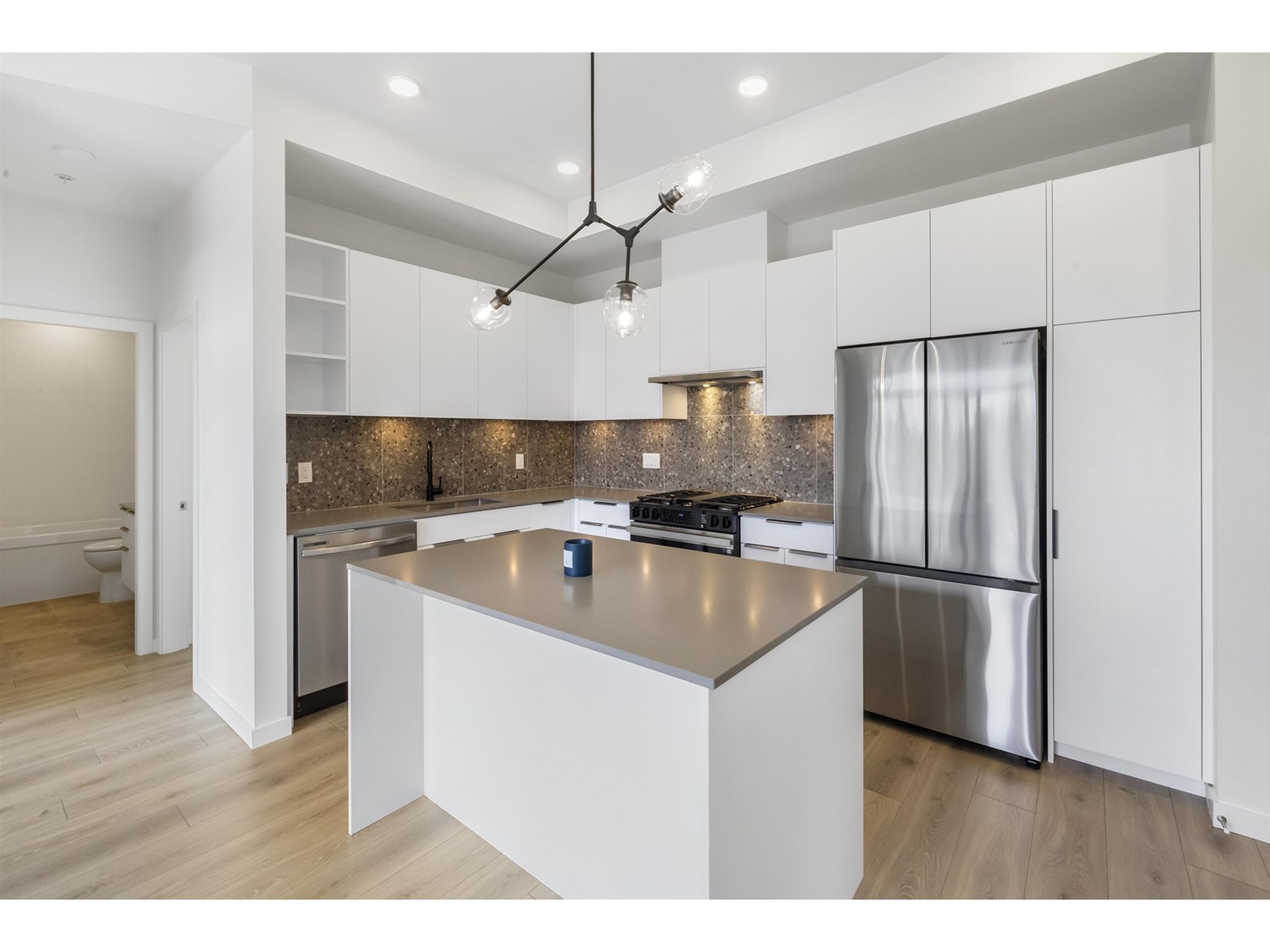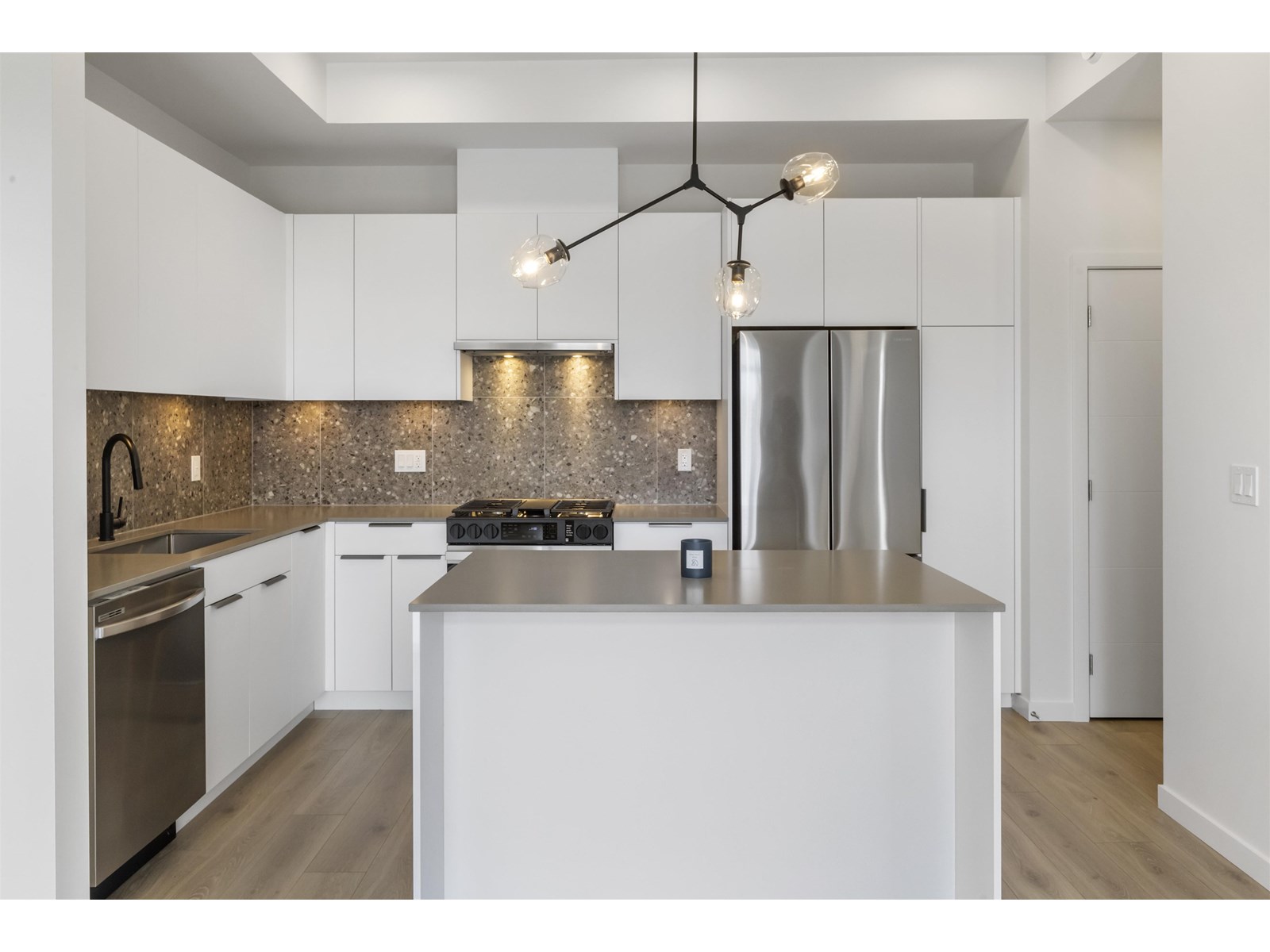 $327.86 MonthlyStunning brand-new 3 BEDROOM CORNER UNIT PENTHOUSE at Hive 2, built by award-winning Apcon Group. Ideally located in Willoughby Town Centre near dining, shops, the Indoor Tennis Centre, and an elementary school. Amenities include a fitness centre, party room, co-working space, and outdoor BBQ area. This inspired, modern home features high-end finishes and a smart, open design. Wide plank flooring throughout with sleek tile in the bathrooms. Contemporary roller blinds, full-size in-suite laundry, functional kitchen with stainless steel appliances, gas range, and full-size fridge. 2 stylish bathrooms with undermount sinks and designer fixtures. Includes 2/5/10 new home warranty, 2 parking stalls (1 EV-ready), 1 storage locker, and 1 bike locker. GREAT VALUE! (id:52823)