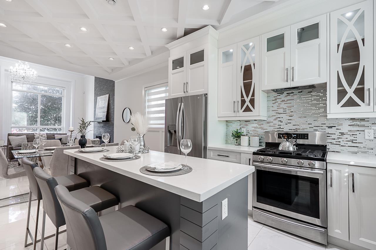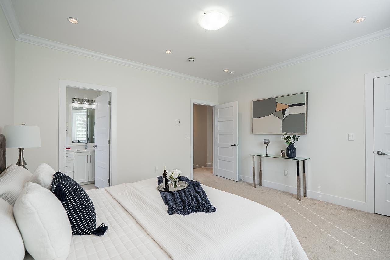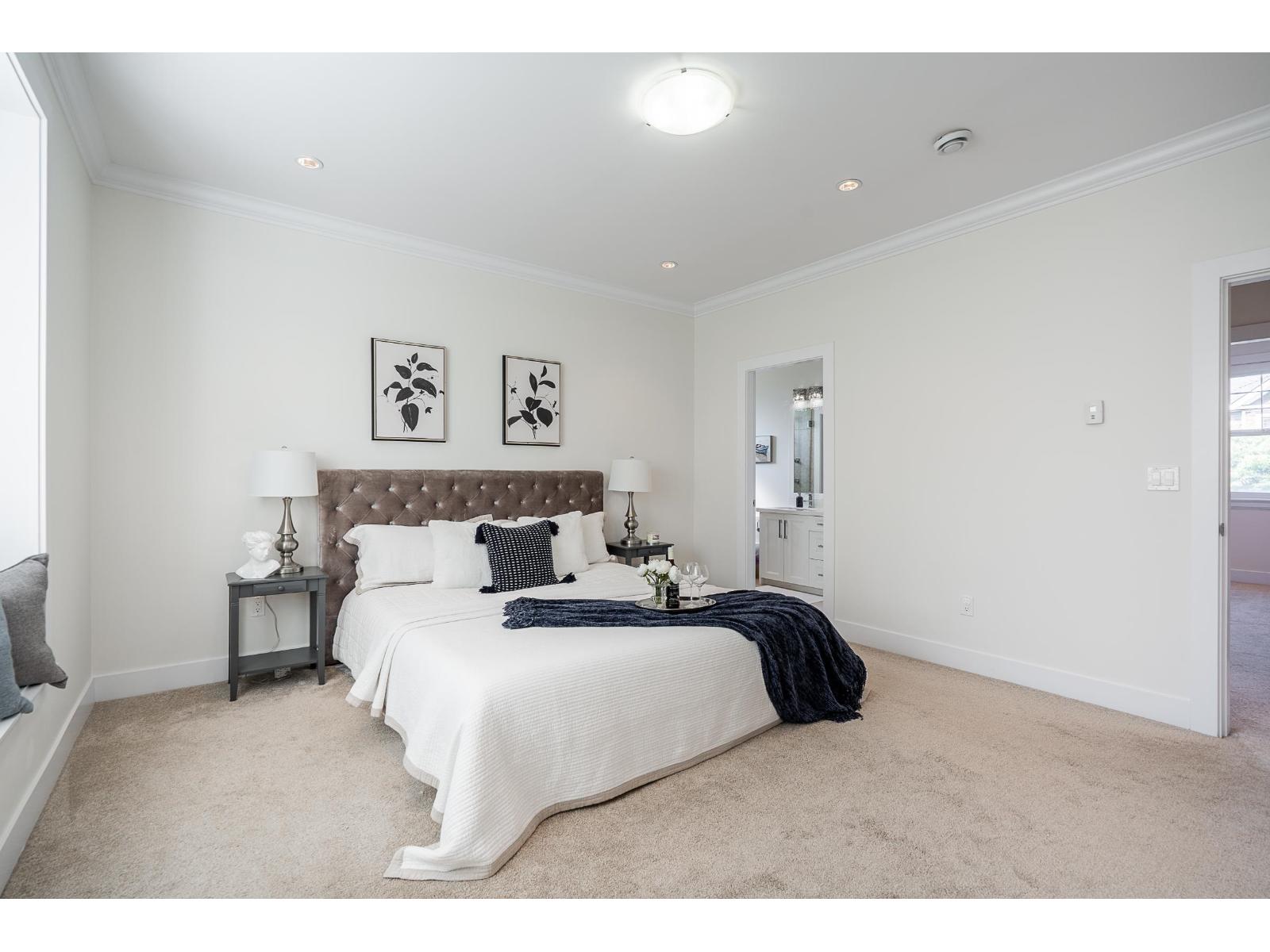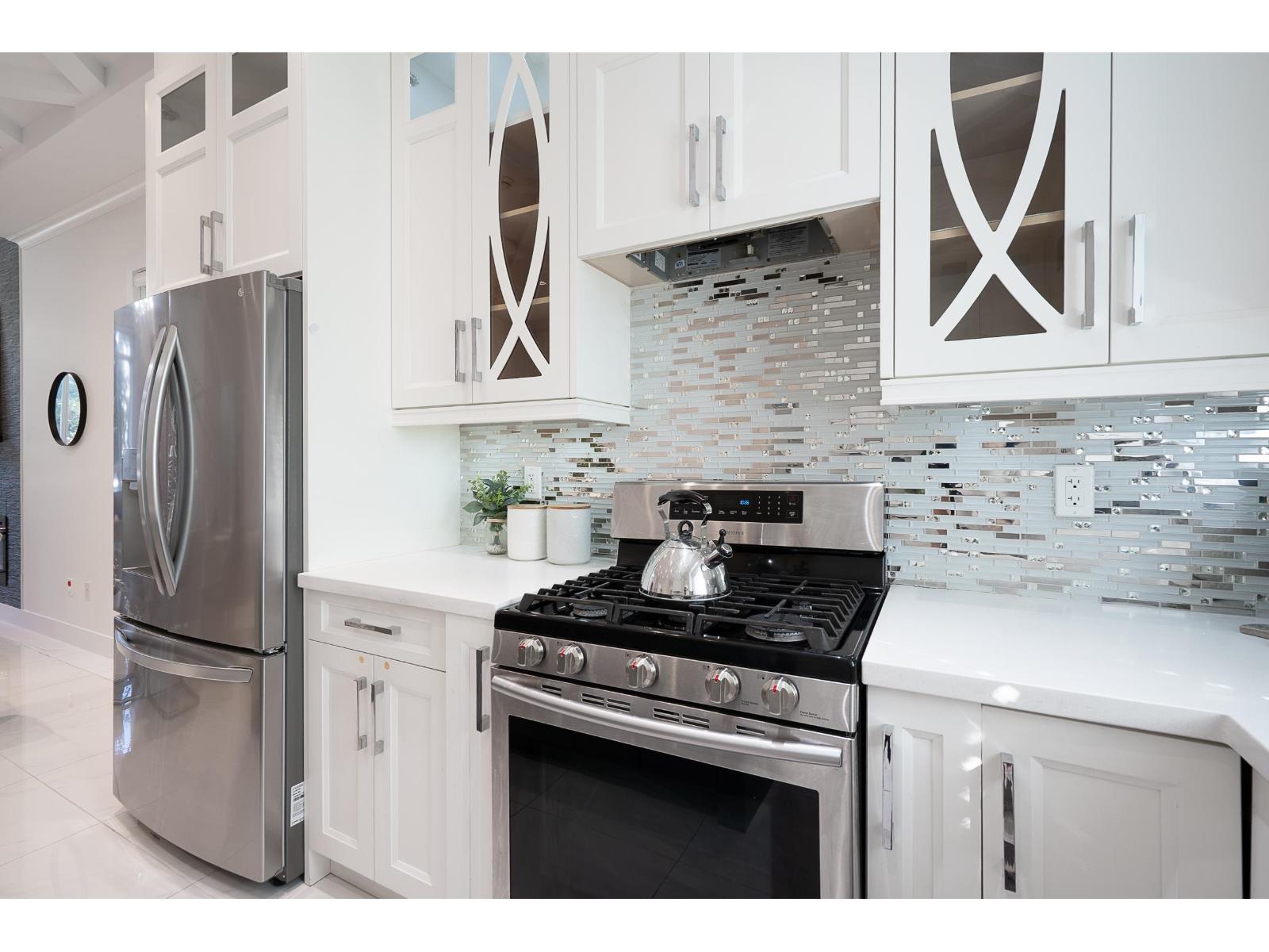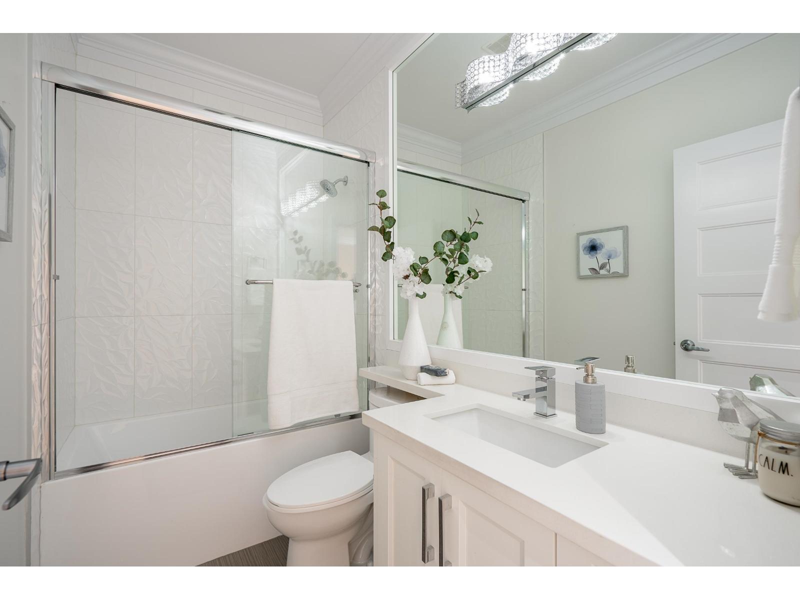Welcome to Sullivan Station! This bright custom 2-storey home offers an open floor plan with tall vaulted ceiling & windows to allow in natural light. This home has 4 spacious bedrooms, 5 bathrooms, & a legal bachelor suite on a nearly 3,500 sq. ft. lot in a family-oriented neighbourhood. Luxurious radiant heated floors throughout for comfort. The main floor features a gourmet kitchen with oversized island, formal living/dining, powder room, & a garage converted into a massive family room. High-end finishing throughout with modern touches and plenty of natural light. Upstairs includes 2 primary bedroom suites with walk-in closets & ensuites, and two additional spacious bedrooms. Fenced backyard surrounded by trees! Centrally located near shopping, Hwy 10 & 99, schools, parks, & transit within walking distance. The legal studio suite was rented for $1,000/month, offering excellent mortgage help. (id:52823)