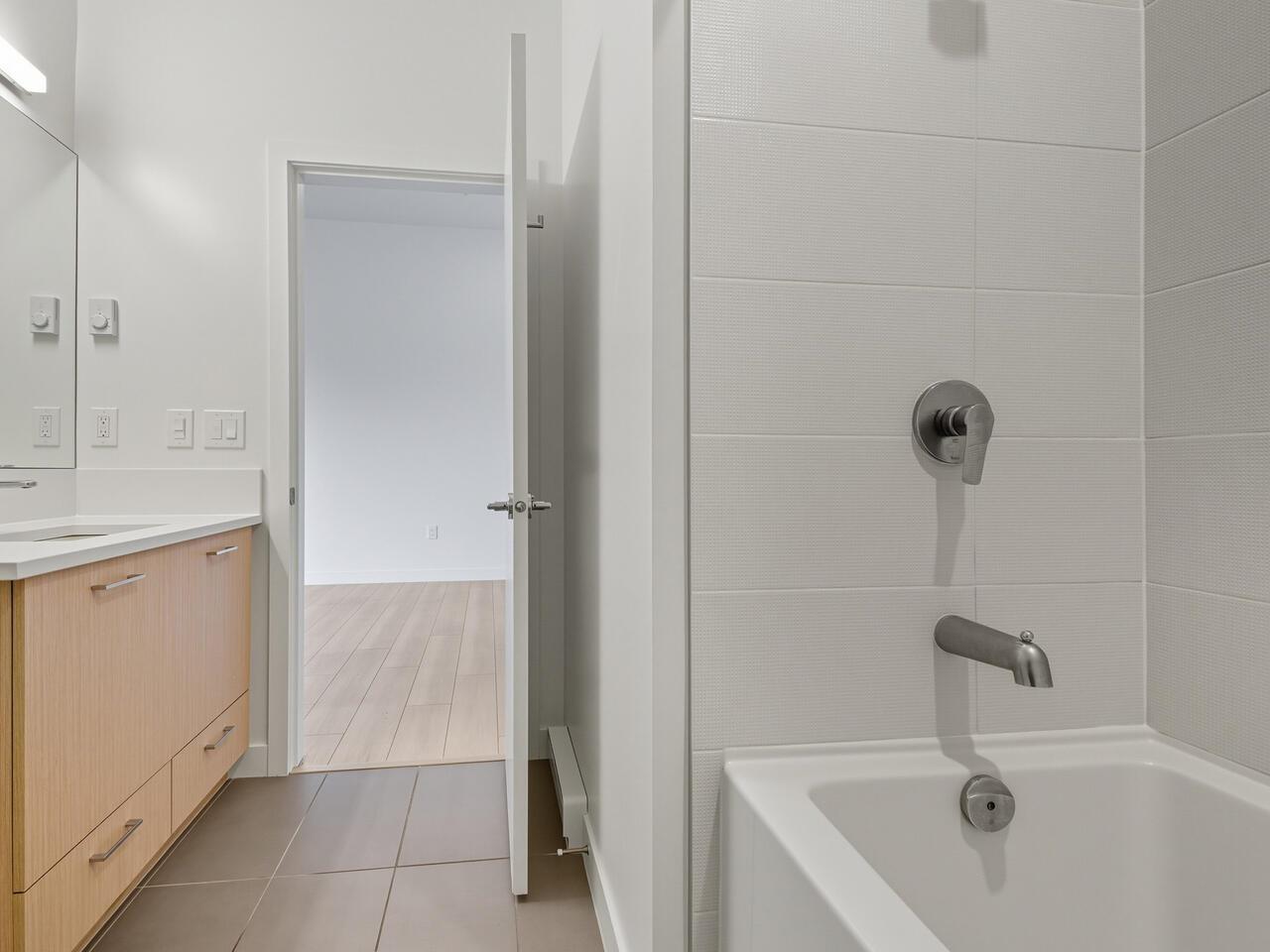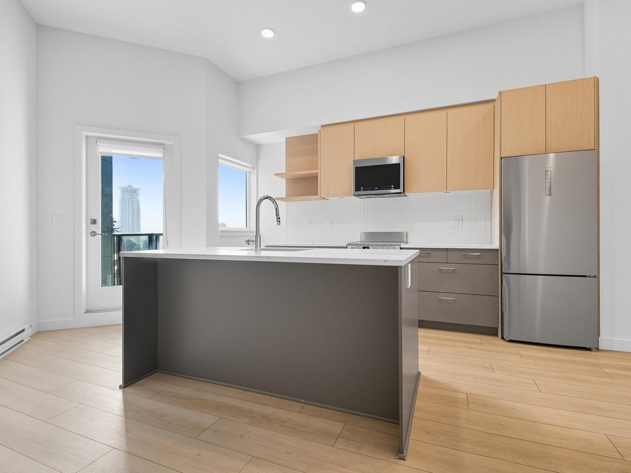 $347 MonthlyModern 1-Bedroom in Q5 - Thoughtfully Designed for Contemporary Living. Welcome to your new home at Q5, a vibrant and meticulously planned community where comfort meets convenience. This brand-new 1-bedroom unit features 8-foot ceilings and expansive windows, creating a bright and airy ambiance throughout. The designer kitchen is a standout, boasting stainless steel appliances, quartz countertops, LED flush-mount lighting, and a stylish blend of wood grain and solid color cabinetry. Wide plank flooring and soaring ceilings elevate the modern aesthetic, sleek and sophisticated living space. Residents enjoy a comprehensive range of amenities, including: EV pre-wired parking, gym and yoga room, cozy fireside lounge, community gardens and close George Skytrain Station Parking & Storage (id:52823)