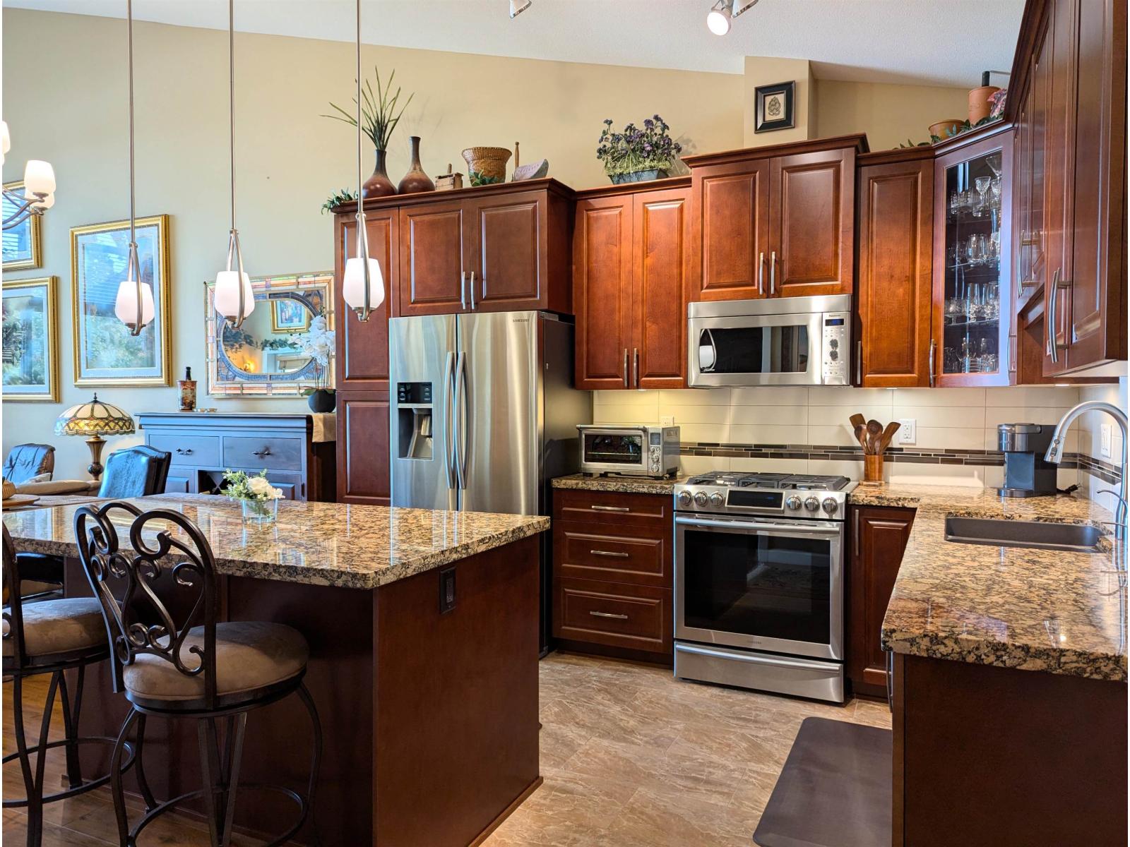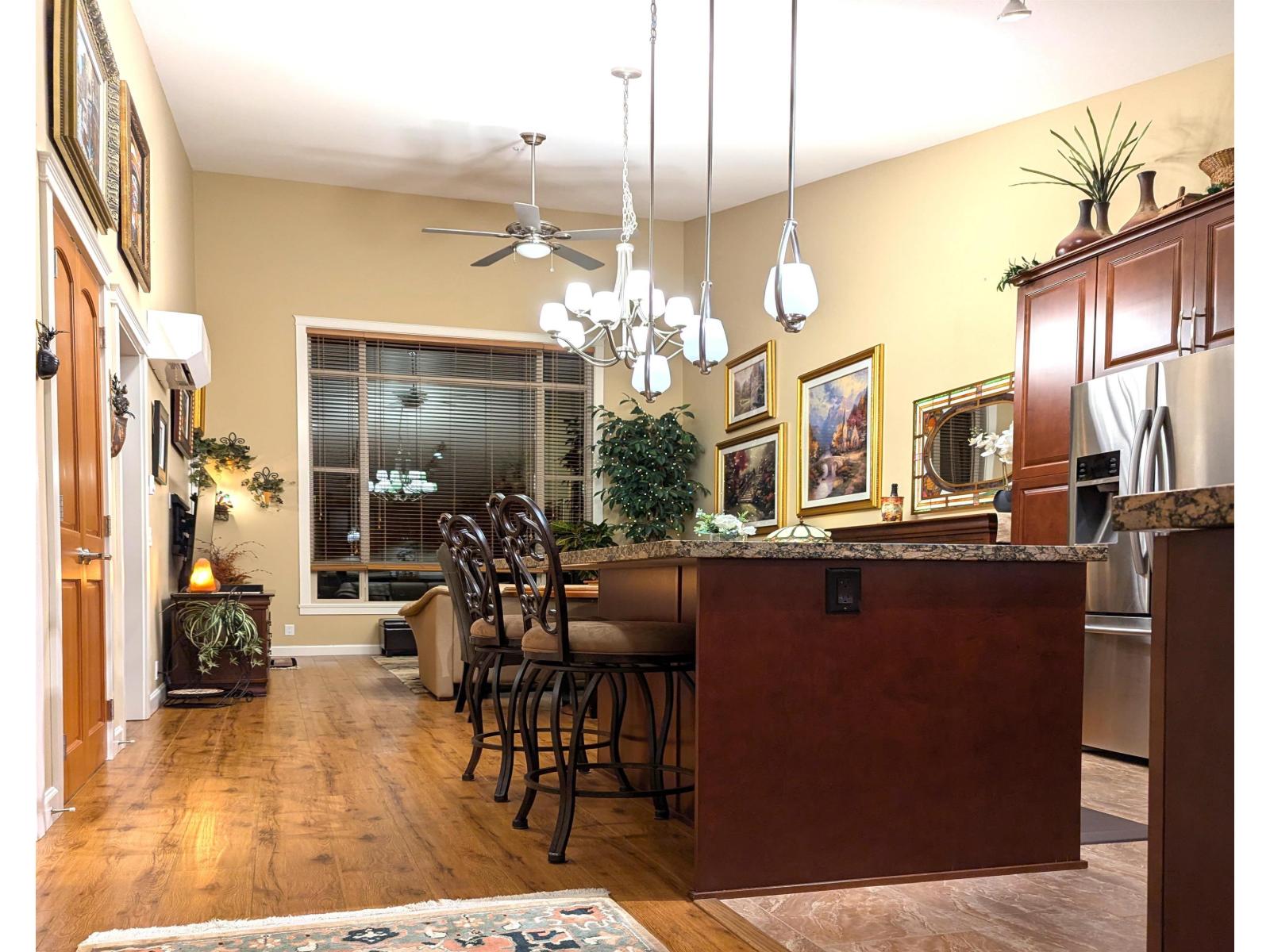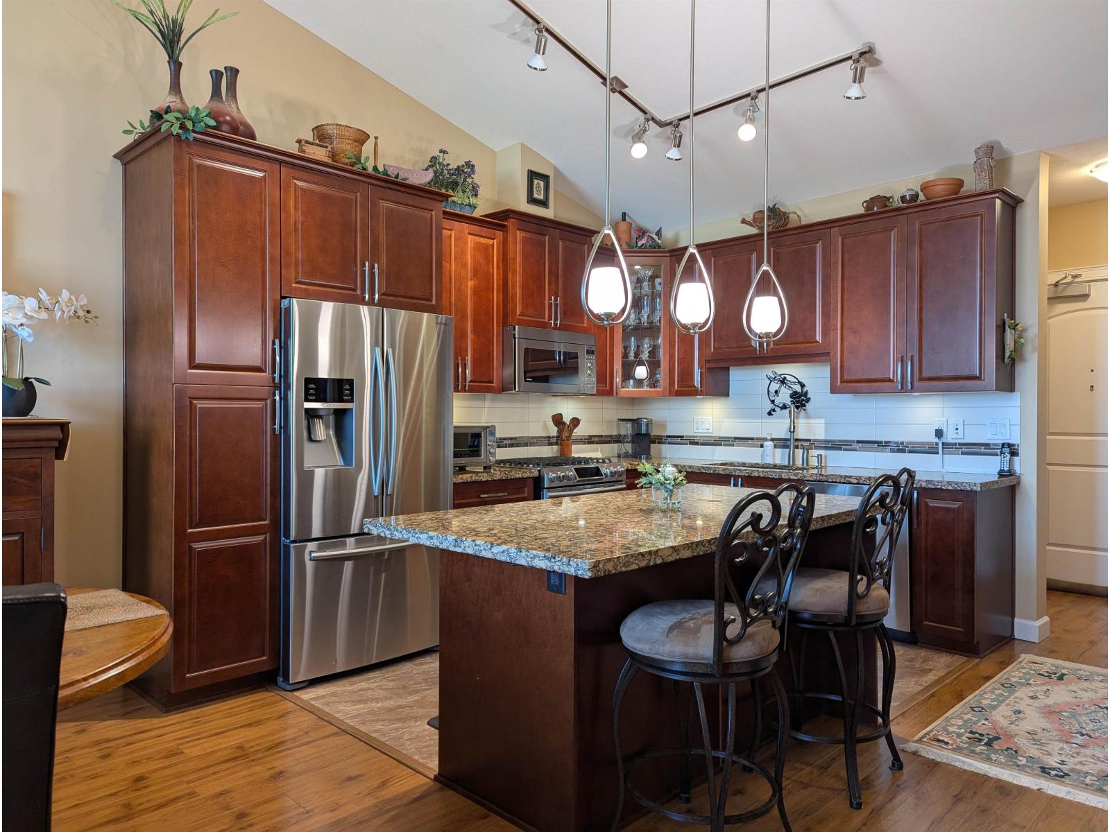 $447.61 MonthlyStop your search; this executive, luxury penthouse is the one! Yorkston Creek Parkside 1 was constructed by Quadra with quality design & materials and this home features many upgrades and thoughtful, value-added extras added by my meticulously clean & detail-oriented original owners. Please request the full list! This corner unit has a wrap around 240 sqft solarium that enjoys greenbelt and sunset views, an impressive vaulted ceiling in the living room, heated bathroom floors and mirrors, ductless heat pumps, solid wood cabinetry and doors, granite counters and high-end stainless steel appliances. ADA (handicap)friendly home, with wider doors and including a parking location near the elevators and one parking stall that is wider for improved accessibility. EV capable; private garage-style storage. Fabulous location near shopping, parks, restaurants, schools, daycare, tennis dome and coming soon - a new indoor pool and rec centre! Strata fee includes gas, hot water, gym. Won't last - book your showing today! (id:52823)