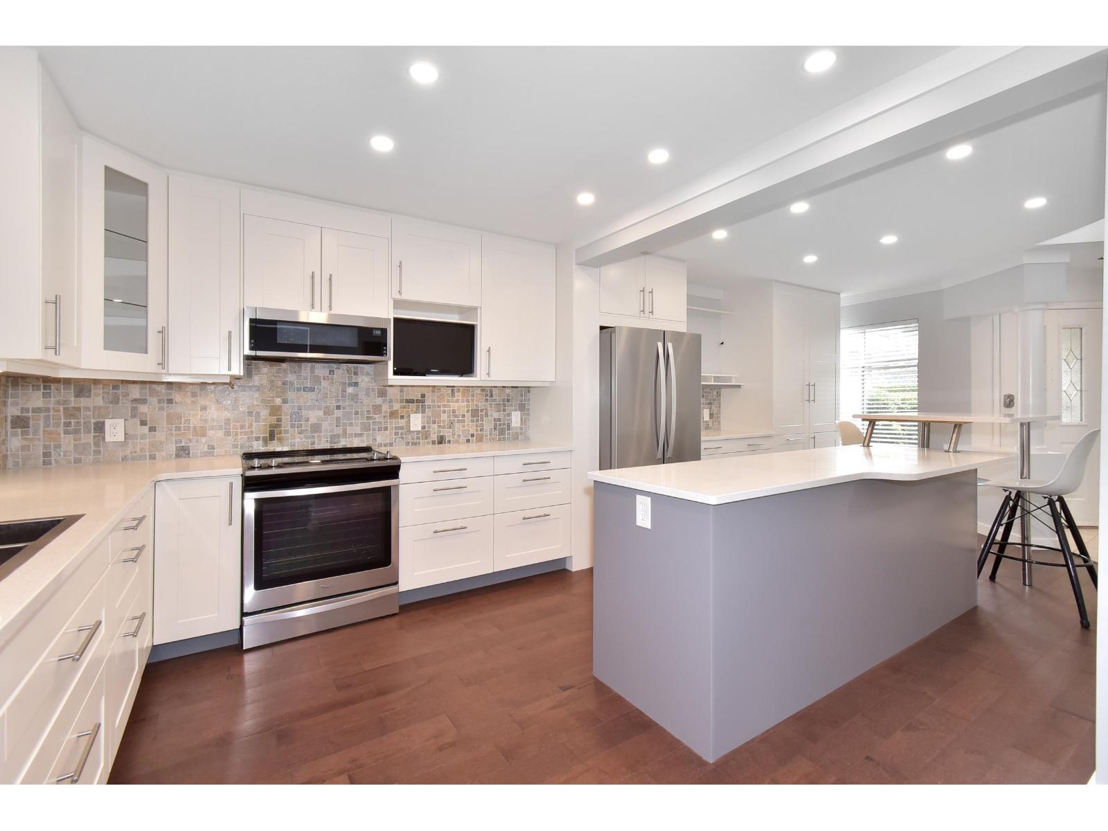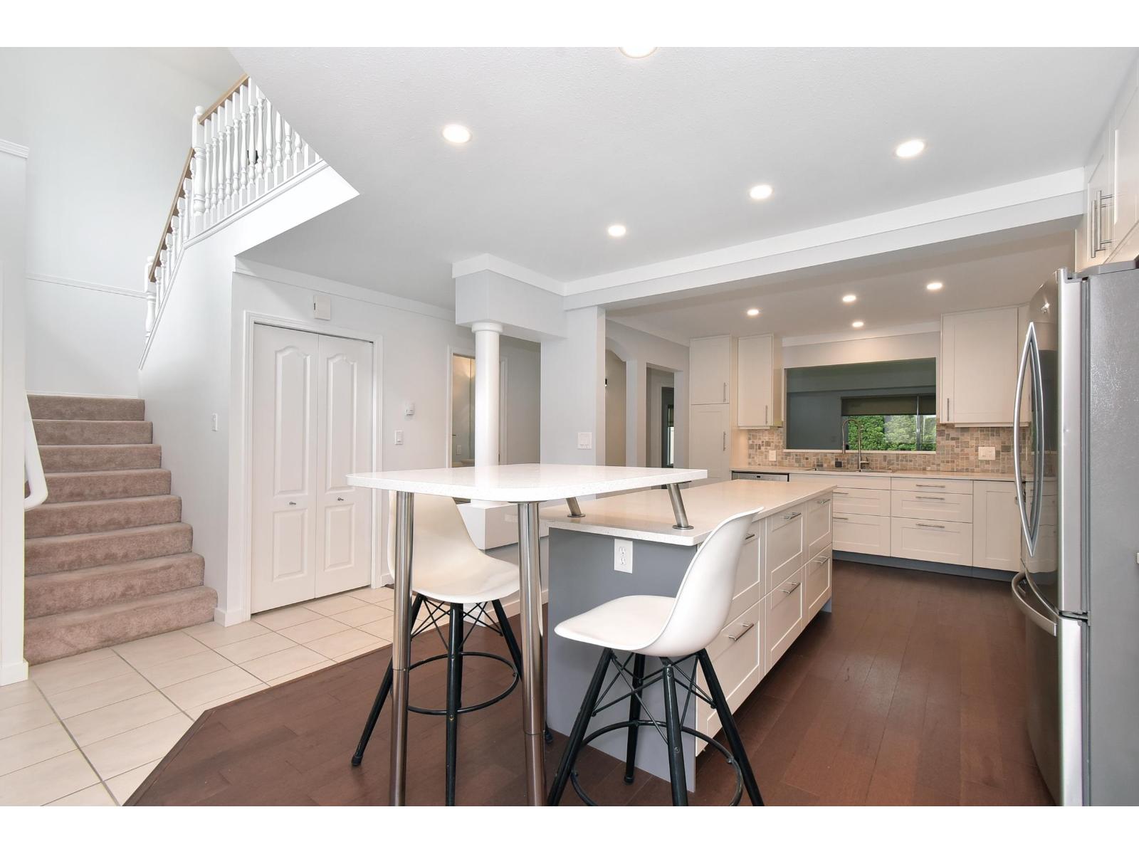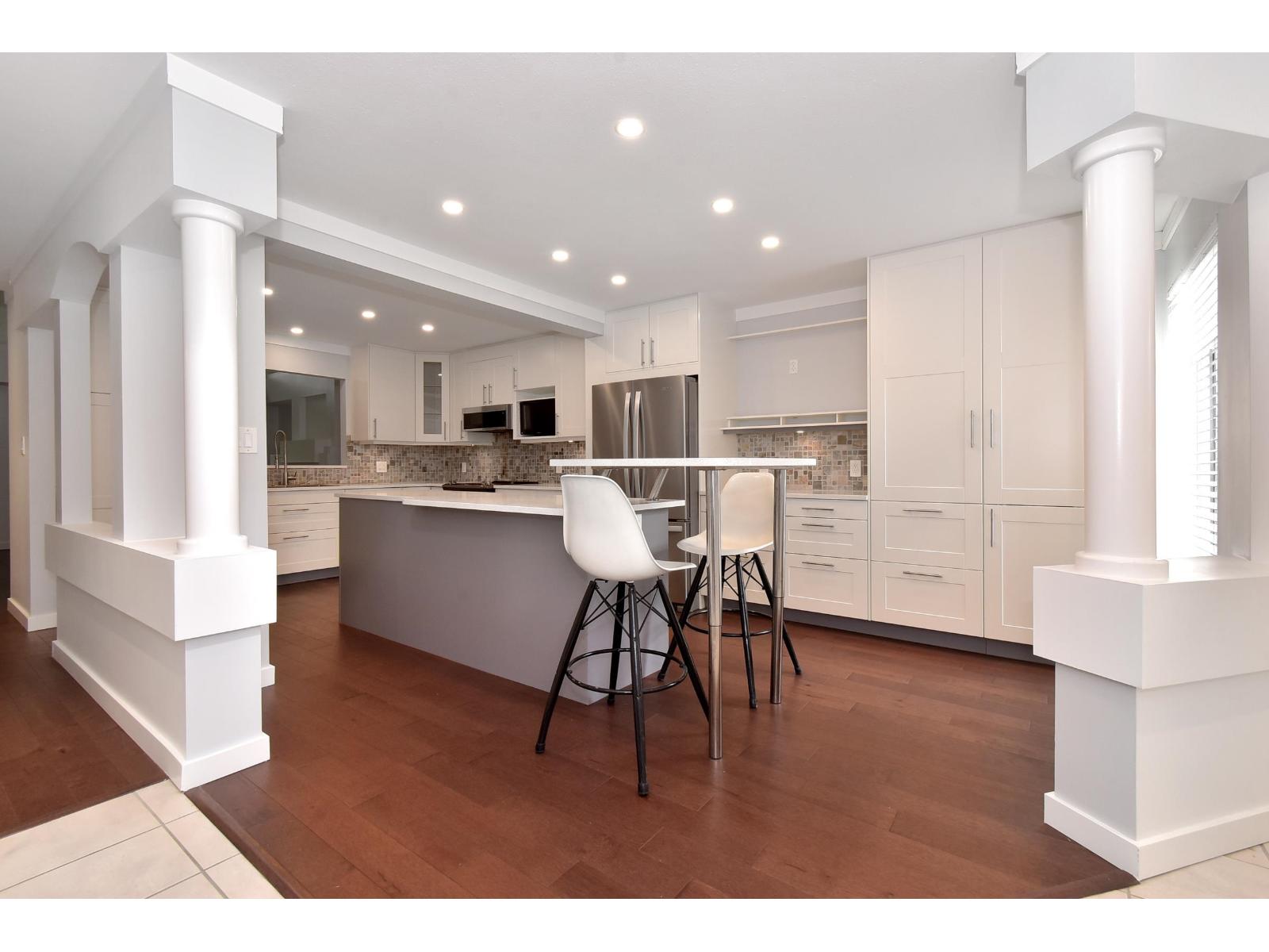 $519.40 MonthlyExperience comfort & security in Peninsula Village (55+) gated community featuring a spacious primary bedroom on the main floor! A modern chef inspired kitchen is the heart of the home with stainless steel appliances, oversized bi-level island (removable 2nd tier), sleek white soft close shaker cabinets, quartz countertops & pull-out drawers in all lower cabinets for easy access & organization. Engineered hardwood floors, updated ensuite & powder room, living room gas fireplace & soaring 17' ceilings; upper floor loft/den plus 2 more bedrooms (cheater ensuite can be a second primary bedroom) plus double garage. Move-in ready in this well maintained strata near all local amenities. OPEN HOUSE by appointment to fit your schedule. This may just be the one for you! Call your realtor today. (id:52823)