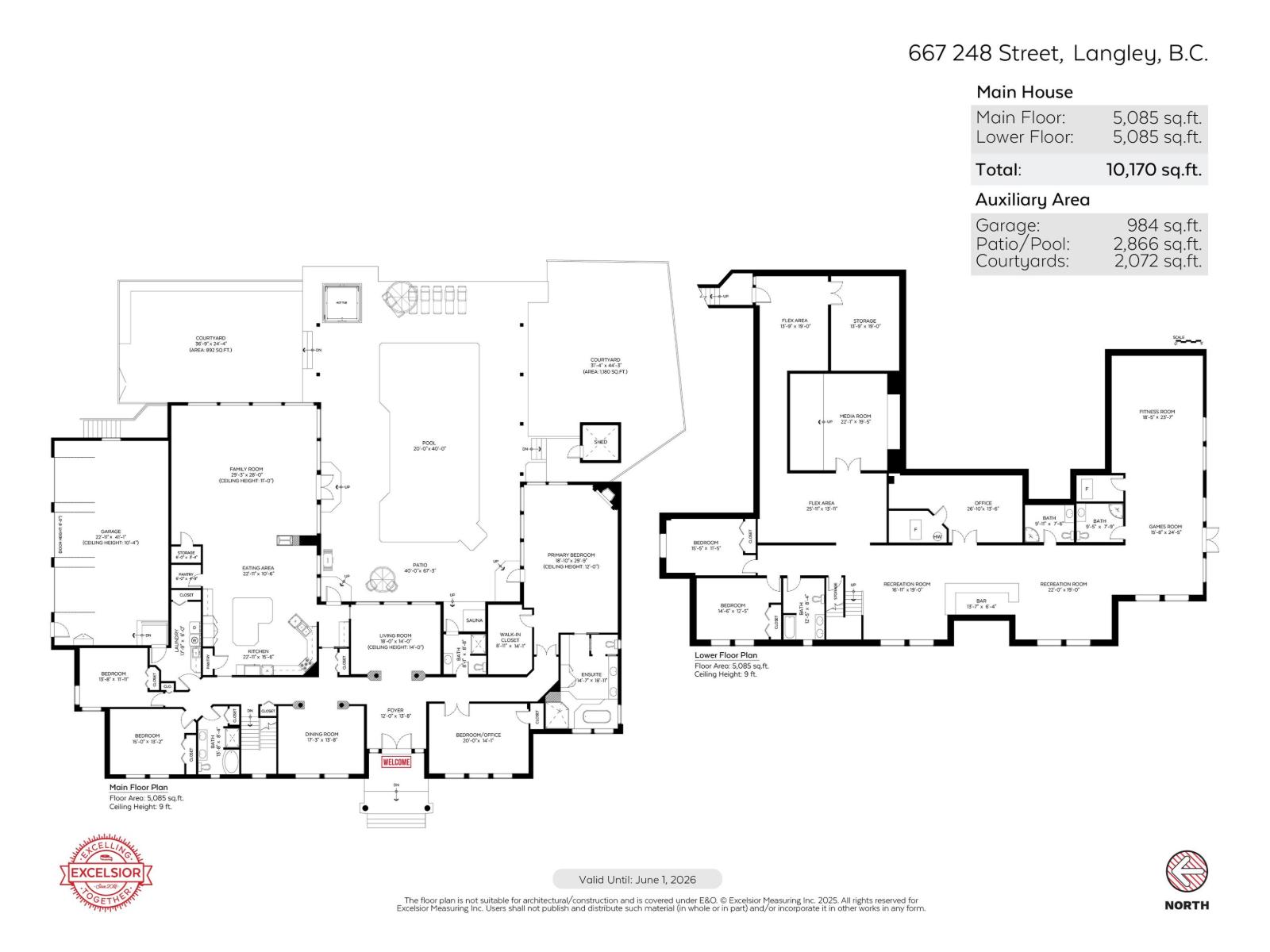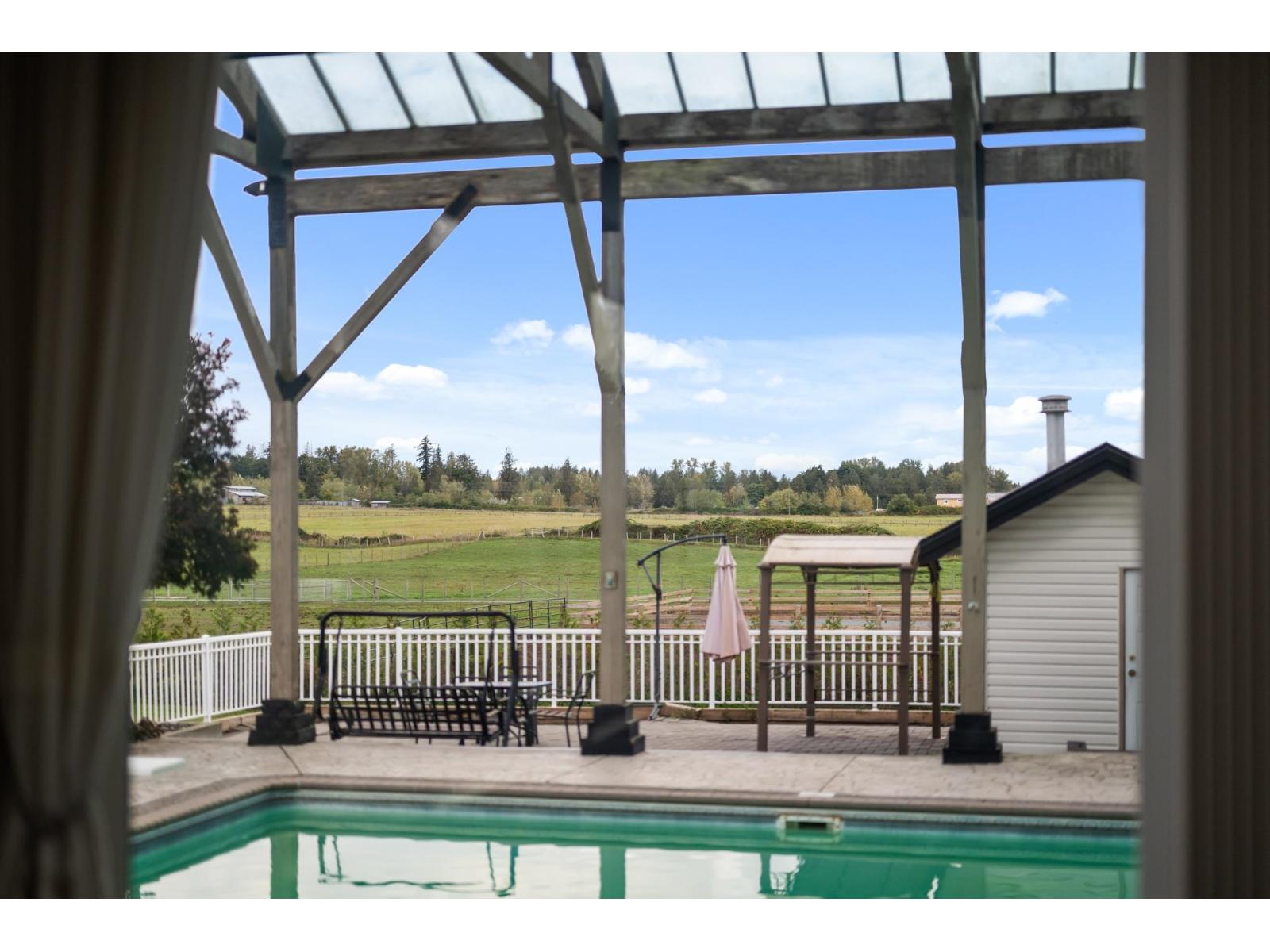 One of a kind 9.77-acre estate in the South Langley This stunning rancher with a fully finished basement offers elegance, comfort & tranquility. Sprawling over 10,000.sqft this estate features 6 bedrooms and 6 bathrooms, office, dining room & a great room with 12' ceilings & large windows showcasing panoramic views. The lower level is designed for entertaining with a wet bar & media room. Enjoy the sunsets from the 40'x20' pool enclosed by a striking glass dome for year-round use . For horse enthusiasts, the estate includes a 6-stall barn with loft, lush green pasture and access to endless trails. Generous sized triple garage, detached shop, gated entry for optimal privacy & endless outdoor space complete this rare package . A luxurious country lifestyle awaits! (id:52823)