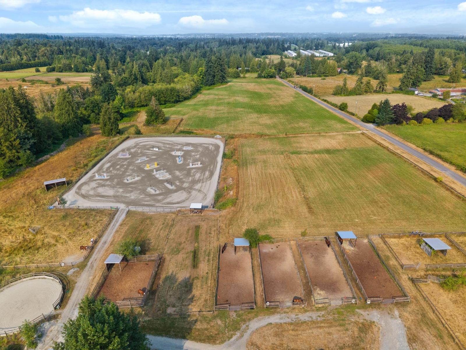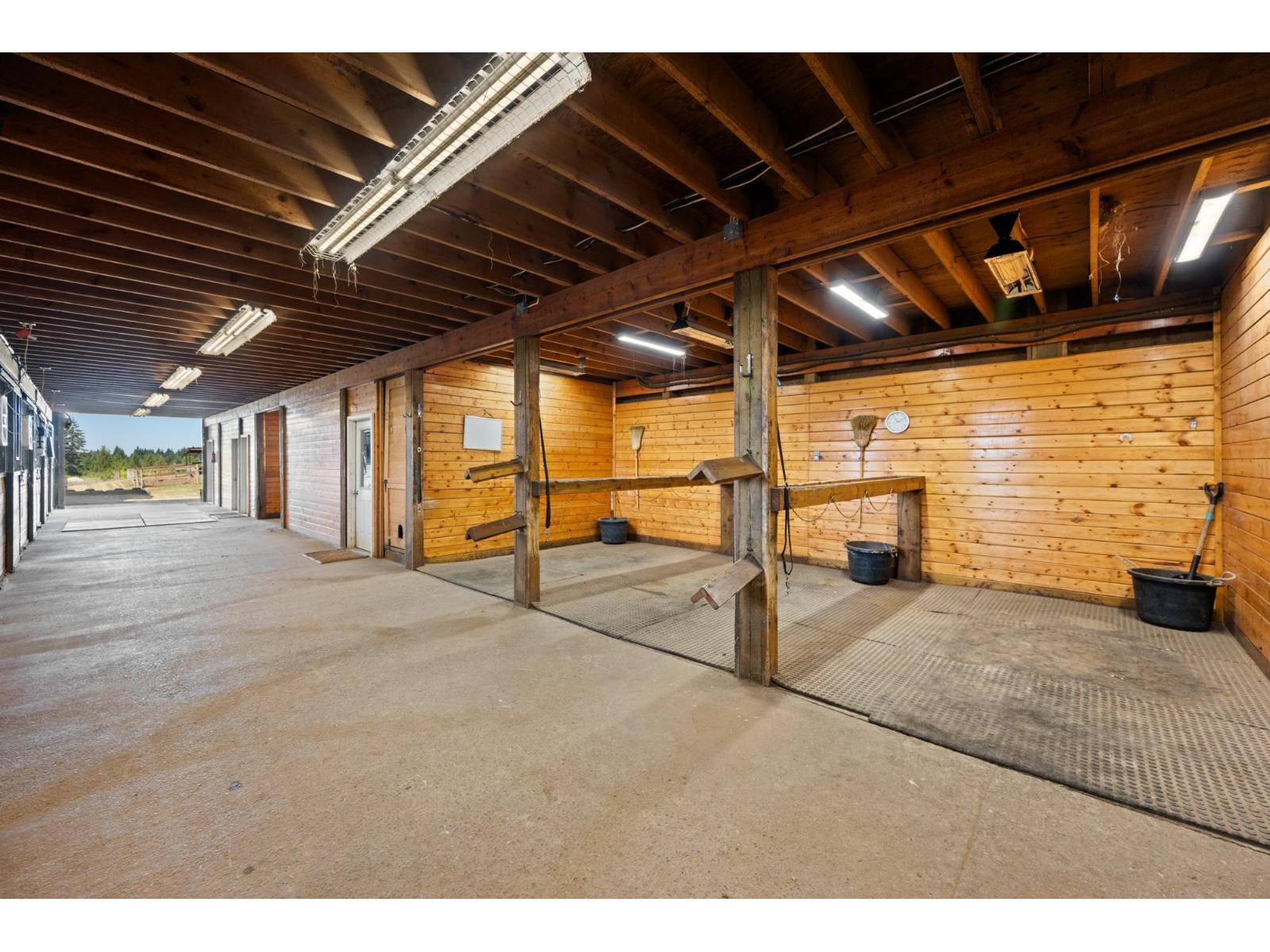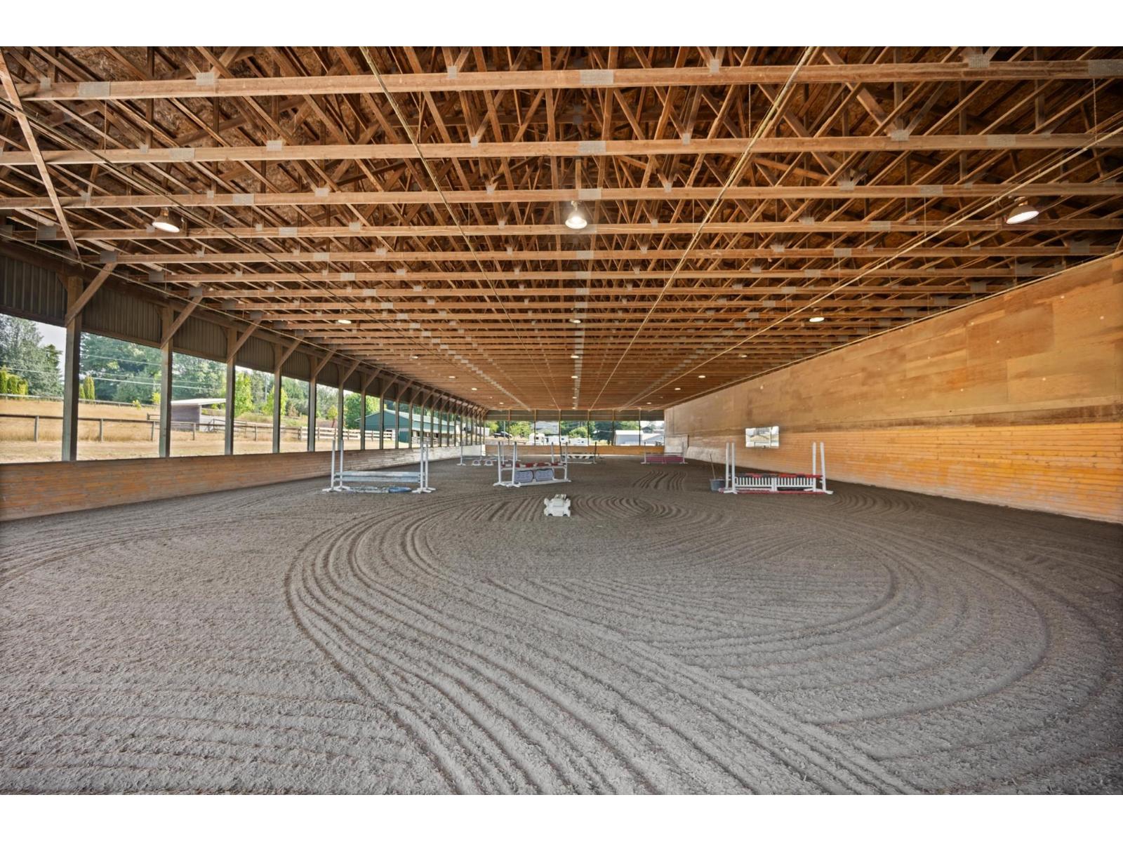 Experience the ultimate equestrian lifestyle on this stunning Glen Valley property. The main home features 4 bedrooms, 2.5 baths, and a separate 2-bedroom suite, complemented by an additional 3-bedroom mobile home. The main barn, which houses a large indoor riding ring, offers a comprehensive setup for clients, including a covered viewing lounge, two tack rooms with lockers, and a full bathroom with a shower. It also has a laundry room with a blanket-drying area. The property includes multiple stalls across three barns, an outdoor arena, and over 45 paddocks. With potential for a small breeding operation and approximately 15 acres for haying, this property is an ideal investment with the added benefit of farm status for property tax reduction. (id:52823)