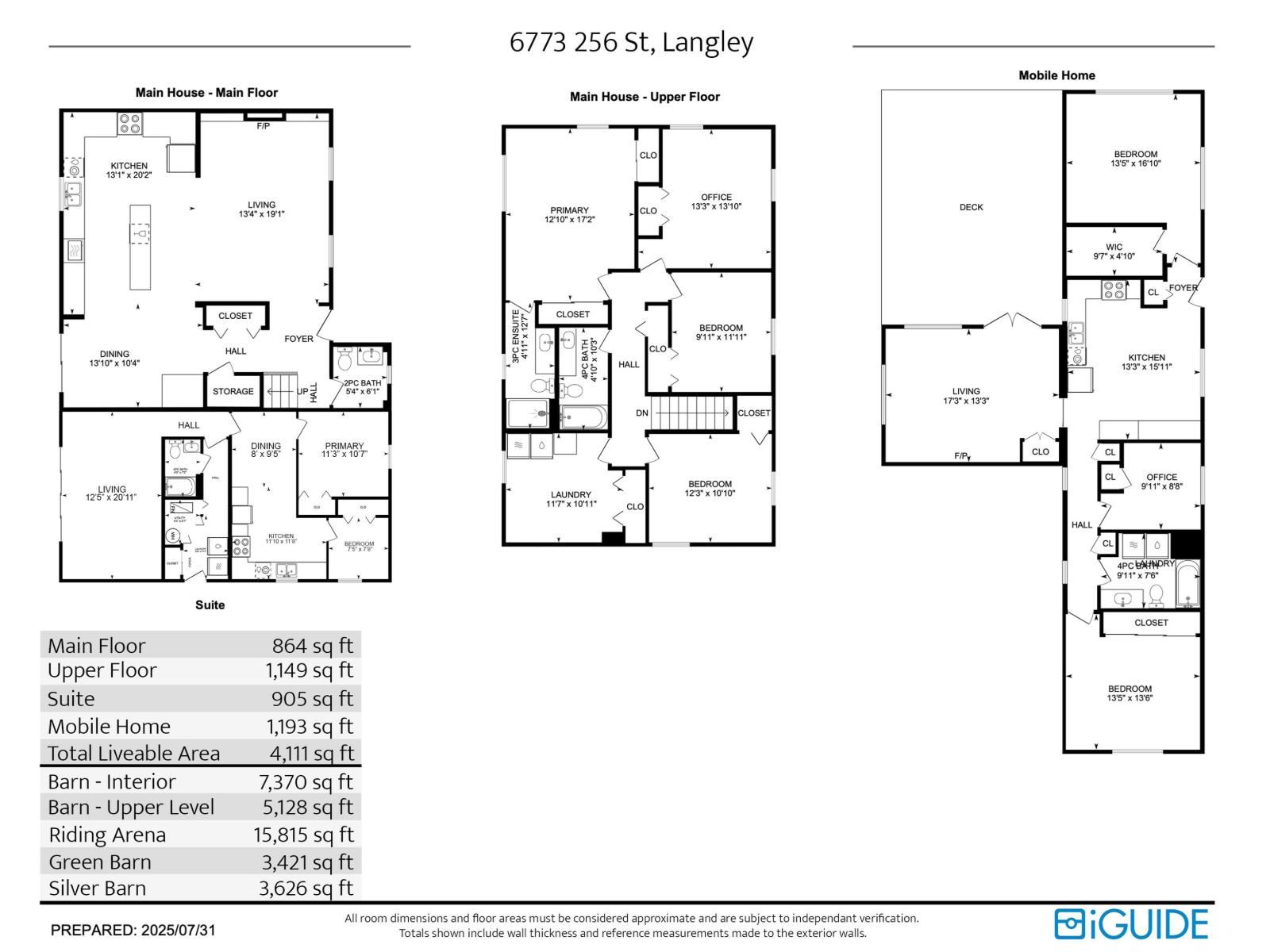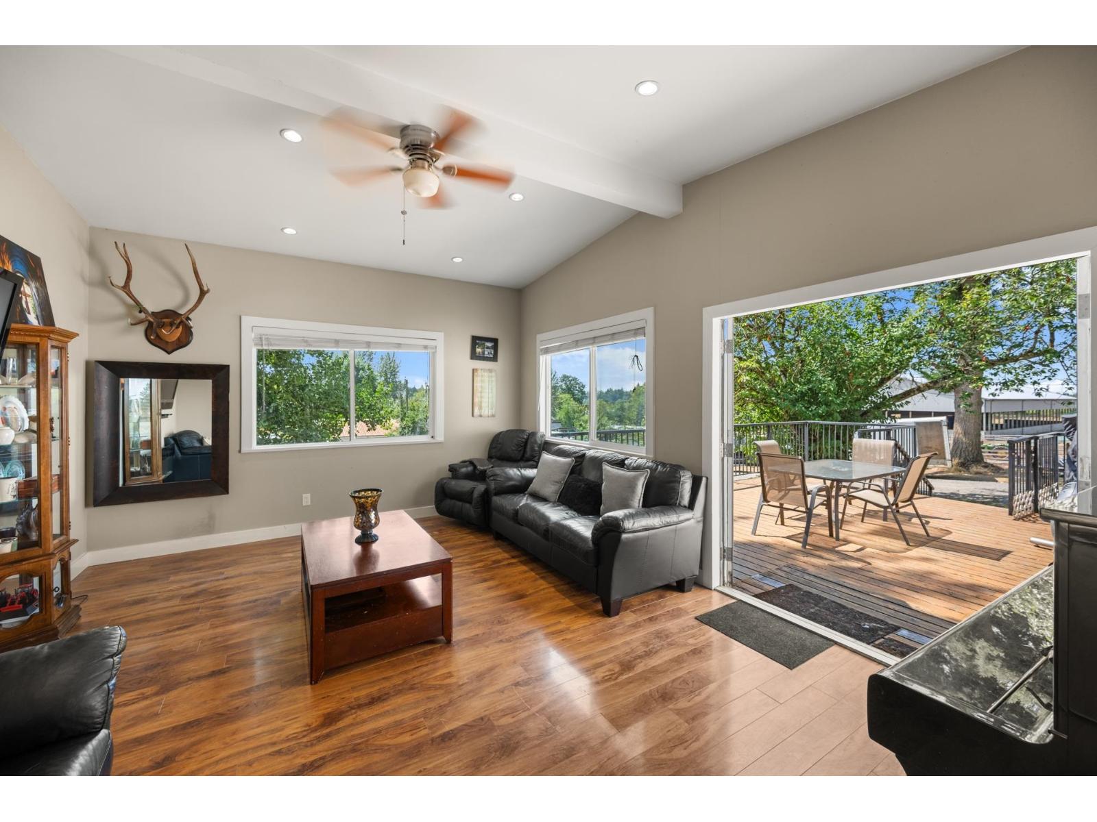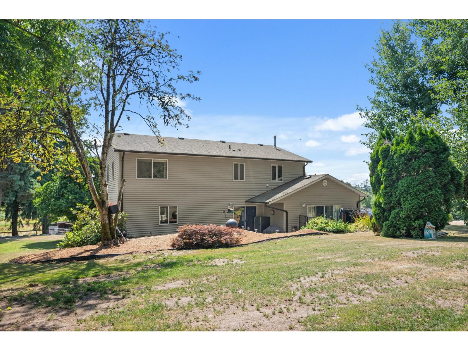 Experience the ultimate equestrian lifestyle on this stunning Glen Valley property. The main home features 4 bedrooms, 2.5 baths, and a separate 2-bedroom suite, complemented by an additional 3-bedroom mobile home. The main barn, which houses a large indoor riding ring, offers a comprehensive setup for clients, including a covered viewing lounge, two tack rooms with lockers, and a full bathroom with a shower. It also has a laundry room with a blanket-drying area. The property includes multiple stalls across three barns, an outdoor arena, and over 45 paddocks. With potential for a small breeding operation and approximately 15 acres for haying, this property is an ideal investment with the added benefit of farm status for property tax reduction. (id:52823)