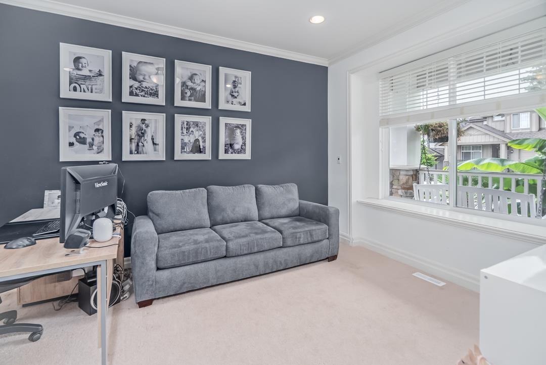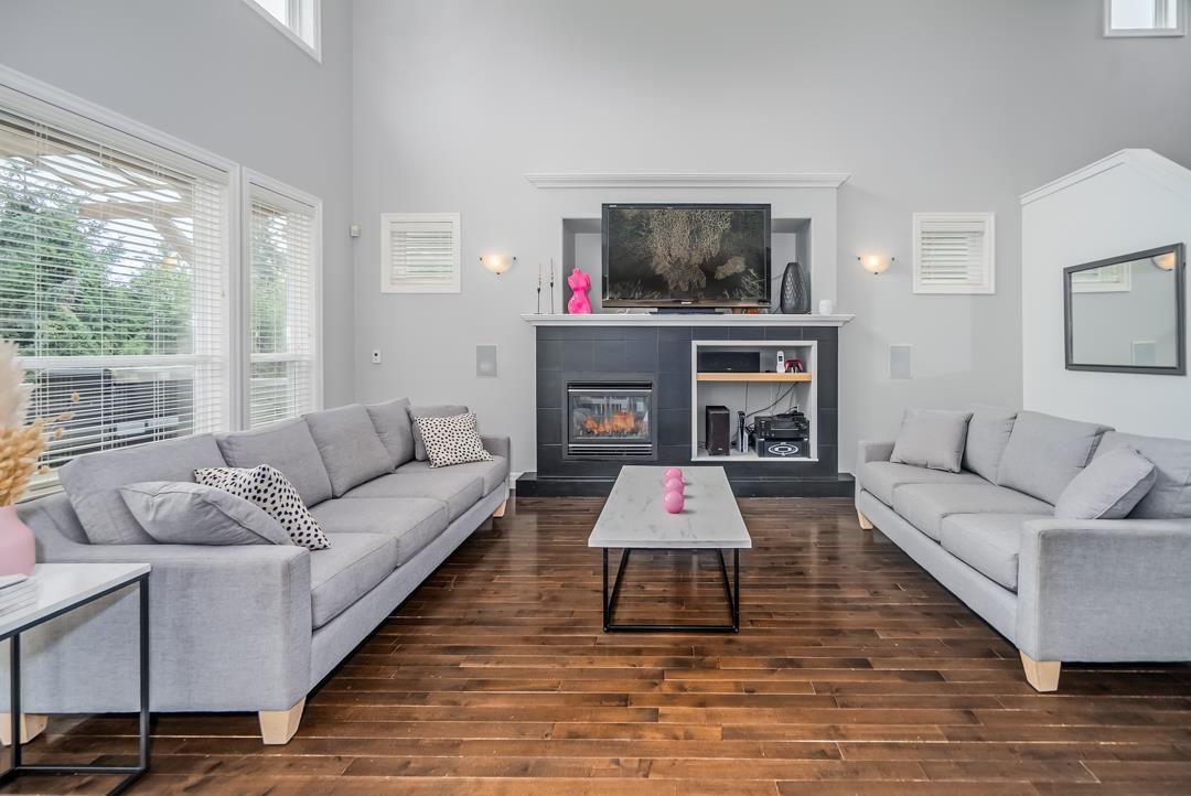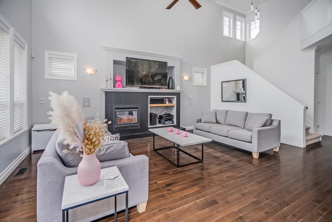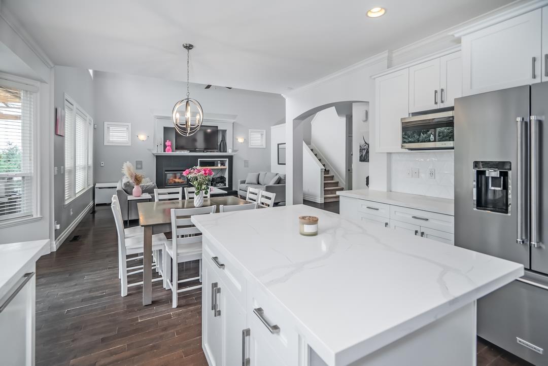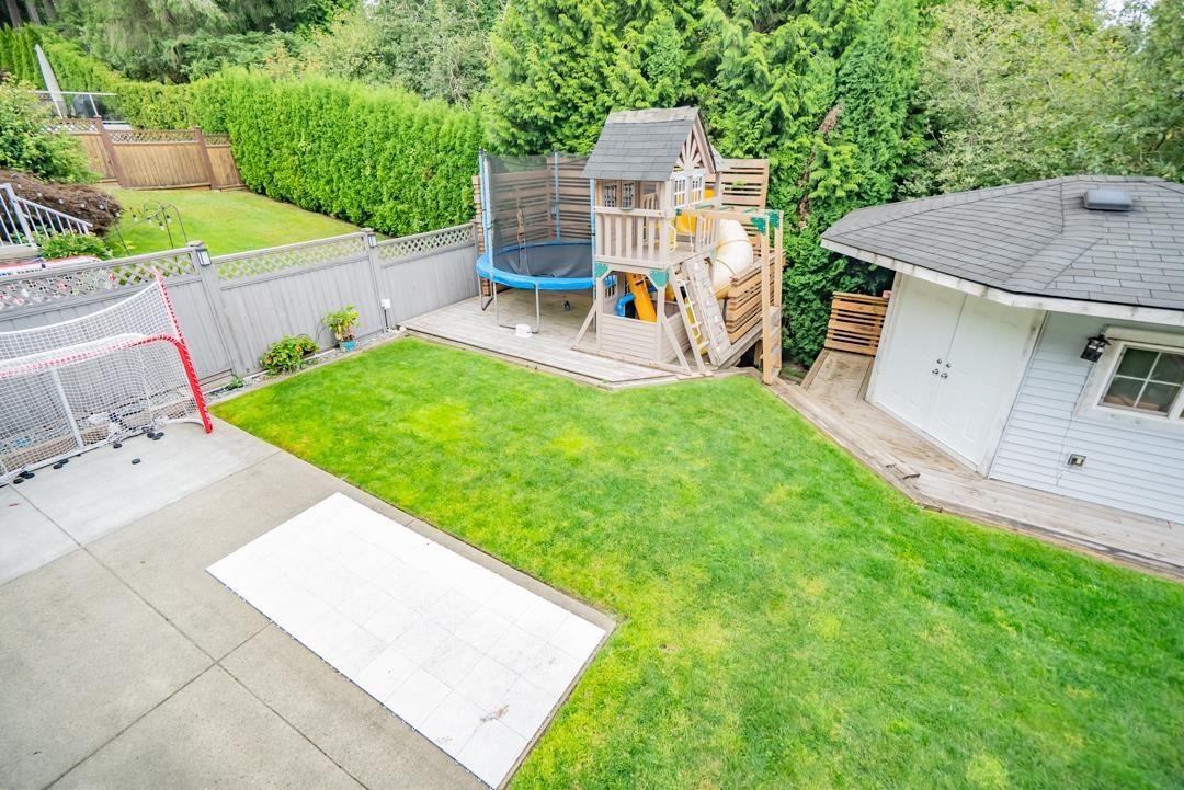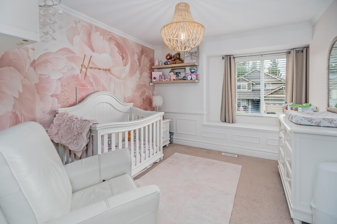 Welcome to Routley Wynd & this beautiful 2 storey w/basement home. Offering over 3200 s/f of living space the main floor Great room boasts soaring 18' ceilings with loads of windows to allow maximum natural light. Grand kitchen features timeless white cabinetry, Quartz counters & S/S appliances. Walk out to your covered Balcony & sit by the gas powered fireplace while taking in the Valley views! Fully fenced backyard offers irrigation ,a fair sized storage shed & backs onto a GREENBELT for the ultimate privacy! Upstairs offer 3 generously sized rooms including a Large Primary that has stunning views of the Valley & Mount Baker. 5 piece ensuite bathroom. Downstairs offers a 1 or 2 bedroom mortgage helper. Bonus A/C & 200 amp service. Near to shopping, restaurants, parks, schools & transit. (id:52823)