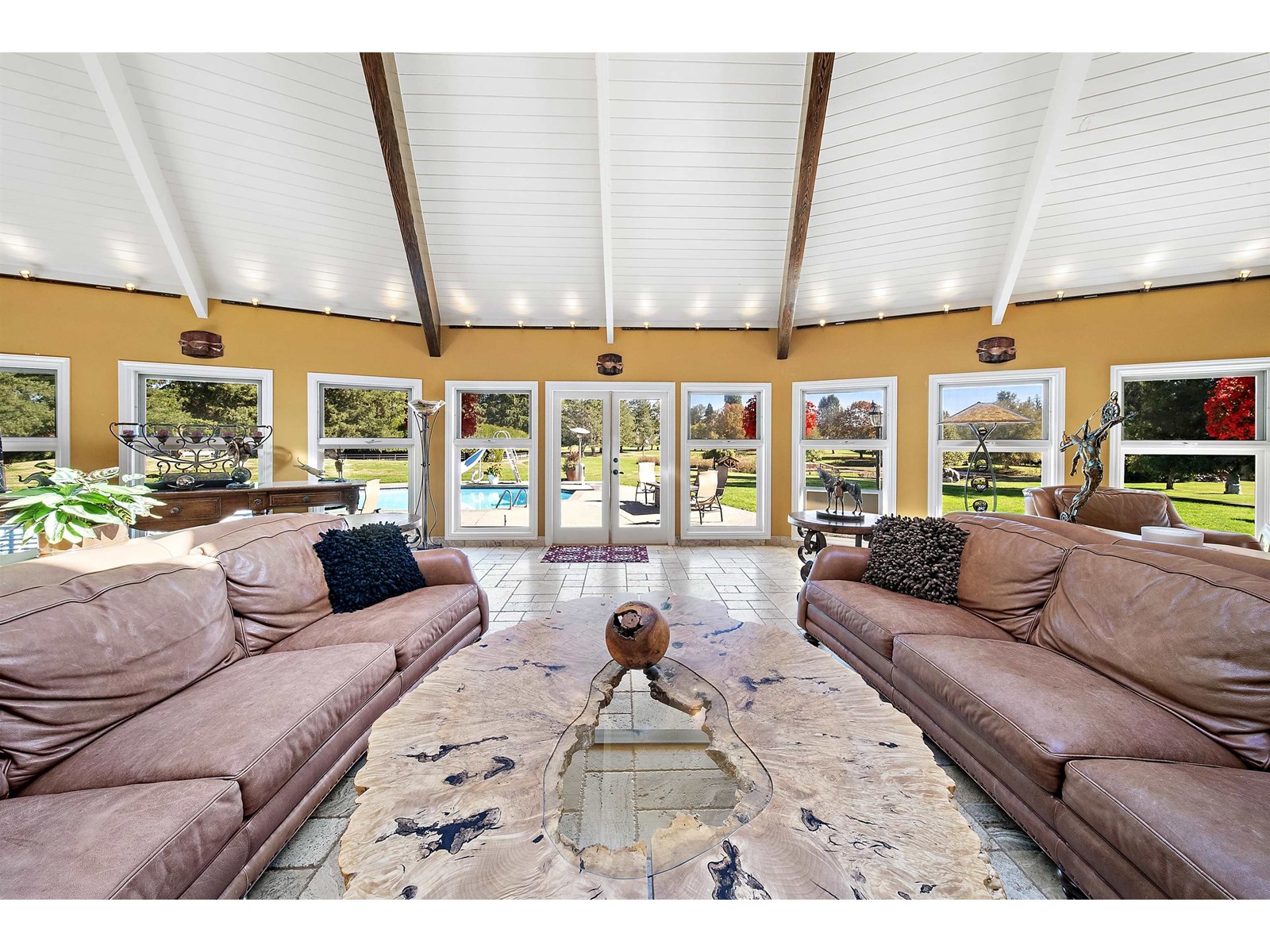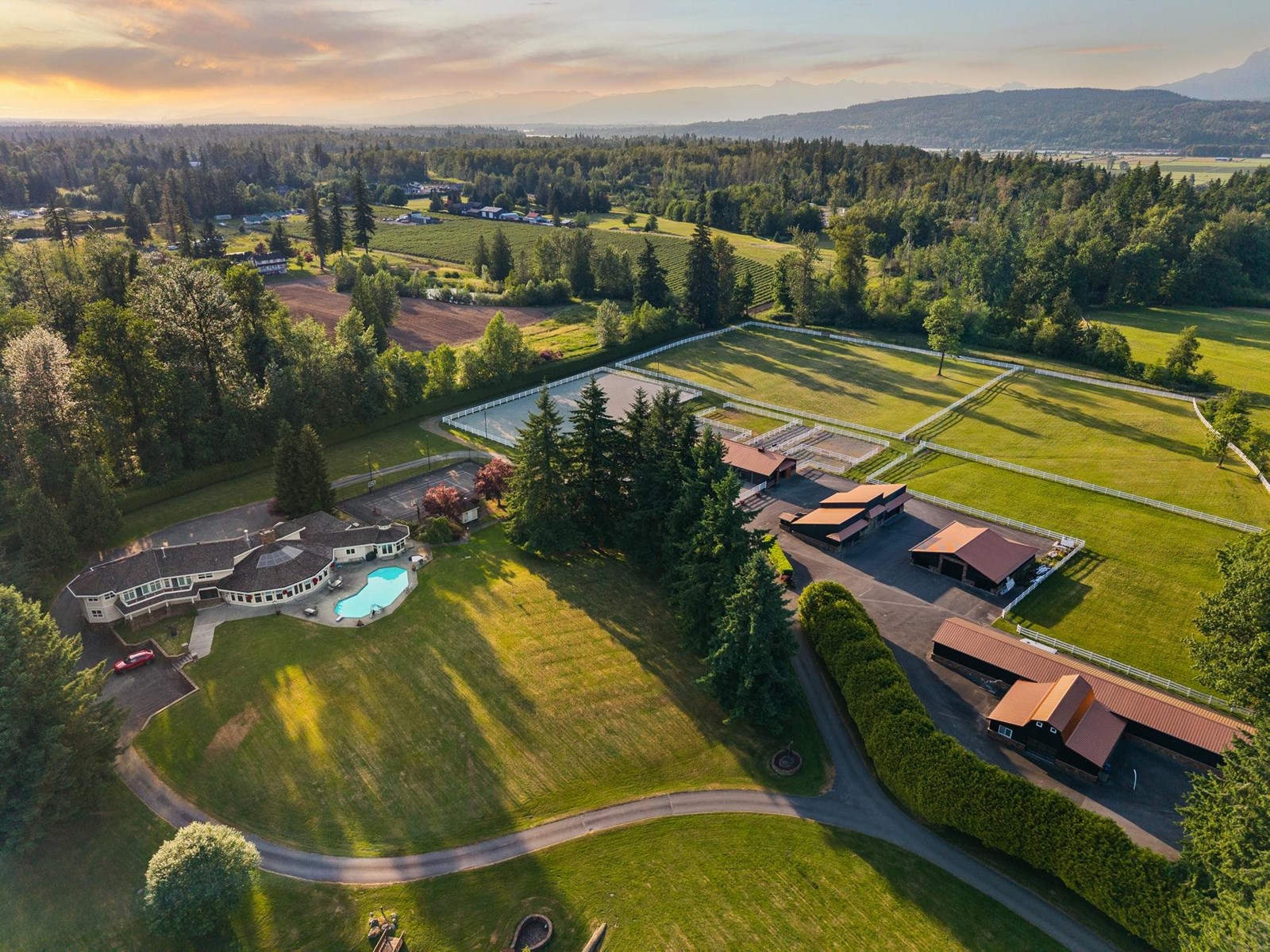 Welcome to your dream estate! This legacy property offers 32.85 acres of opportunity! Currently 3 Homes, Equestrian set up and 3 Shops. As you enter the stately gate a winding driveway welcomes you. Main house is 7900+sqft, great for large family and entertaining. Main floor is an extension to the outdoor space & in-ground pool. Barn has 10 stalls, in/out paddocks, large all weather riding arena and 4 impressive fields. Car shops/garages have flexibility to also be a gym, host events, or more stables. Tennis/sports court, firepit, pond & treehouse. 2 titles allow possibility to build 1-2 more homes or with lots of land to grow a vineyard or gardens. This magnificent property transforms into something magical at golden hour and sunset. Unplug on your fully private oasis. Preview the video. (id:52823)