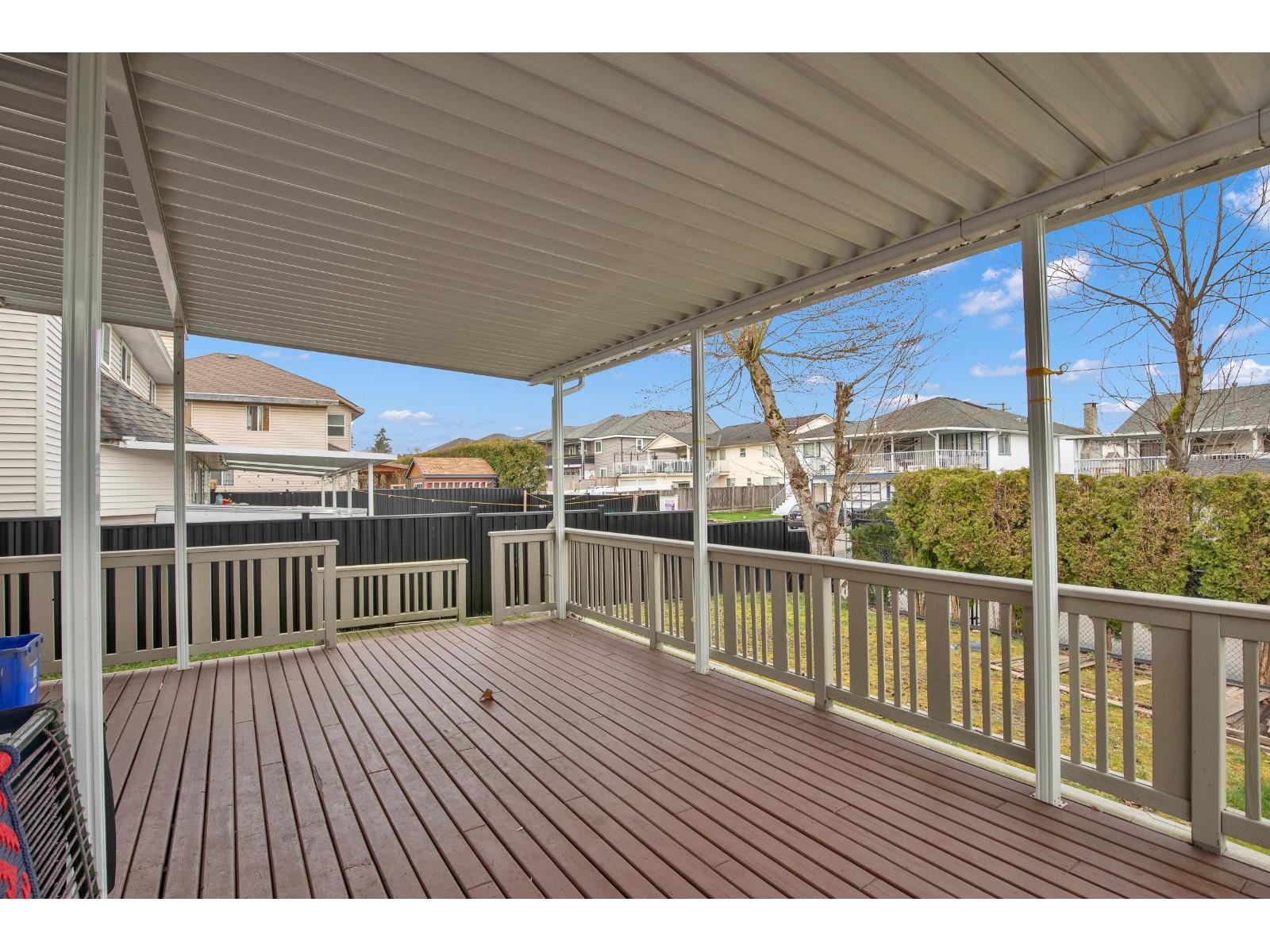 Nestled on a quiet no-through street, this move-in-ready two-storey home sits on a spacious 7,100+ sq ft lot with a back lane in the heart of Newton. Offering five bedrooms, three bathrooms, and a double garage, this home is perfect for families. The patio door opens to a 26x16 Sundek, ideal for outdoor living. Upgrades include a renovated bathroom, new windows, roof, furnace (2025), hot water tank (2024), and a whole-house AC system (2025). Inside, you'll find oak spiral stairs, a large oak kitchen with an island, and extra parking for RVs. The fenced backyard offers back lane access, a mountain view from the bedroom, and a backyard. It is also just a 10-minute walk to Newton Exchange, elementary schools, daycare, parks, and a temple. Don't miss out-call today for a private show. (id:52823)