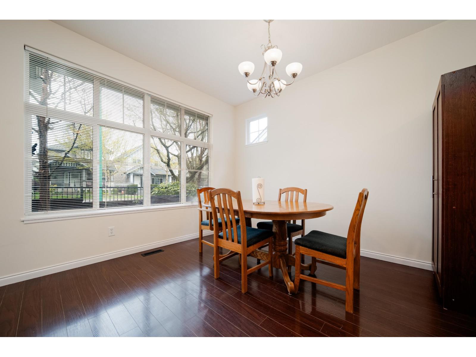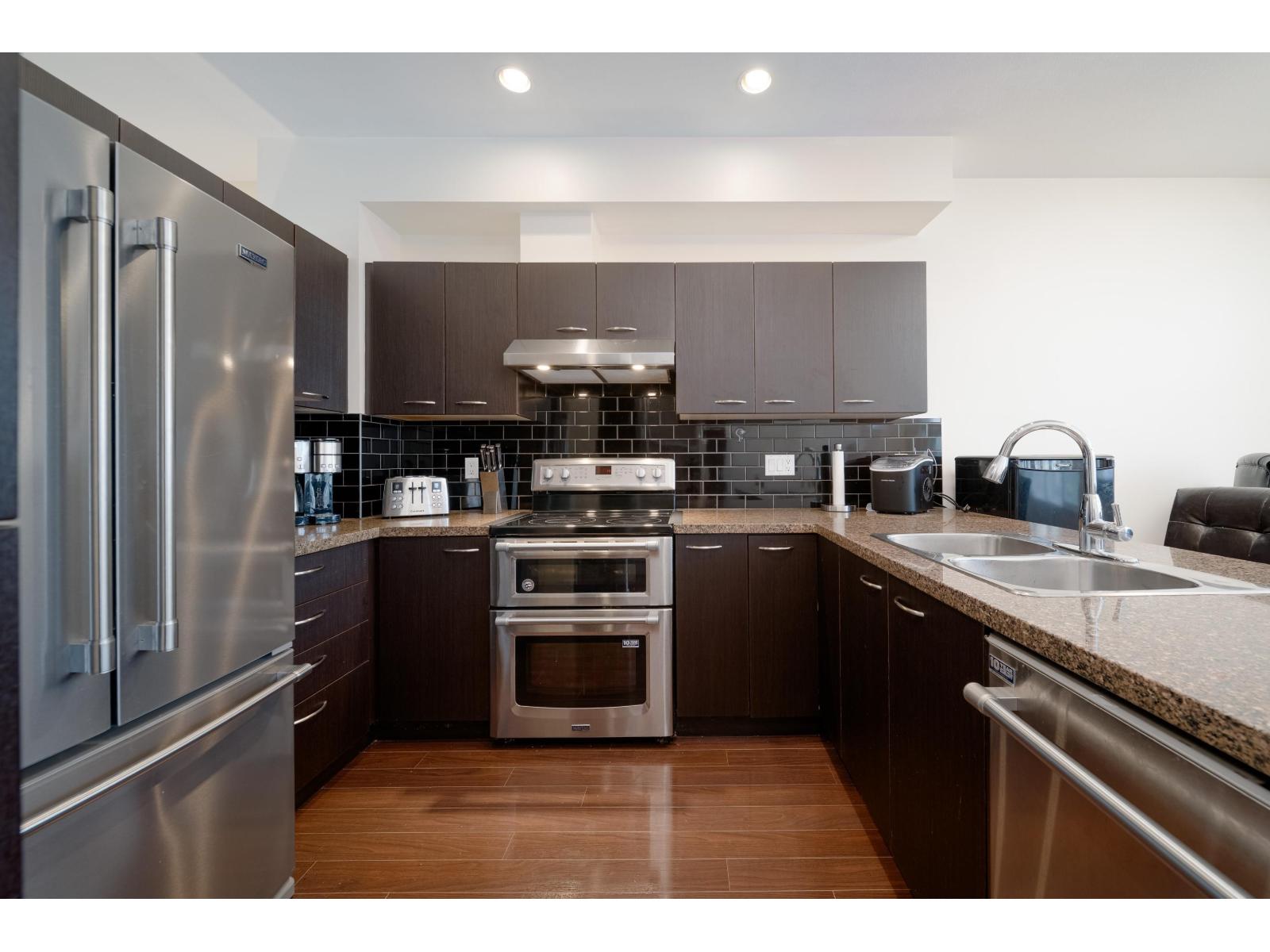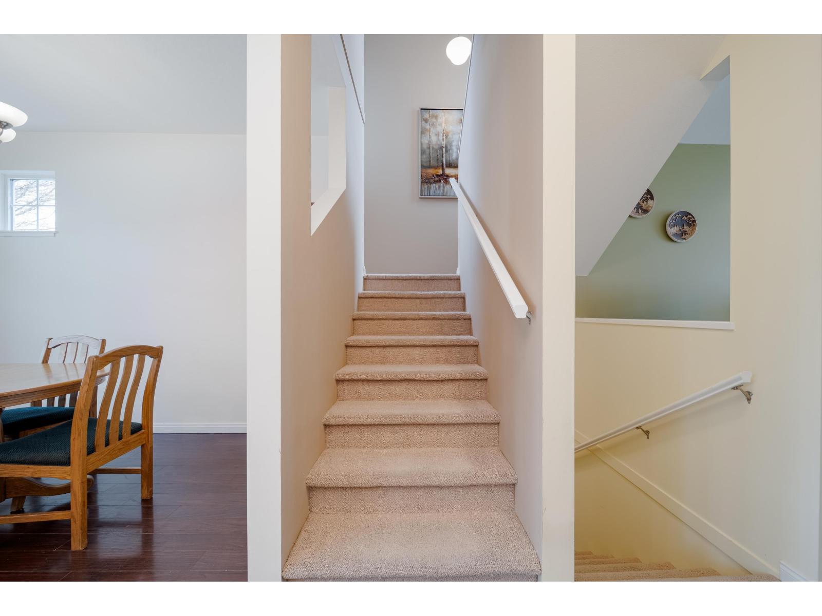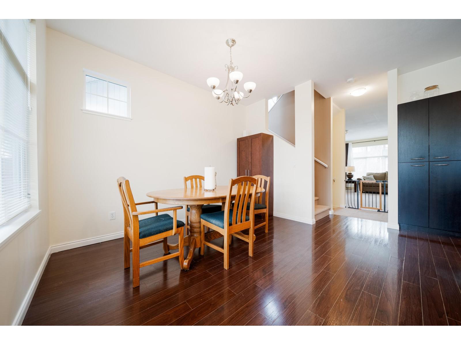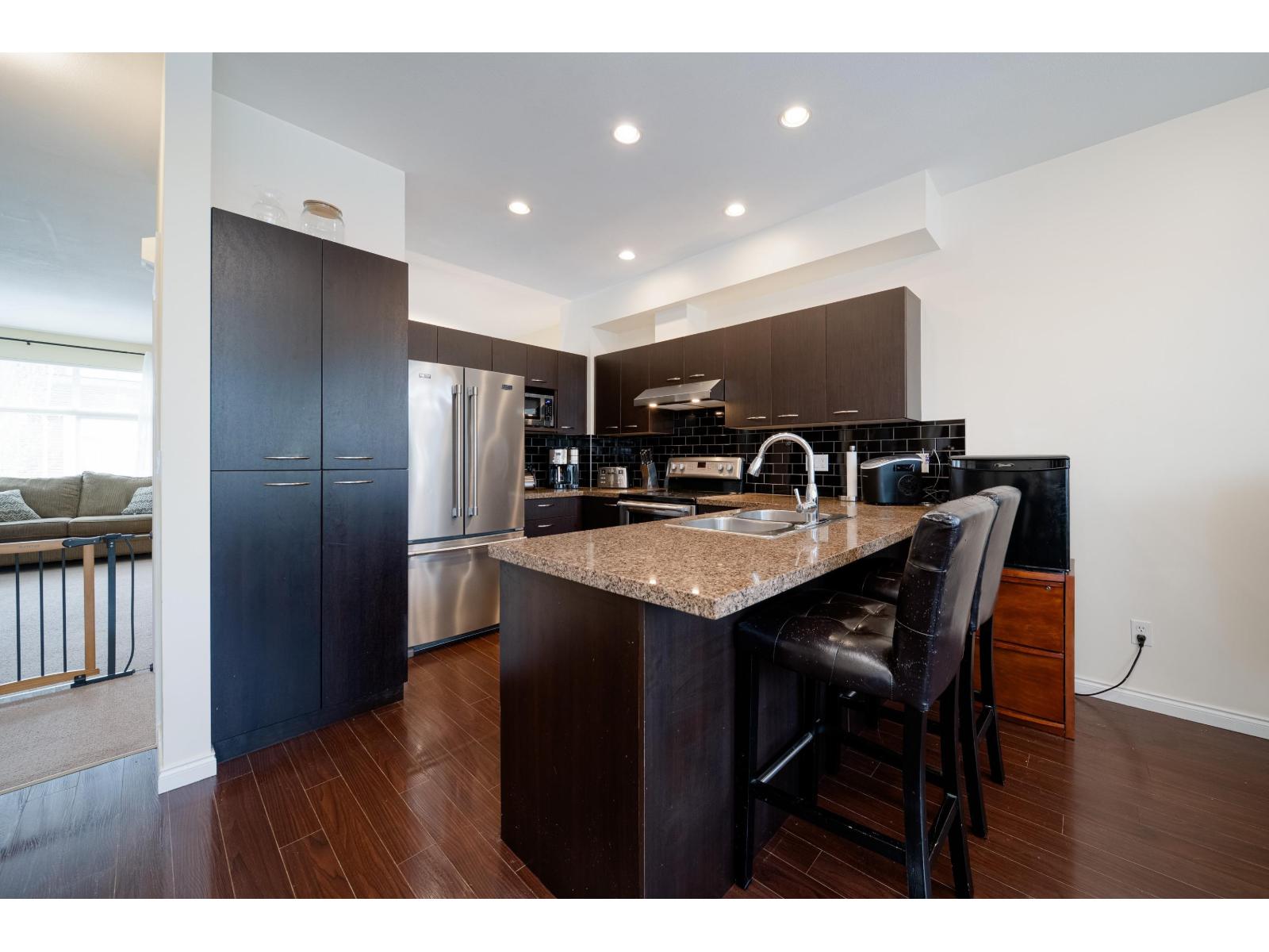 $481.56 MonthlyStunning 3 bedroom unit in the heart of Cloverdale in the "Madrona" complex. Designed with both style and functionality in mind, it features a gourmet kitchen adorned with rich dark millwork cabinetry, sleek granite countertops, a tasteful tiled backsplash, and newer stainless steel appliances. The layout seamlessly connects the kitchen to the inviting living and dining areas, all enhanced by elegant laminate flooring. This gorgeous townhome also features a rare powder room on the main floor. The lower level boasts a spacious rec room, offering versatility as a fourth bedroom, home office, or entertainment area. Newer furnace and Washer/Dryer. Double SIDE by SIDE car garage has ample storage space & extra parking on pad. Located steps to Katzie elementary school, shopping, and restaurants. (id:52823)