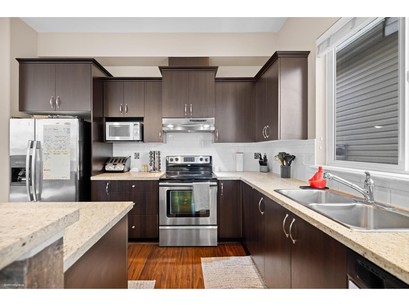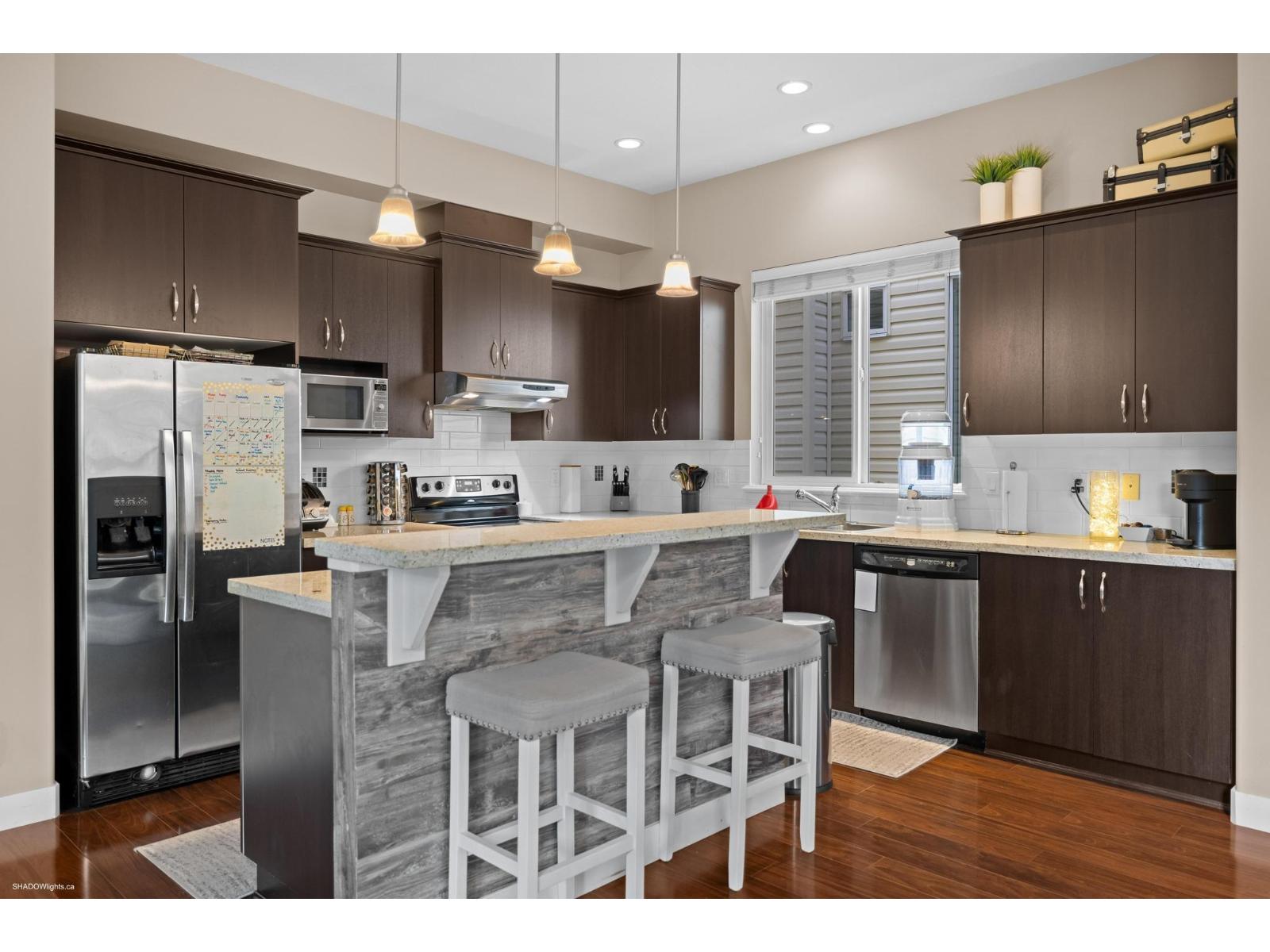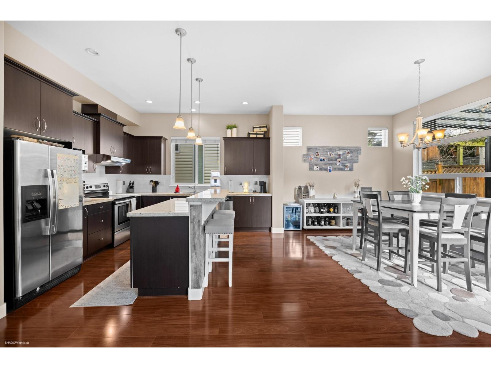 Welcome to Provinceton, one of Cloverdale's most sought-after communities. Built by Morningstar in 2009, this 3-level home offers over 3,000 sq.ft. of living space on a 3,676 sq.ft. lot. The upper floor features 3 bedrooms, including a vaulted-ceiling primary with walk-in closet and spa-inspired ensuite, plus a convenient laundry room. The main level boasts an open-concept design with a bright living room, gourmet kitchen, spacious dining area, and den ideal for a home office. The basement includes a 1-bedroom suite for mortgage help. Enjoy a low-maintenance backyard with covered patio. Close to schools, parks, and shopping.Call now for your own personal tour of this amazing gem. (id:52823)