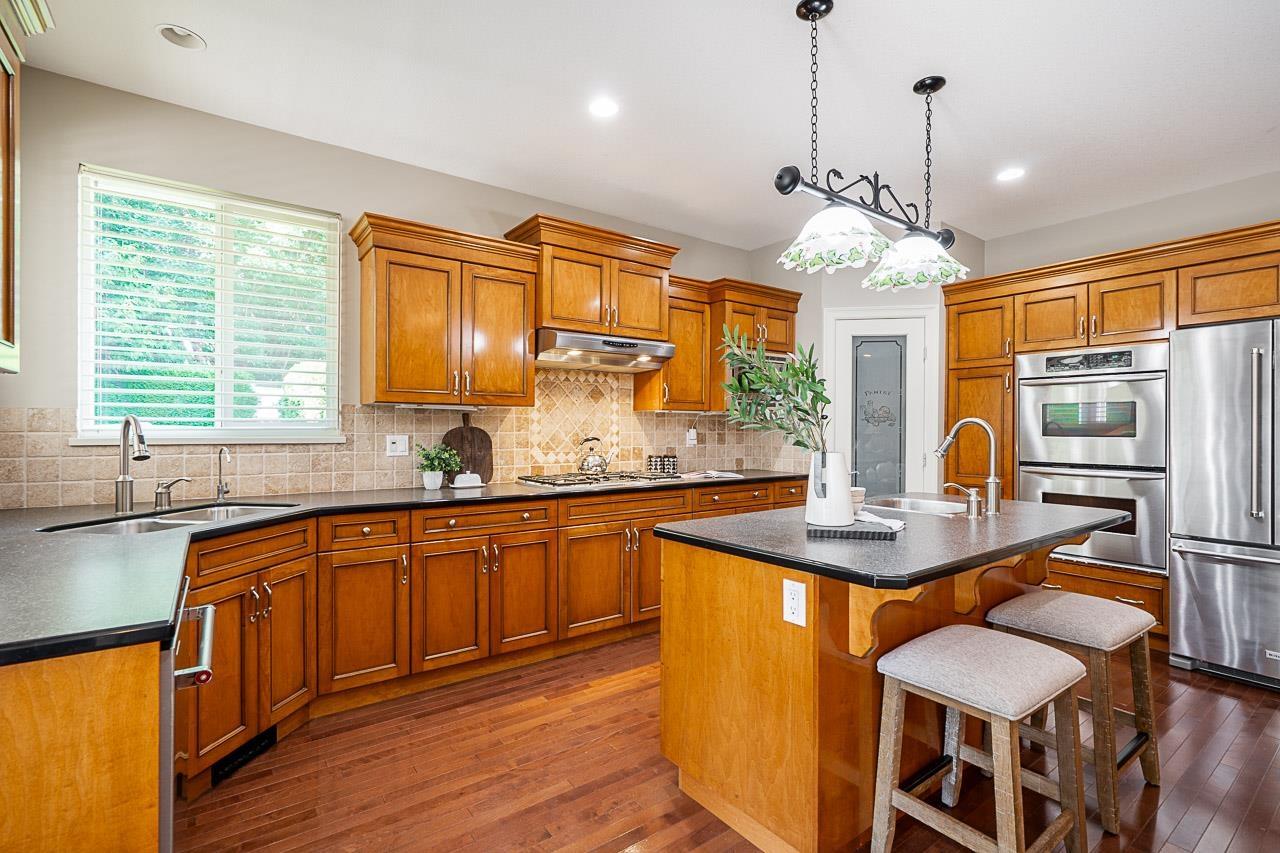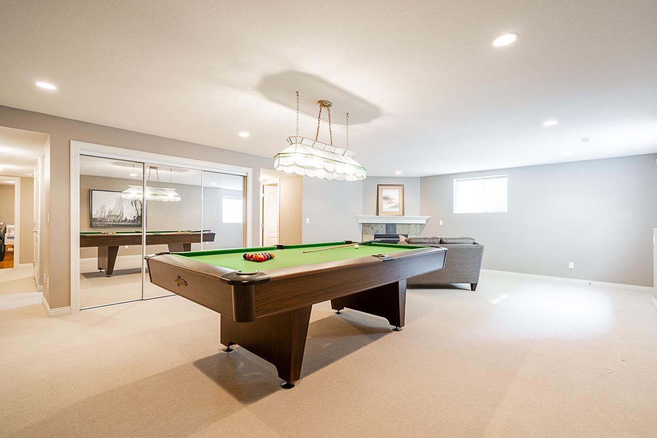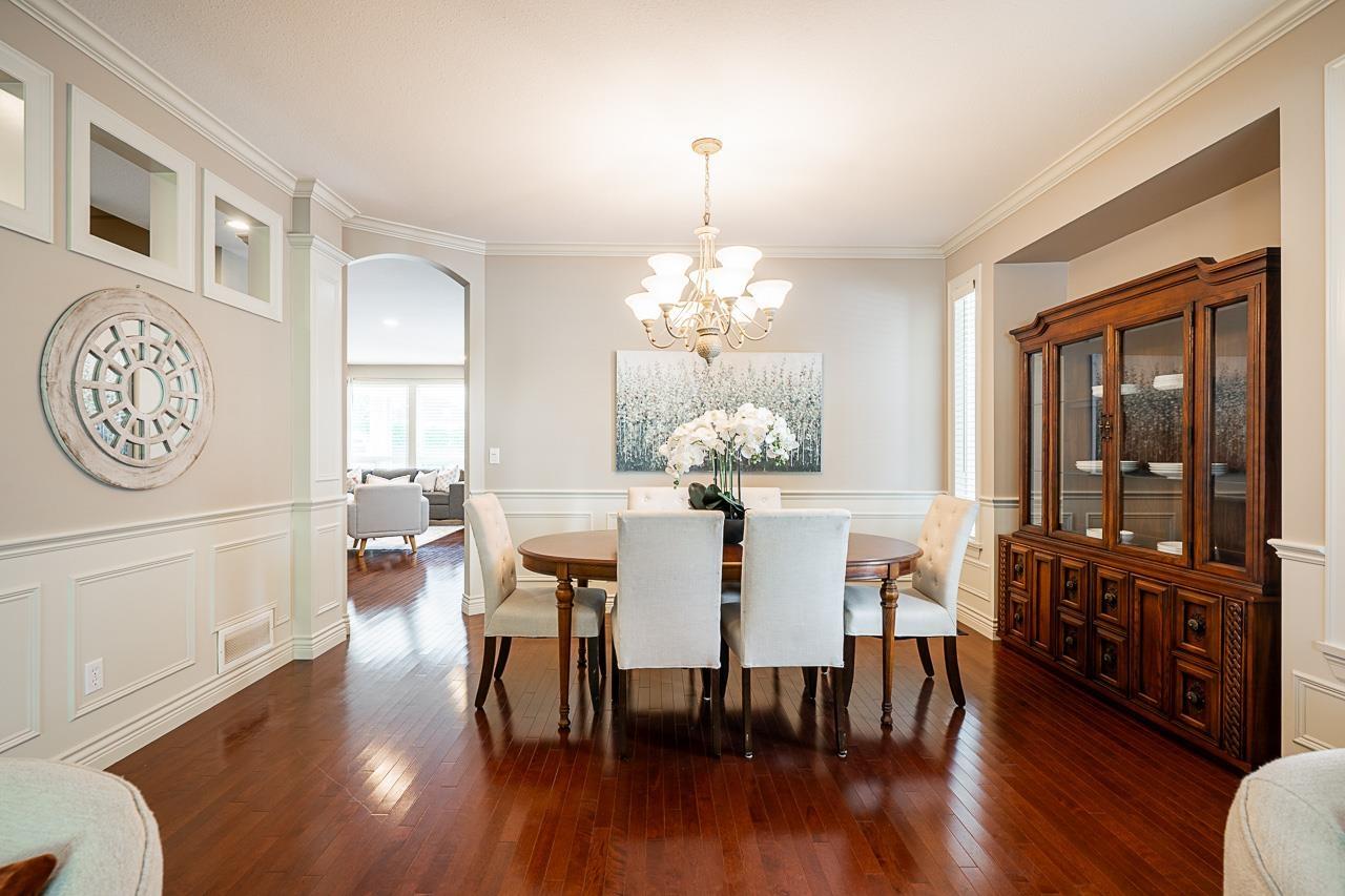 Craftsman architecture meets modern family living in this 4341 sqft Park Ridge Homes residence on a ~6900 sqft lot in Willoughby Heights. Nestled in a quiet cul-de-sac, the home showcases elegant wainscoting, solid hardwood floors, a primary suite on the main level plus a second primary upstairs, A/C, & bright open living spaces designed for comfort & style. With 6 bdrms and 4 baths, all generously sized, there's space for every stage of family life. A home theatre is ready for movie nights, while the basement offers flexibility with 2-3 bdrm suite potential plus rec room for upstairs use. The SW-facing backyard is beautifully landscaped for gardening, play, & entertaining. With parking for 6 & mins. to Costco, Home Depot, Save-On, restaurants, & parks, this is the complete family package. (id:52823)
