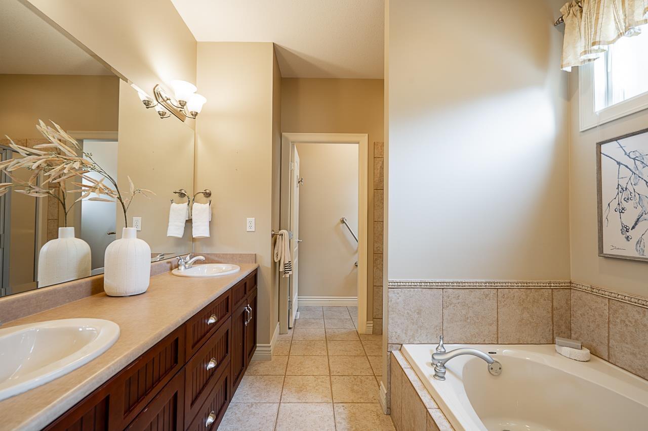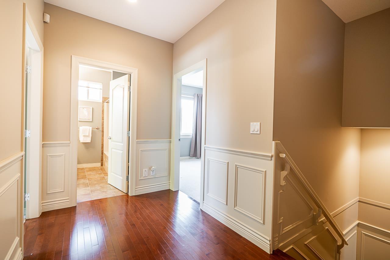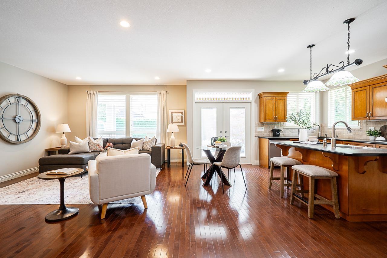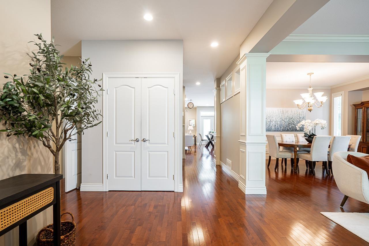 Craftsman architecture meets modern family living in this 4341 sqft Park Ridge Homes residence on a ~6900 sqft lot in Willoughby Heights. Nestled in a quiet cul-de-sac, the home showcases elegant wainscoting, solid hardwood floors, a primary suite on the main level plus a second primary upstairs, A/C, & bright open living spaces designed for comfort & style. With 6 bdrms and 4 baths, all generously sized, there's space for every stage of family life. A home theatre is ready for movie nights, while the basement offers flexibility with 2-3 bdrm suite potential plus rec room for upstairs use. The SW-facing backyard is beautifully landscaped for gardening, play, & entertaining. With parking for 6 & mins. to Costco, Home Depot, Save-On, restaurants, & parks, this is the complete family package. (id:52823)