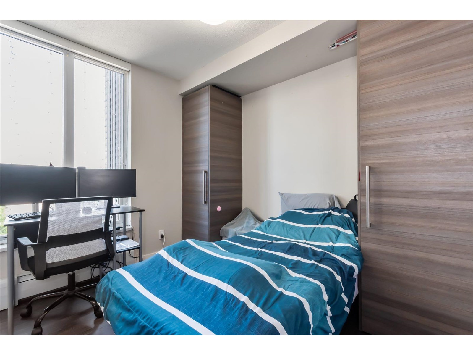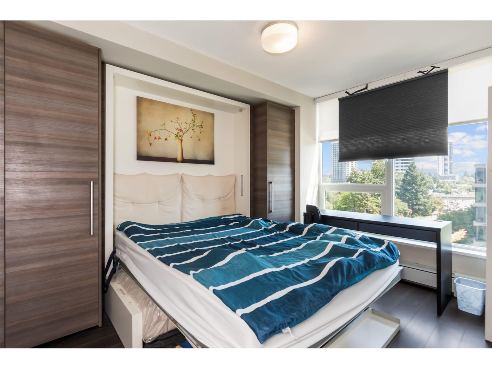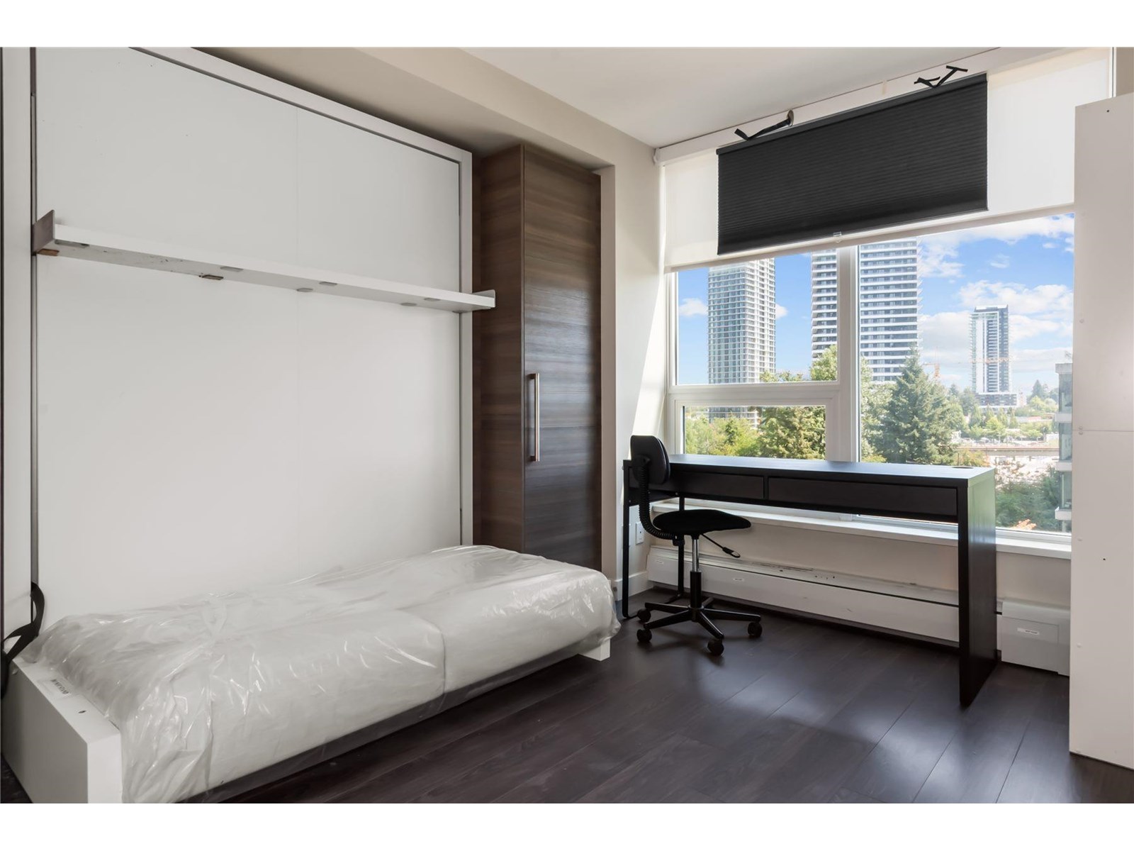 $483 MonthlyModern 2 -bedroom, 1 1/2 bath corner unit in the sought -after Alumni building by BOSA located in the Surrey's vibrant University District. This smart designed home features a MURPHY BED, guest bed, and a versatile kitchen island that extends into an 8 person dining table. Enjoy open views from the Northeast corner and take advantage of top-tier amenities including a gym, lounge room and rooftop garden. Just steps to Skytrain, SFU, shopping and dining. This unit offers convenience and quality in a fast-growing area- perfect for students, professionals or investors. A great opportunity you don't want to miss. Great Value at this price. (id:52823)
