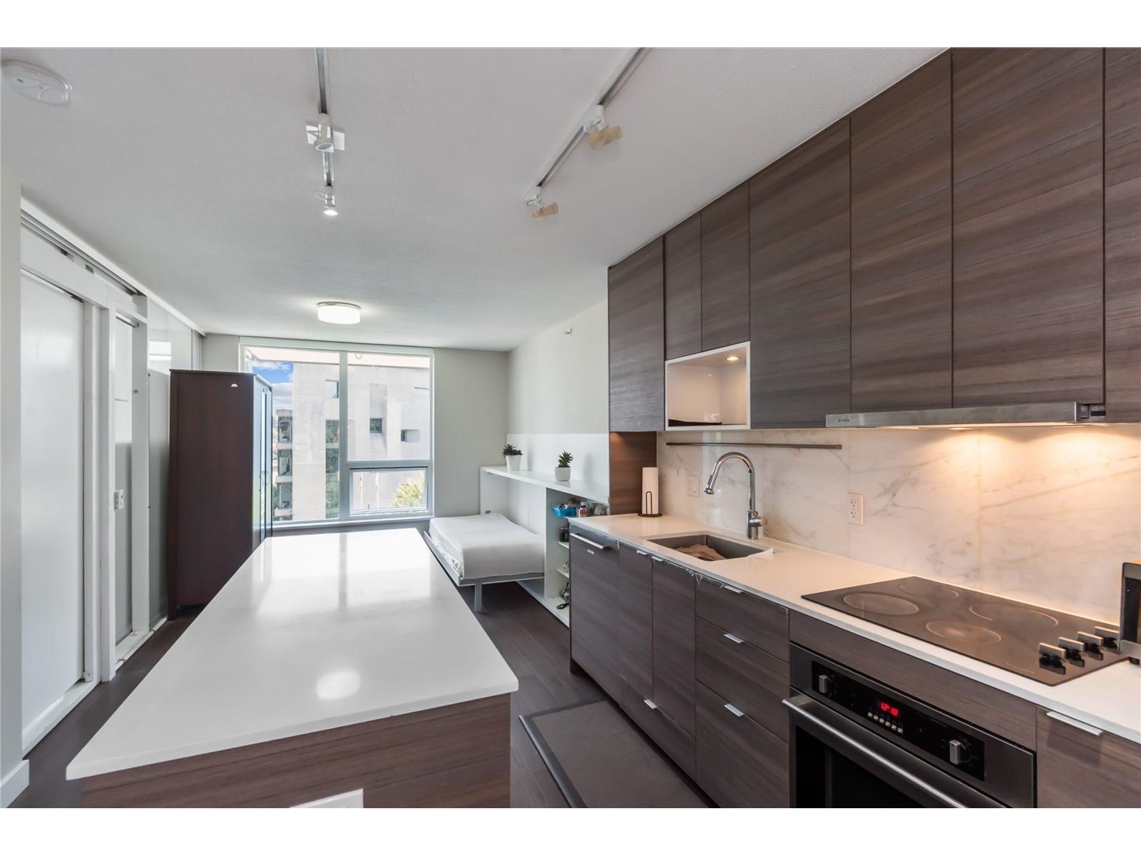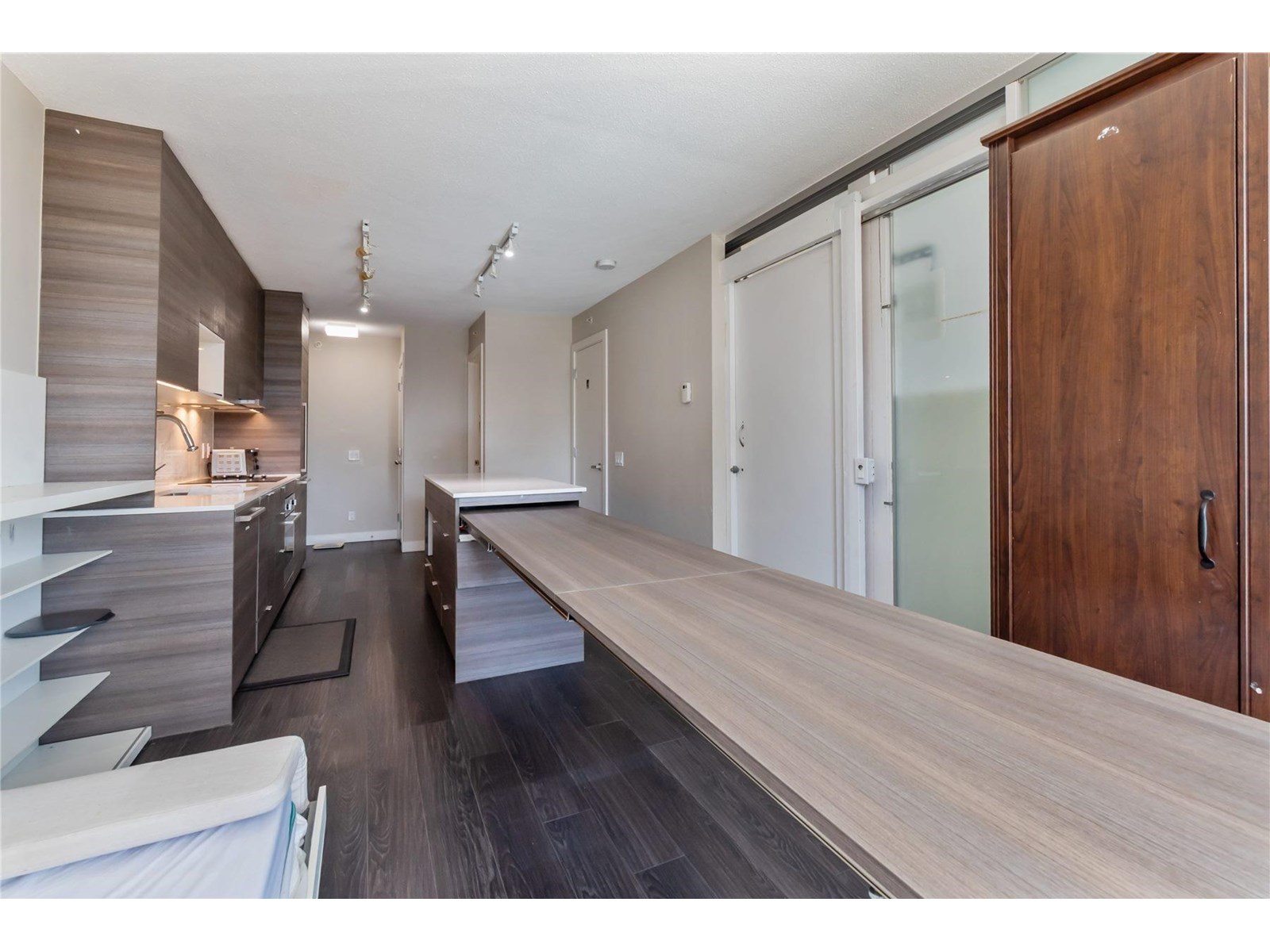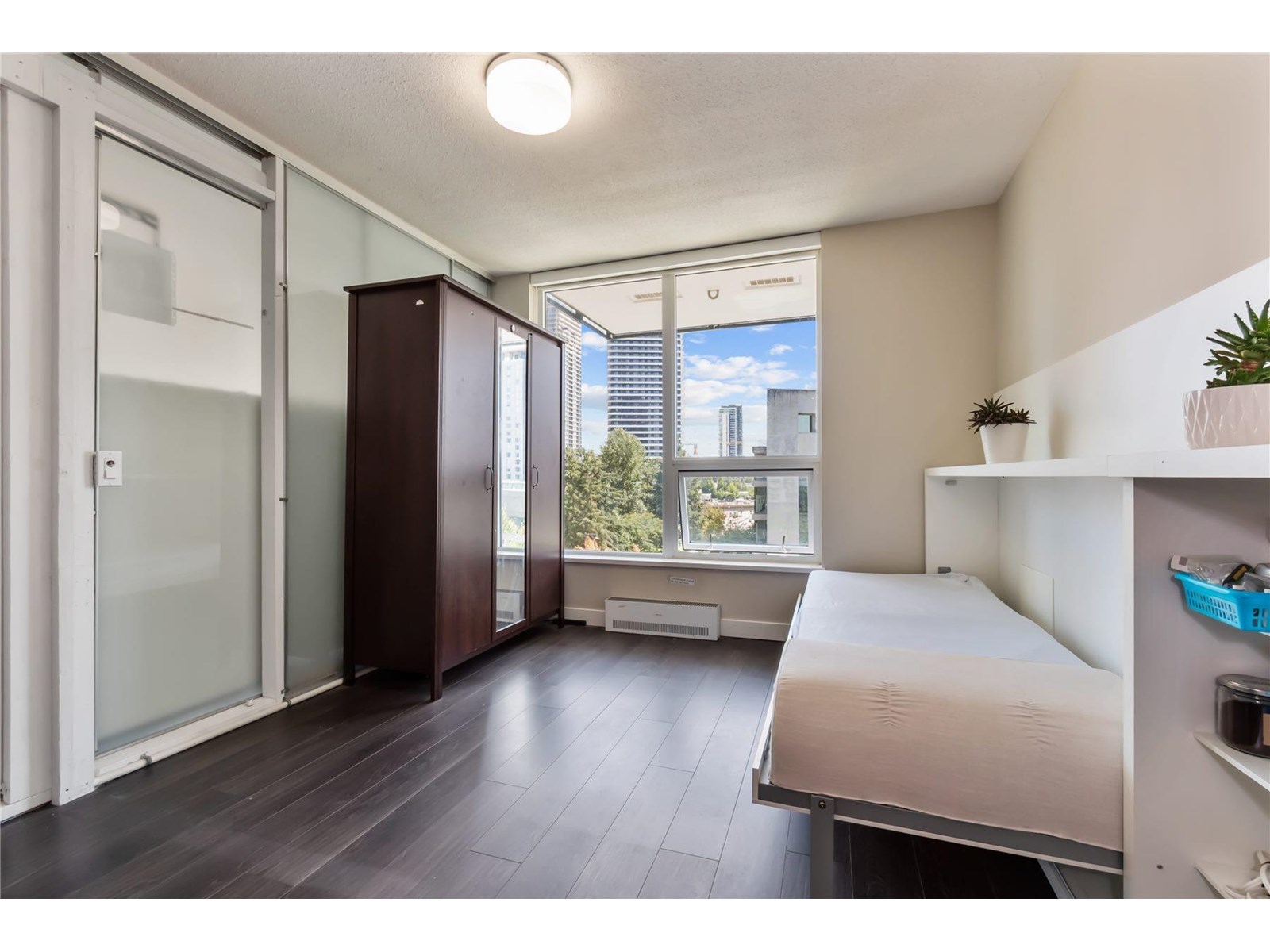 $483 MonthlyModern 2 -bedroom, 1 1/2 bath corner unit in the sought -after Alumni building by BOSA located in the Surrey's vibrant University District. This smart designed home features a MURPHY BED, guest bed, and a versatile kitchen island that extends into an 8 person dining table. Enjoy open views from the Northeast corner and take advantage of top-tier amenities including a gym, lounge room and rooftop garden. Just steps to Skytrain, SFU, shopping and dining. This unit offers convenience and quality in a fast-growing area- perfect for students, professionals or investors. A great opportunity you don't want to miss. Great Value at this price. (id:52823)
