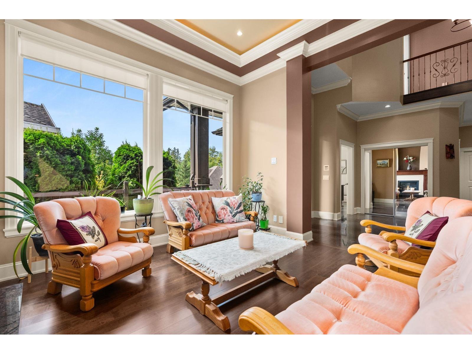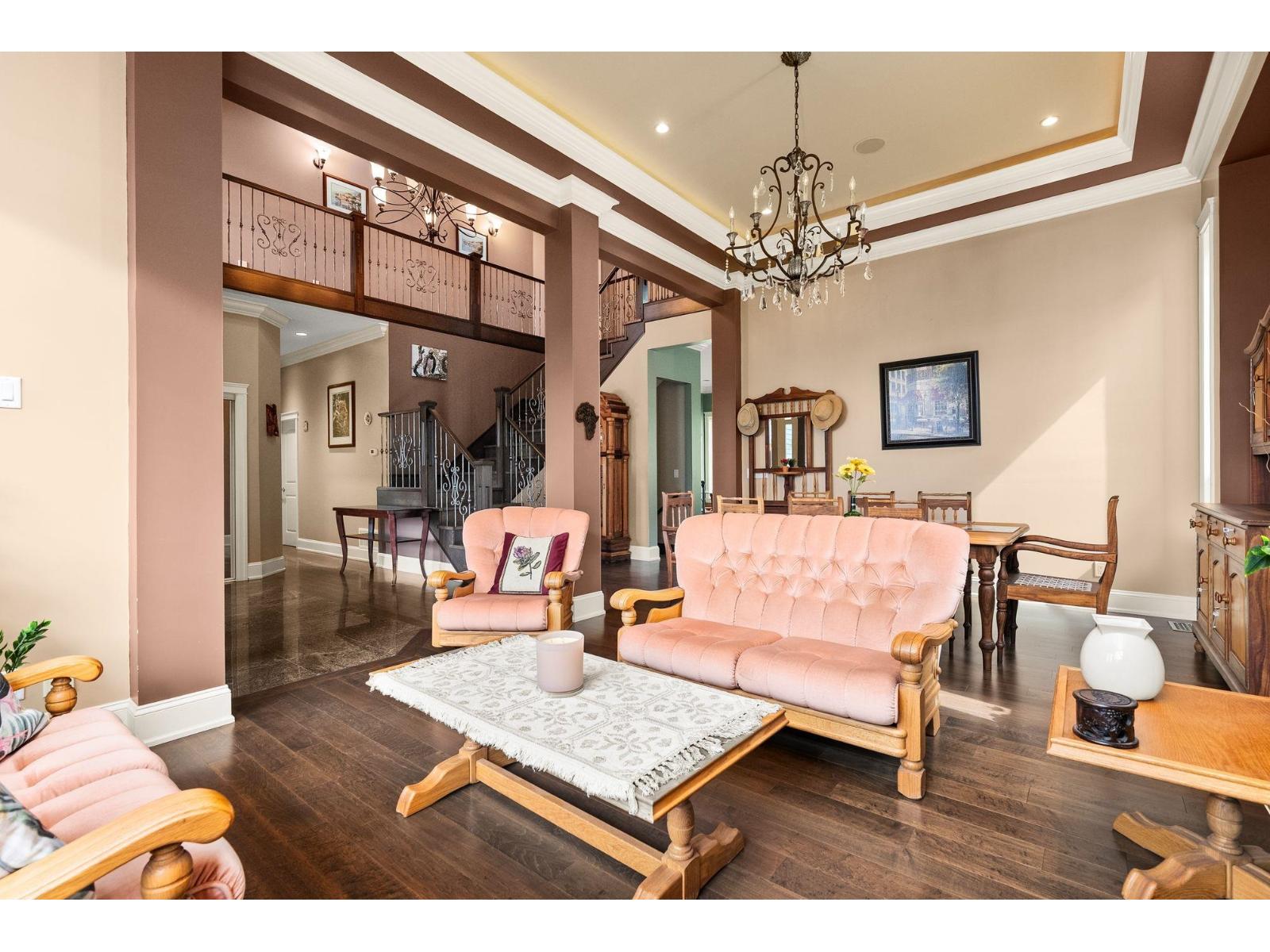 Welcome to your dream home in a cul-de-sac, blending elegance & comfort. This 4,320 sqft residence opens out into a 11,948 sqft sloping south-facing backyard with mature trees & flowers. Inside, enjoy soaring 11 ft ceilings with exquisite lighting & surround sound that creates an inviting atmosphere. The gourmet kitchen with heated floors with a huge walk-in pantry The main-level home office suits entrepreneurial needs. Upstairs, find 3 luxurious bedrooms, each with its own en-suite bathroom. The lower level boasts high ceilings offering 2 additional bedrooms, a entertainment room & bathroom. Located near top schools, rec center, shopping & golf courses, this home provides easy access to Hwy 15. Don't miss the chance to own this exquisite property in a highly sought-after community! (id:52823)