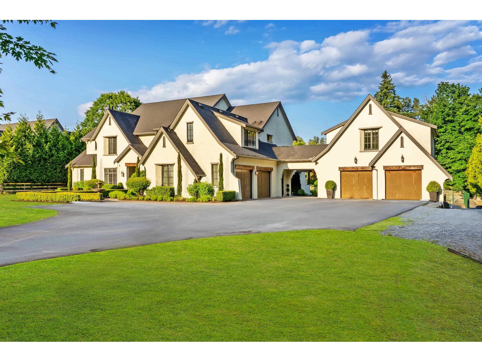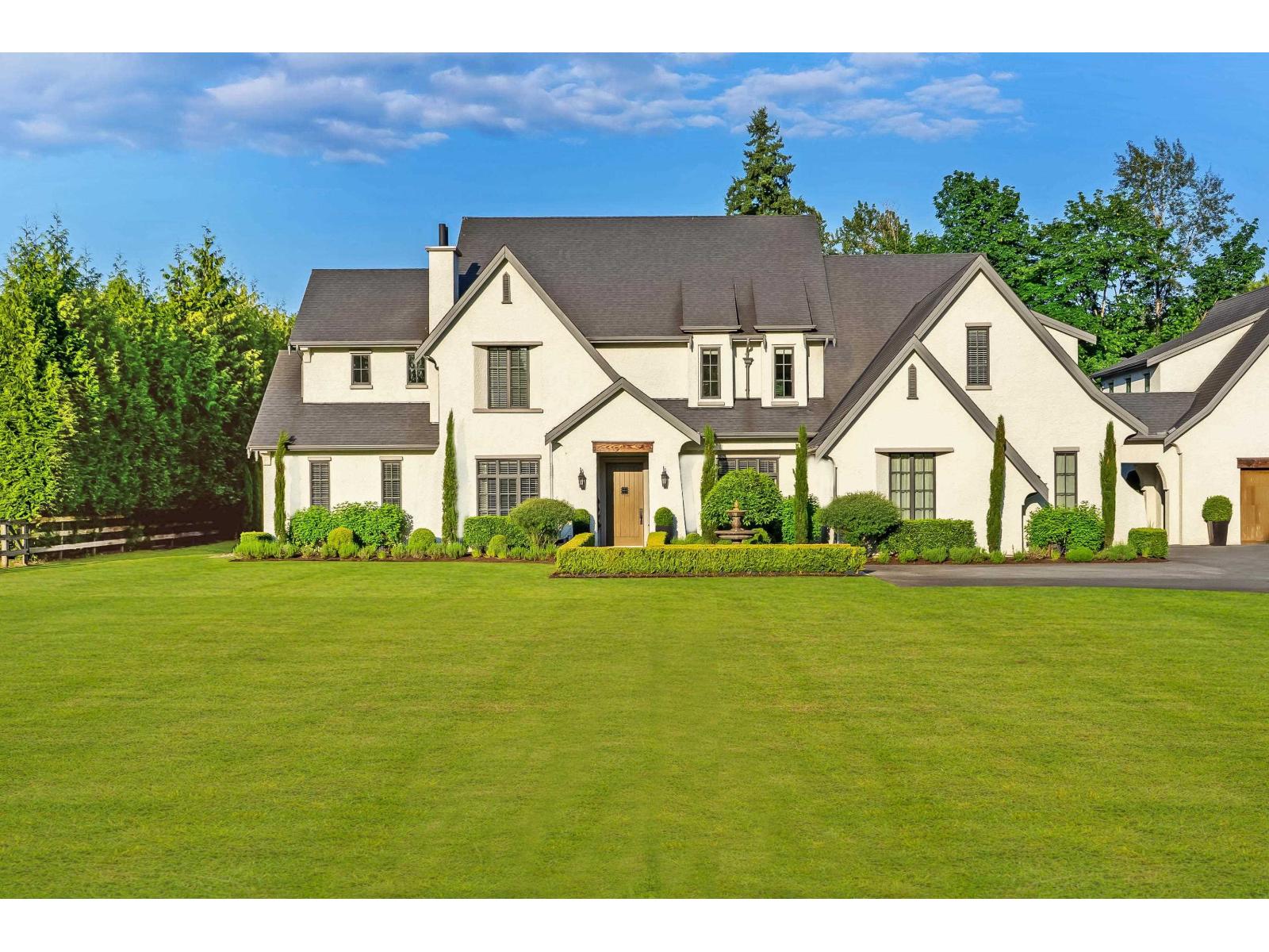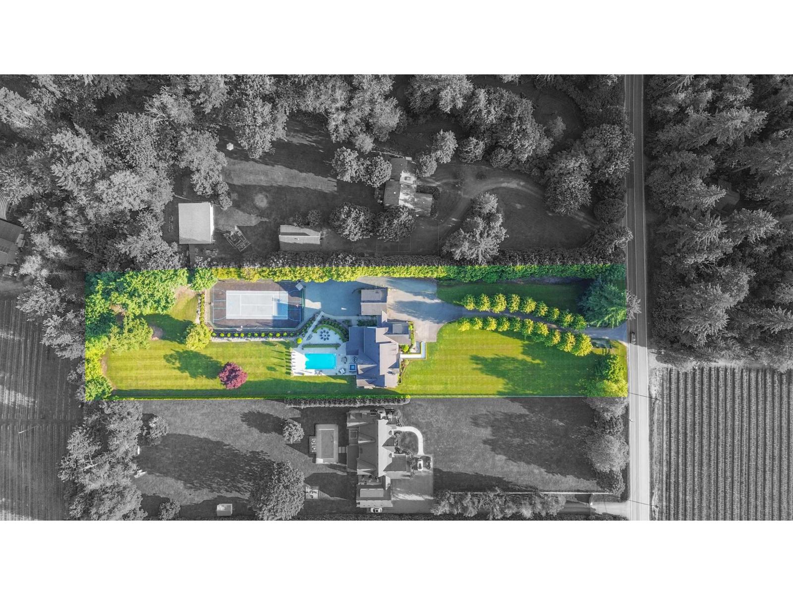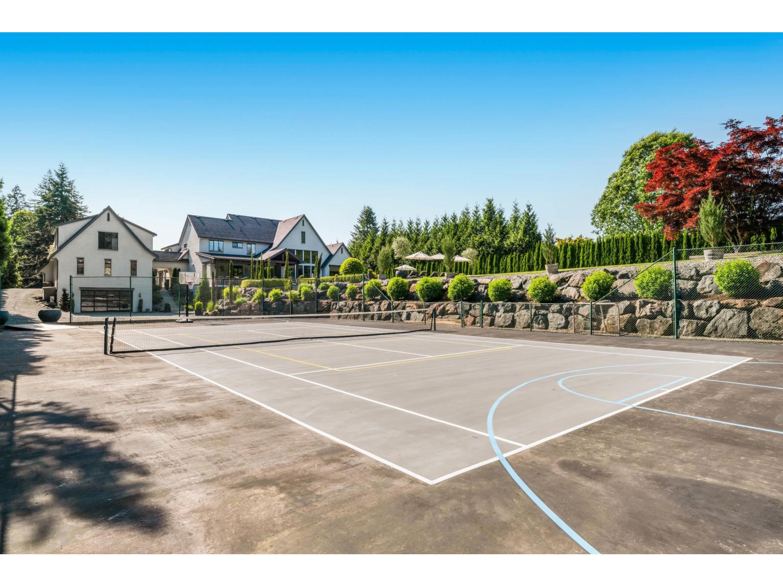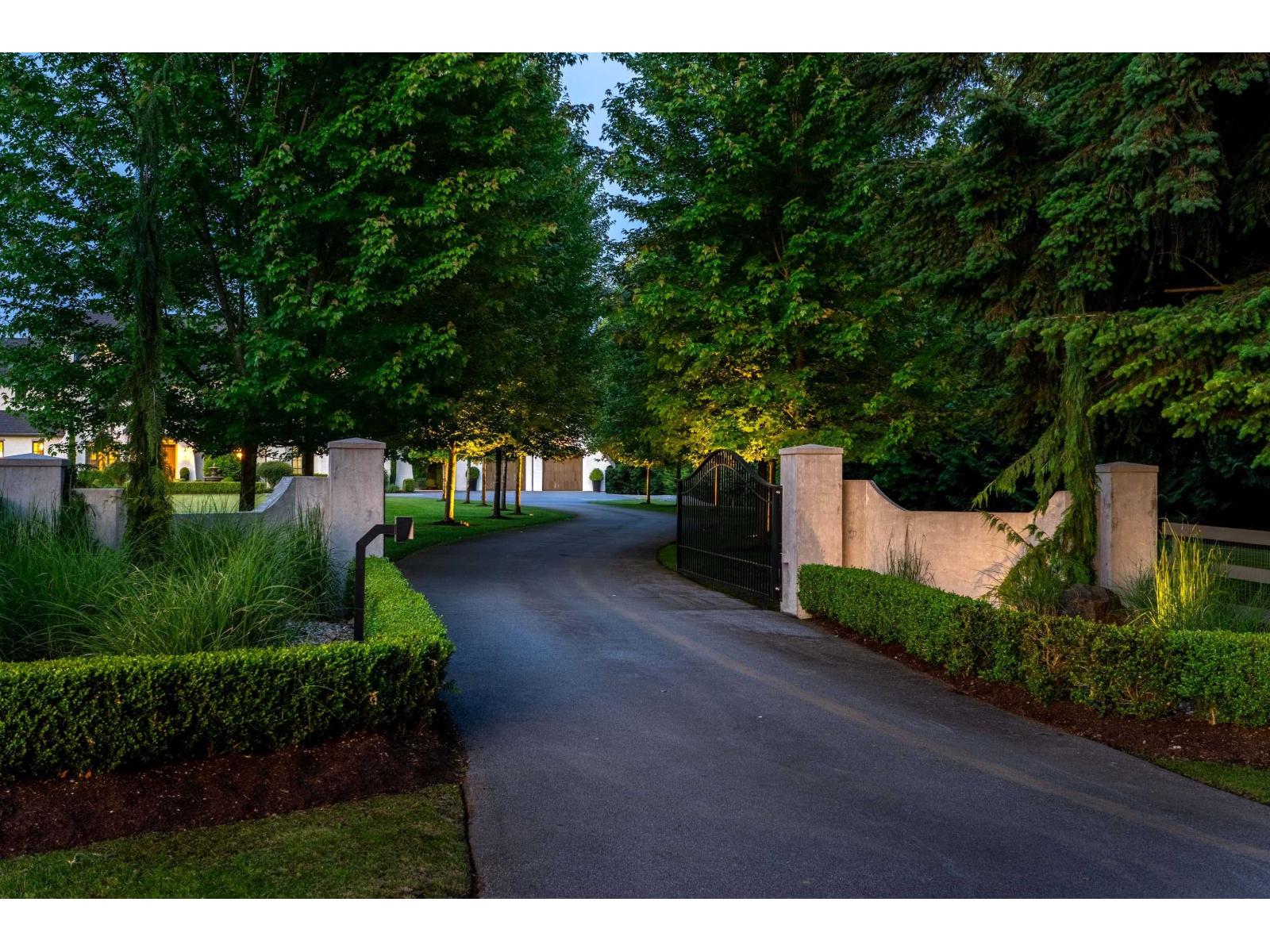 One of Langley's finest gated estates on 2.5 private, manicured acres. This immaculate custom estate is built by Ridgewest Homes, and designed by Su Casa. A perfect blend of luxury, comfort, and function, 8 beds, 7 baths, primary on the main, vaulted great room, private temp controlled wine/scotch tasting room, gym, theatre, plus a 1-bed suite. Unique underground tunnel leads to a bunker-style garage. Resort-style backyard with 20x40 concrete pool, built-in hot tub, California-style sport court, firepit, and covered patio with full outdoor kitchen and fireplace. 6 covered parking. Plans avail for accessory building, build your dream barn or shop! Minutes to Fort Langley, Thunderbird, and HWY 1. A true dream estate built for family, entertaining, and refined country living. (id:52823)